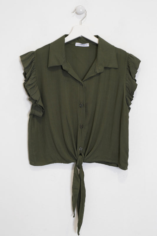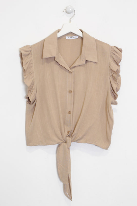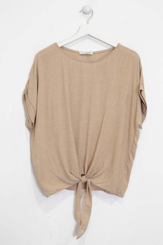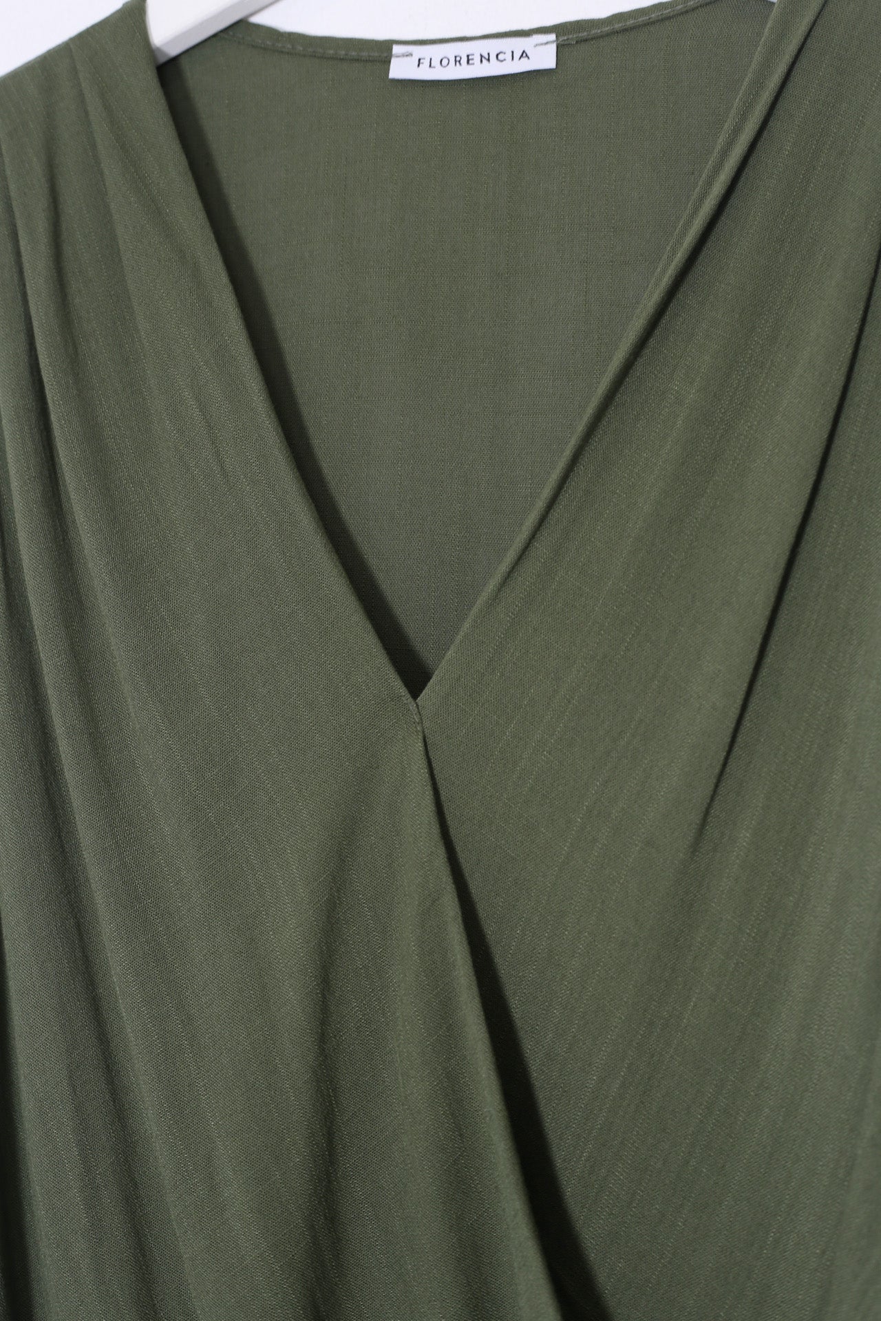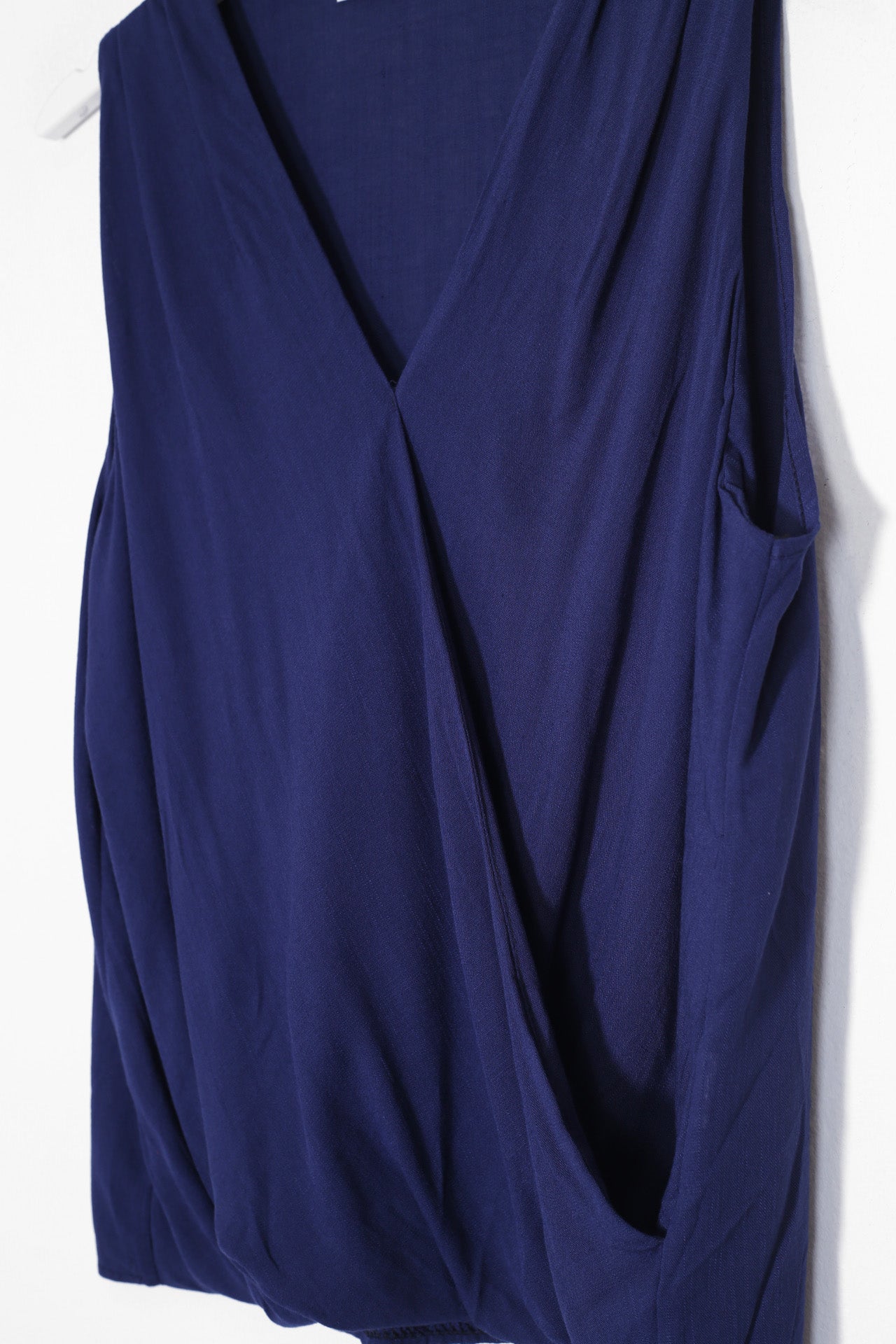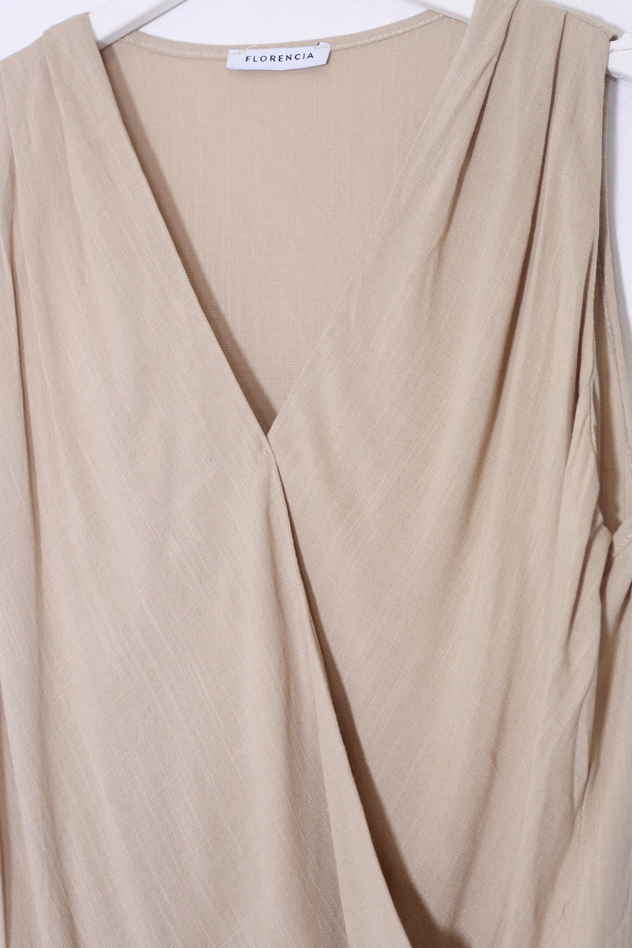Top sin mangas con escote en punta cruzado. Detalle frontal drapeado. Tejido ligeramente texturado.