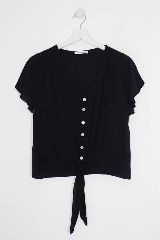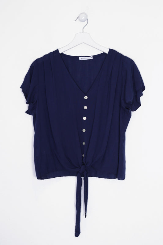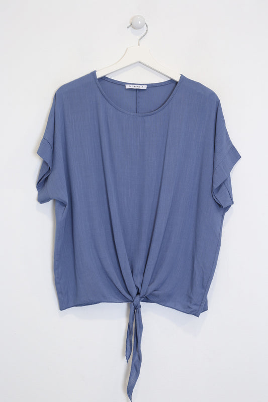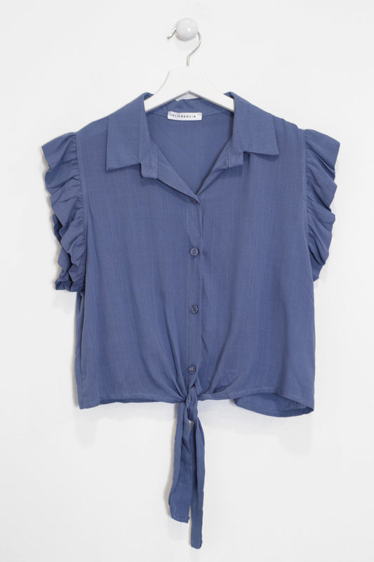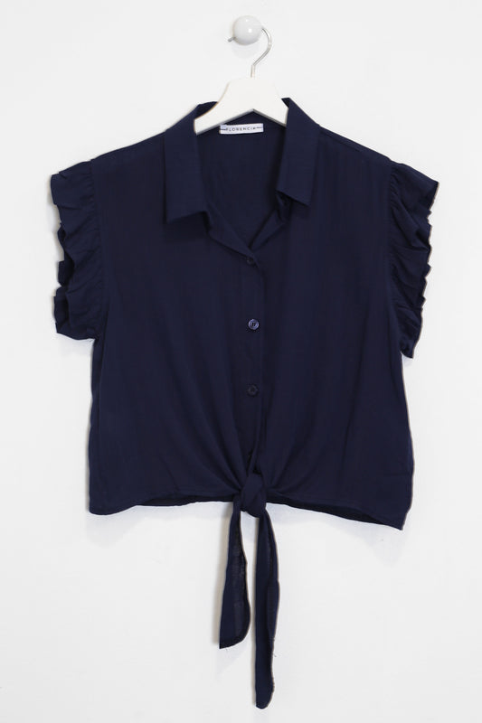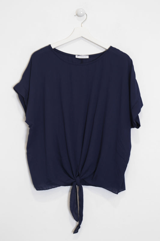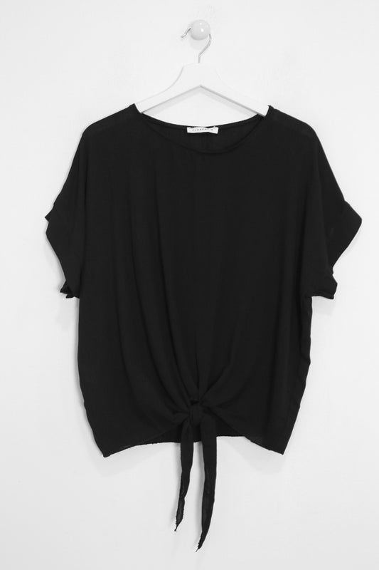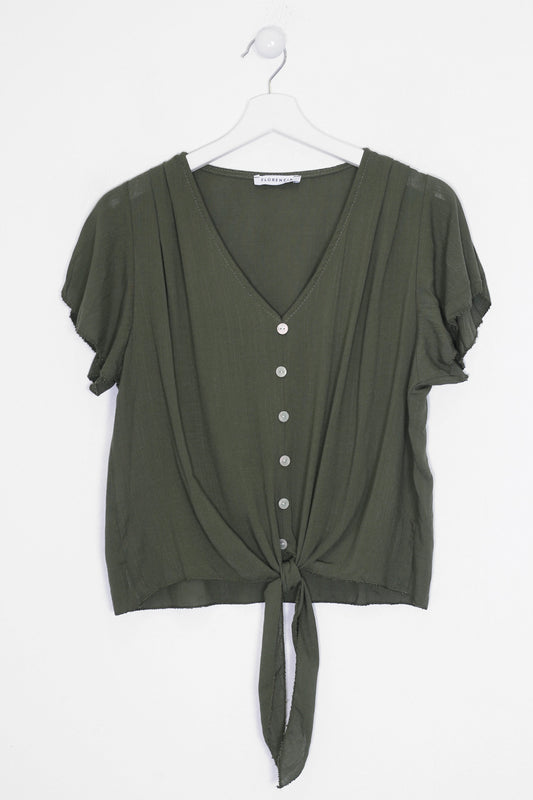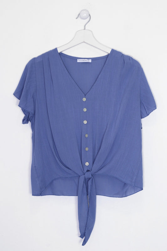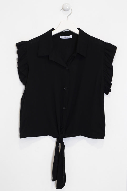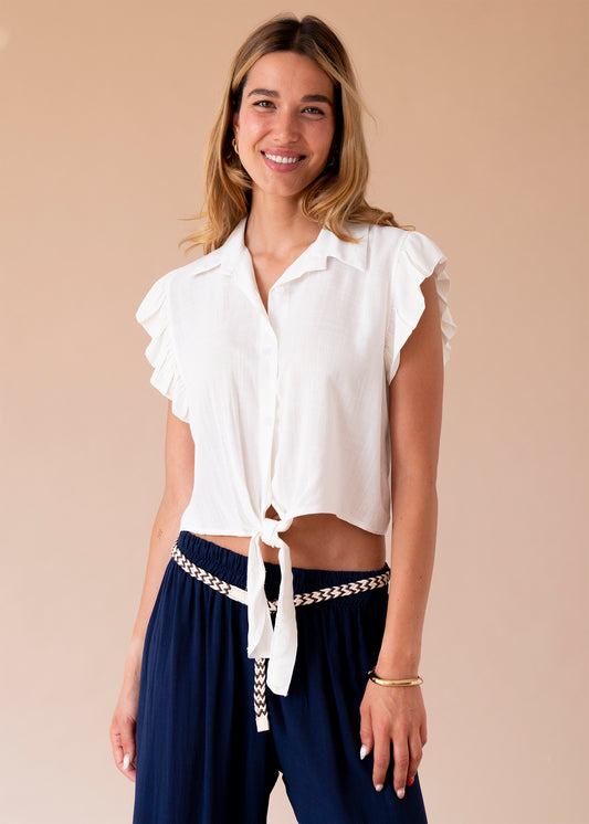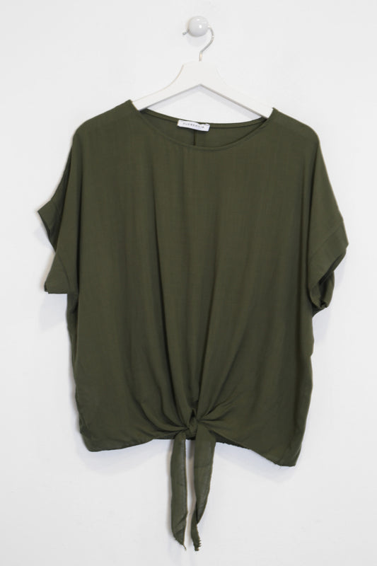 Top sin mangas con escote en punta cruzado. Detalle frontal drapeado. Tejido ligeramente texturado.