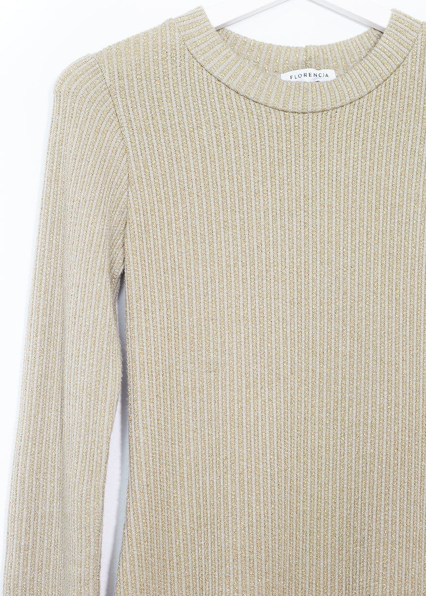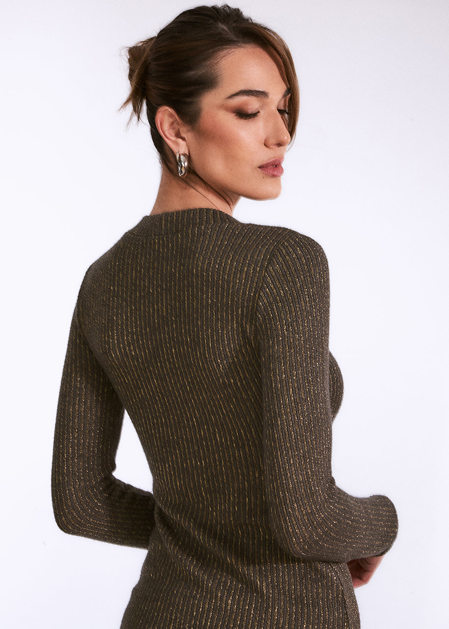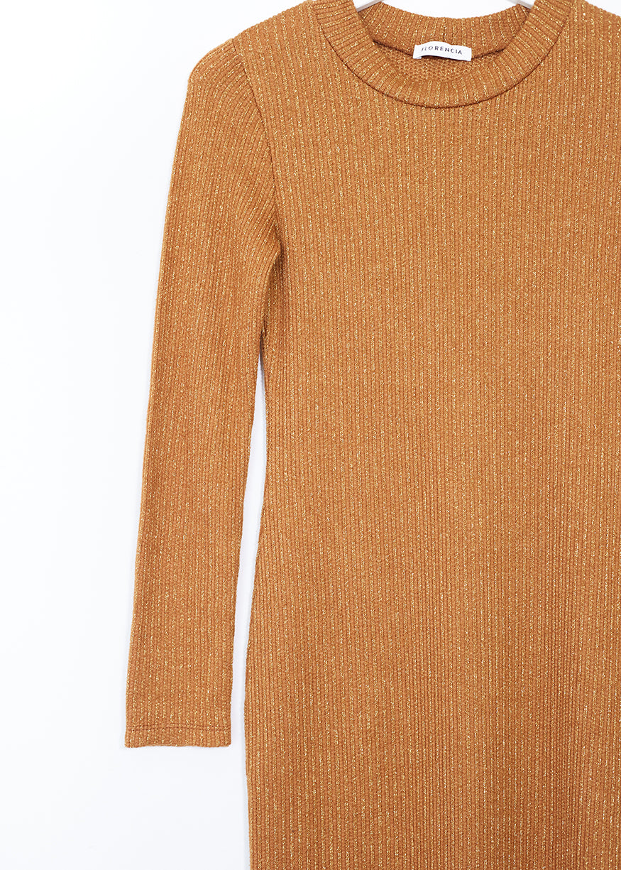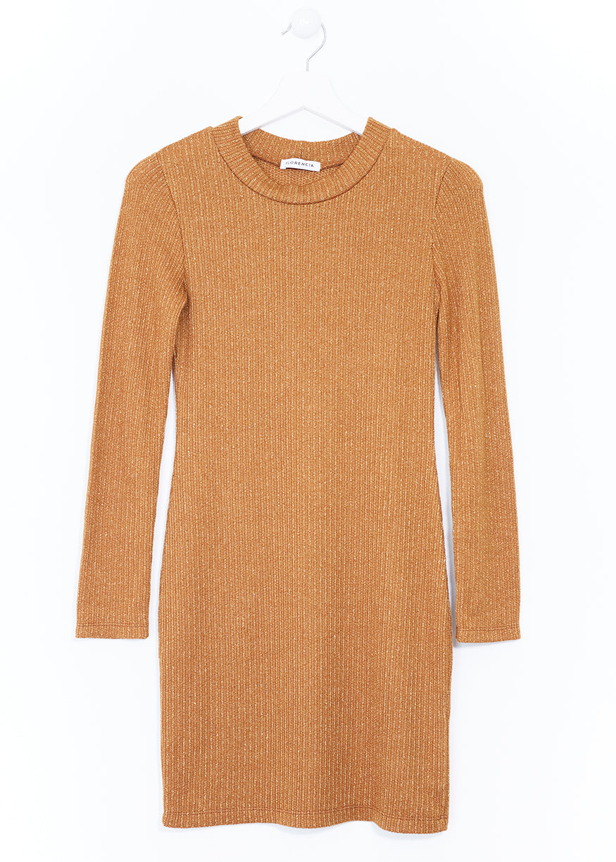 Dress with gold glitter detail. Round neck. Long sleeve. Elastic fabric. Adjustable to the body.