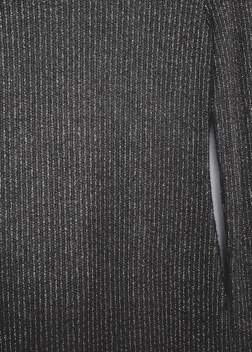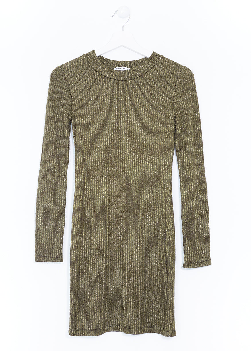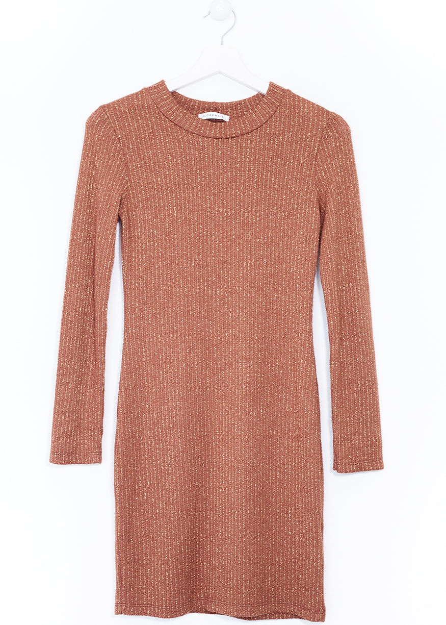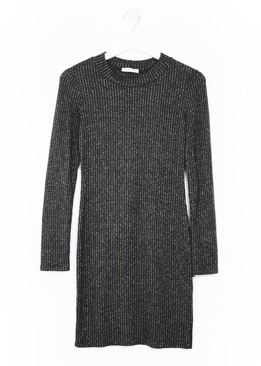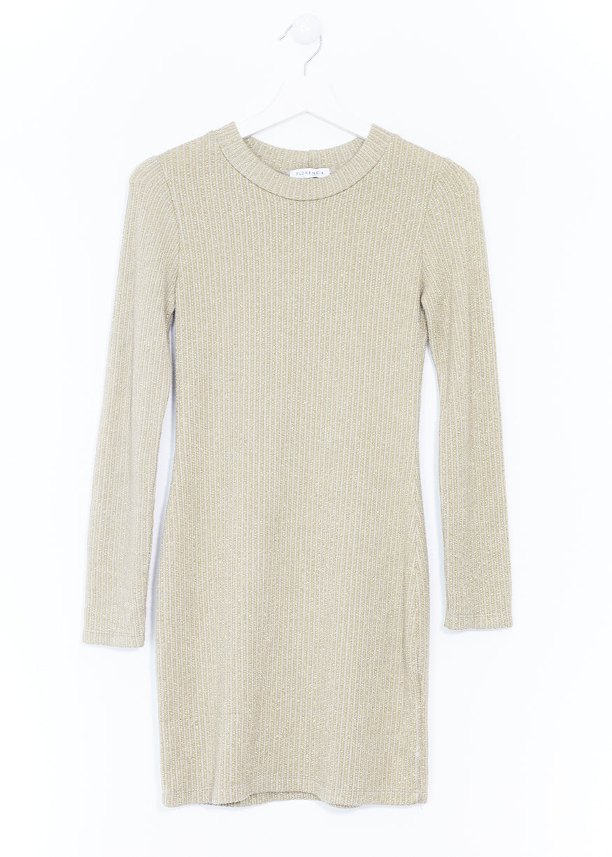 Dress with gold glitter detail. Round neck. Long sleeve. Elastic fabric. Adjustable to the body.