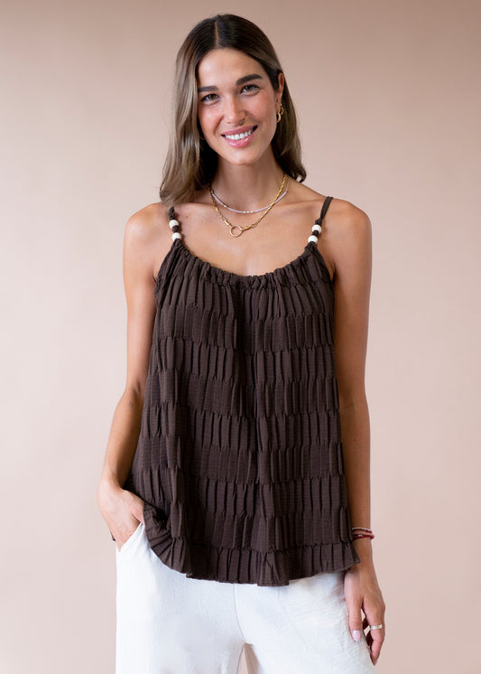 Top plisado abalorios