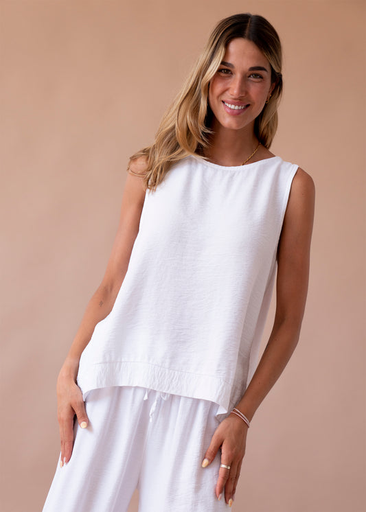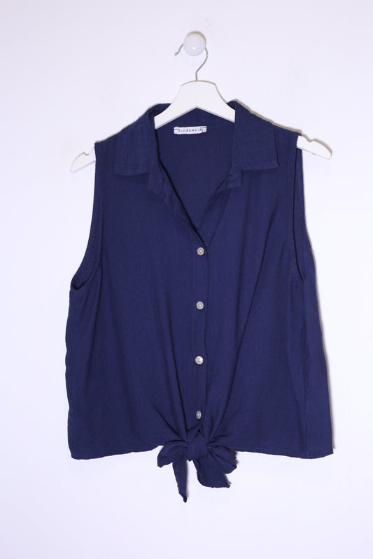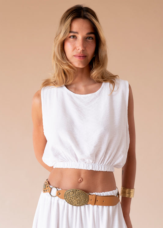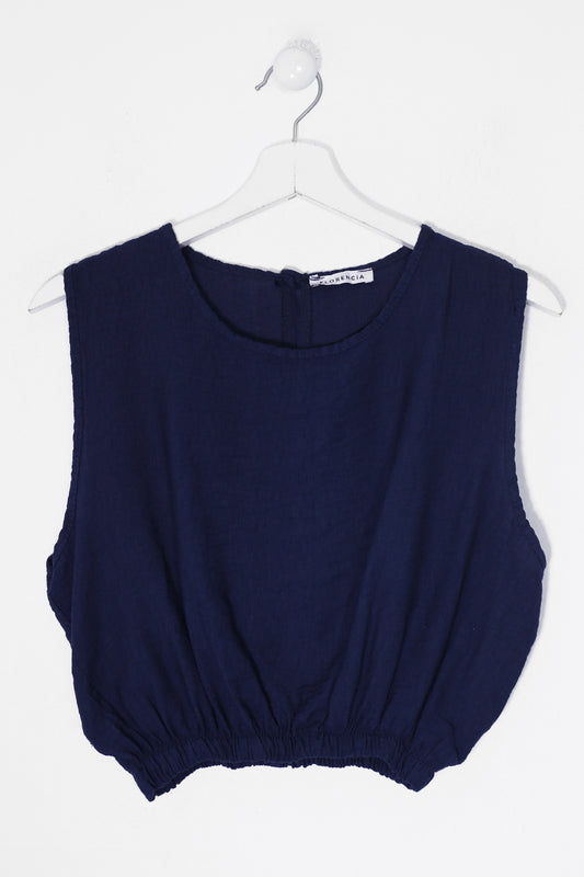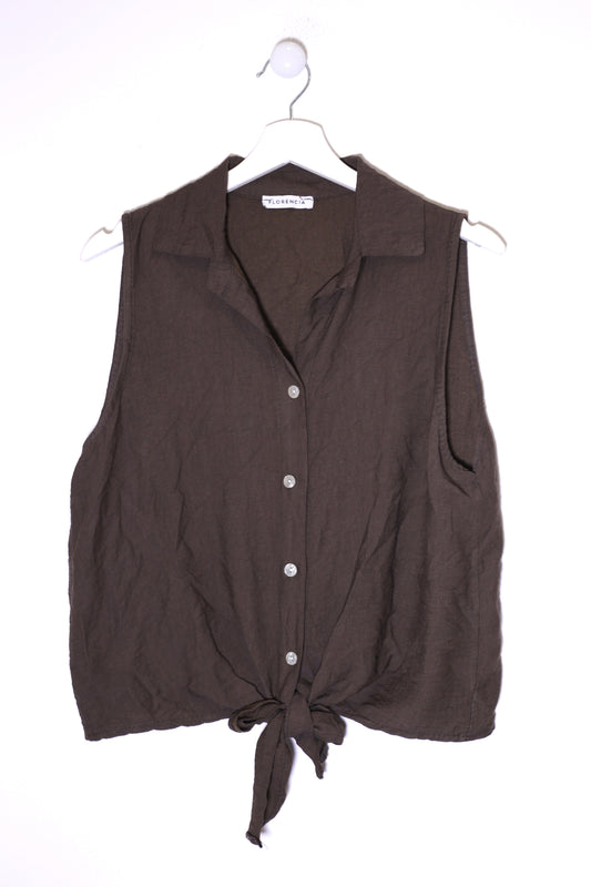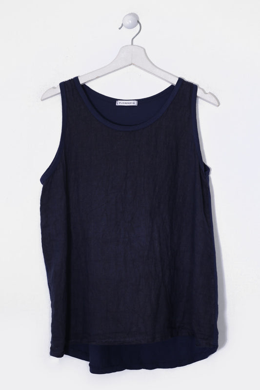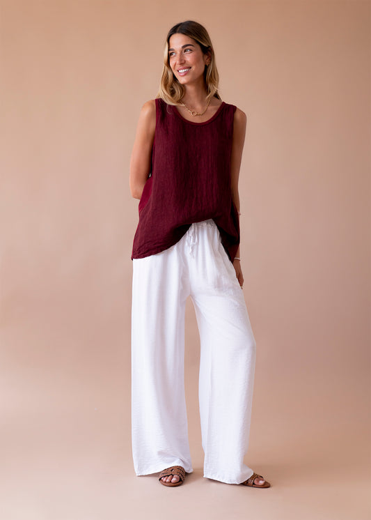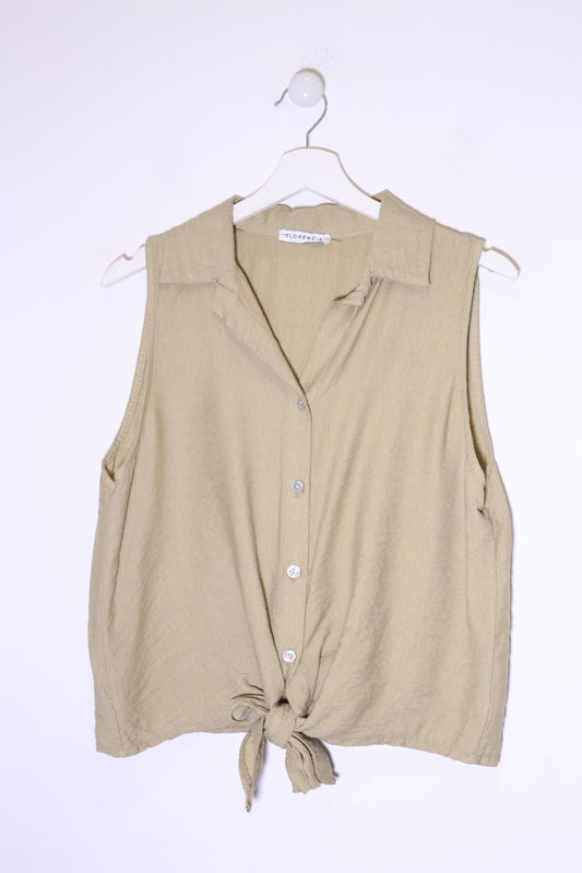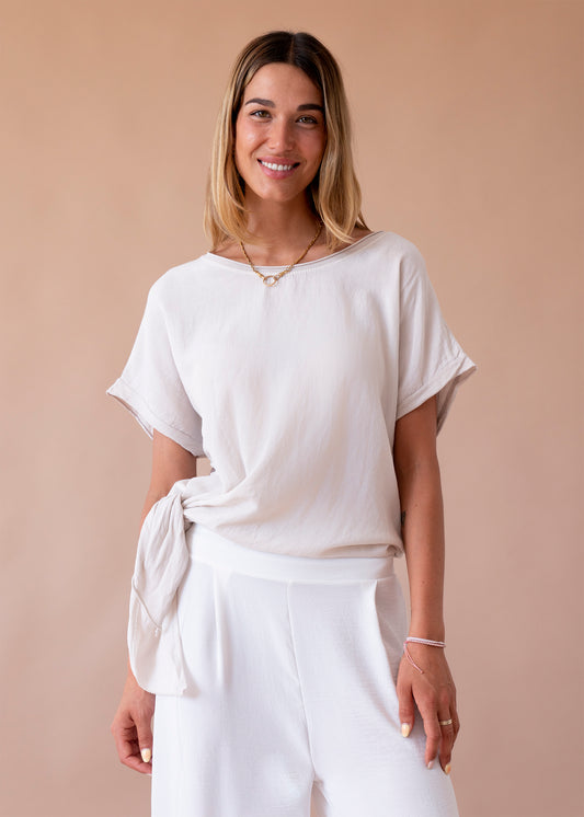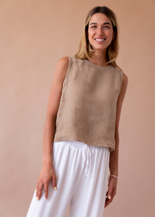 Top lino cuello redondo