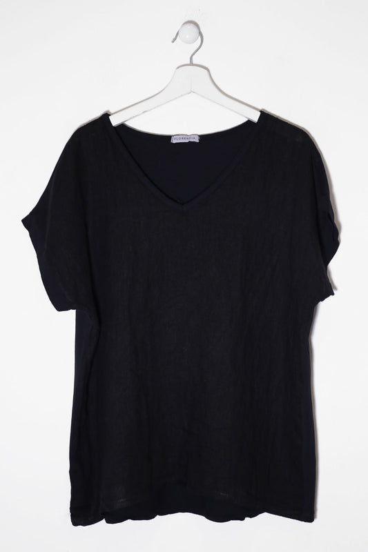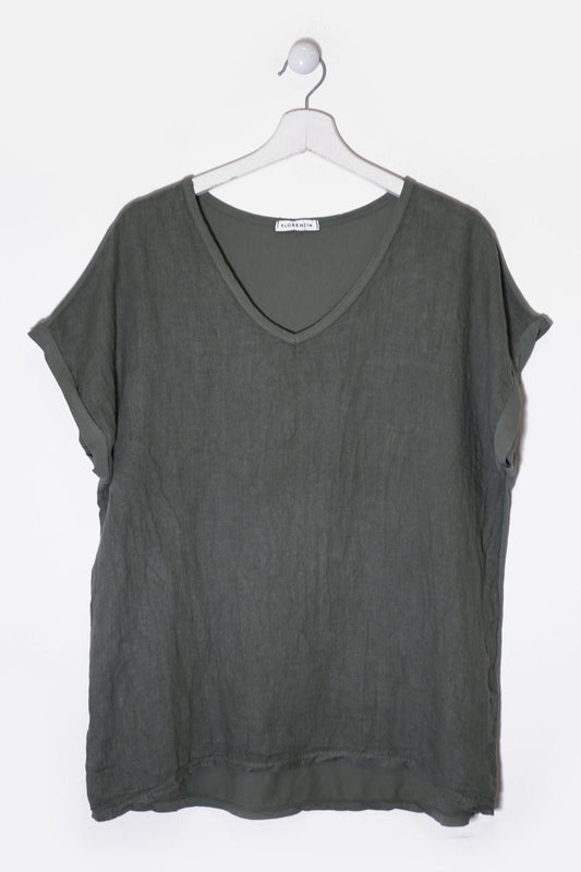 Camiseta lino cuello punta