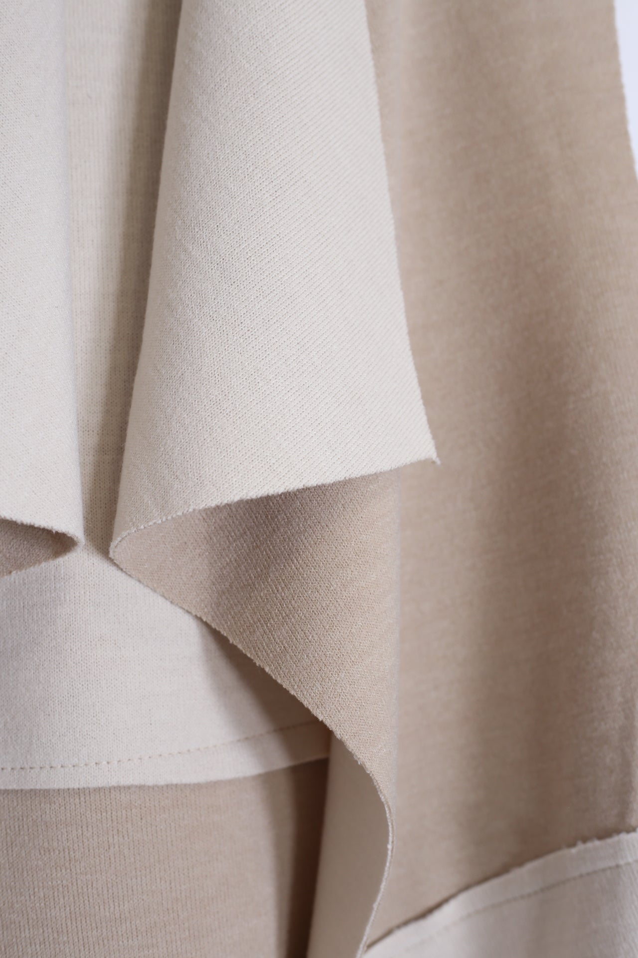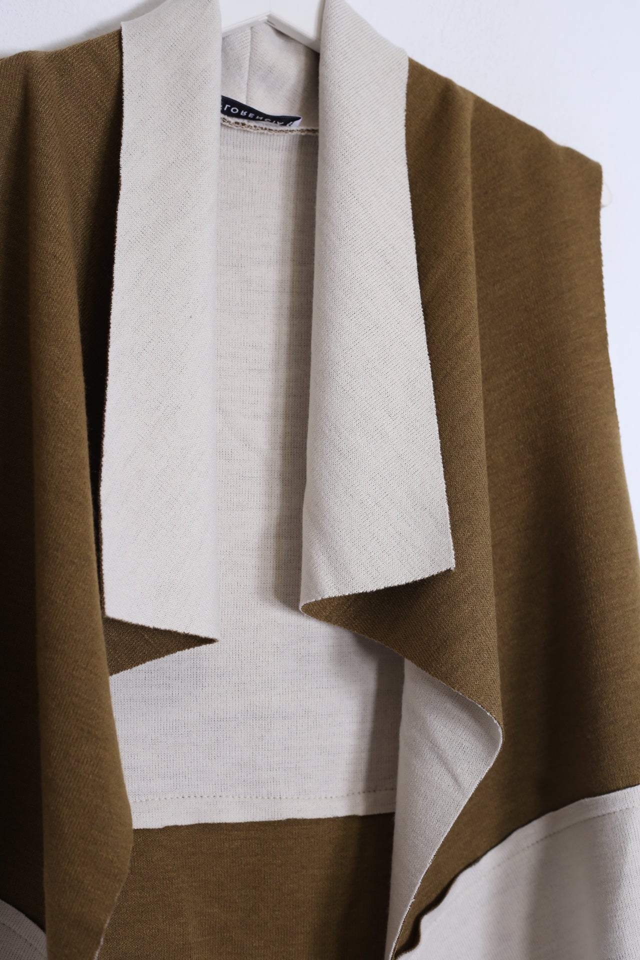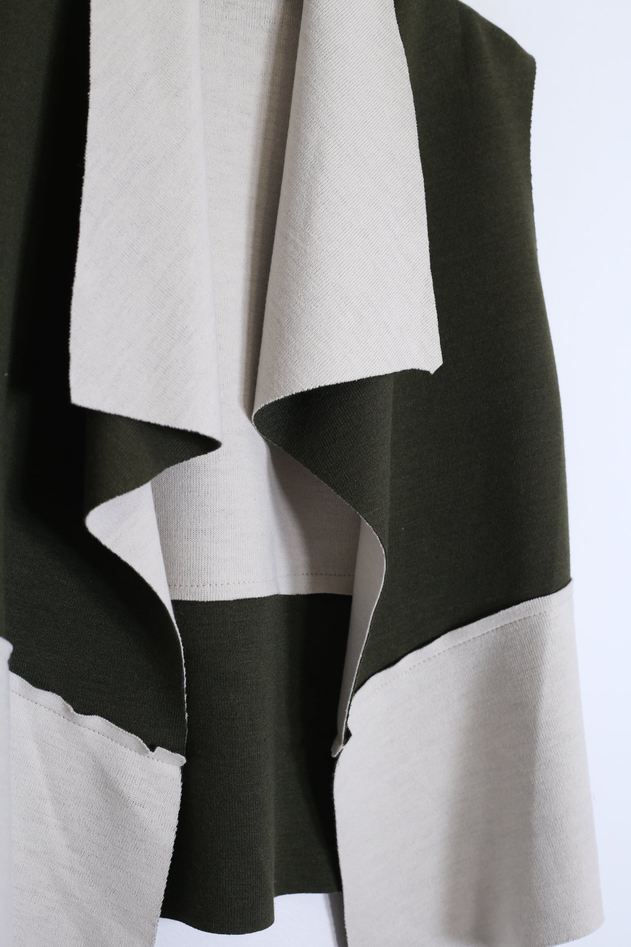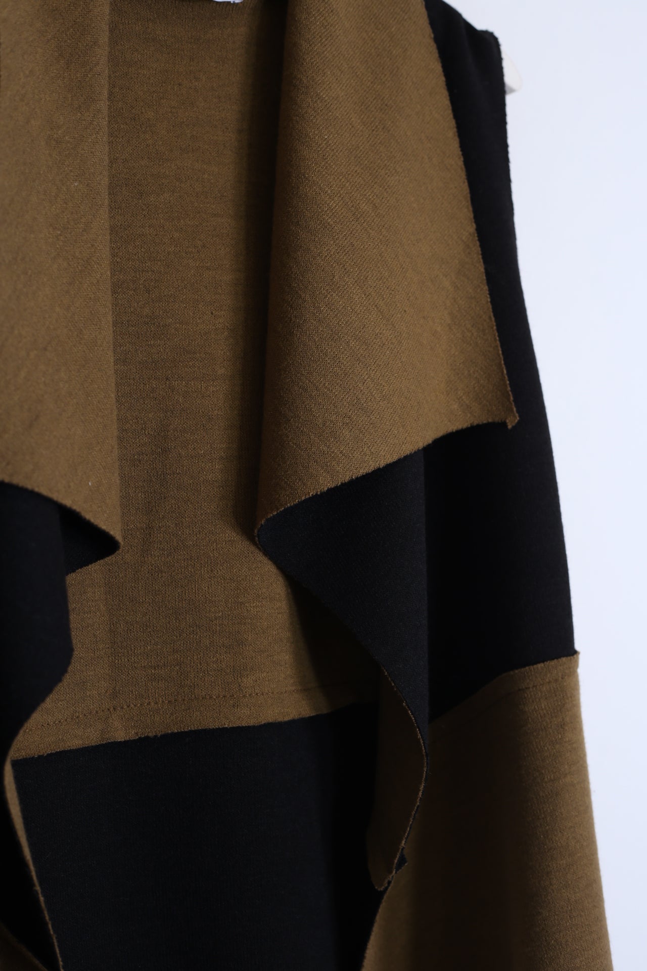 Chaleco con escote de solapa vuelta. Bajo asimétrico. Tejido en punto bitono.