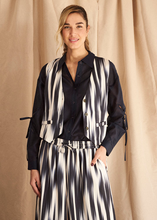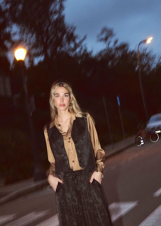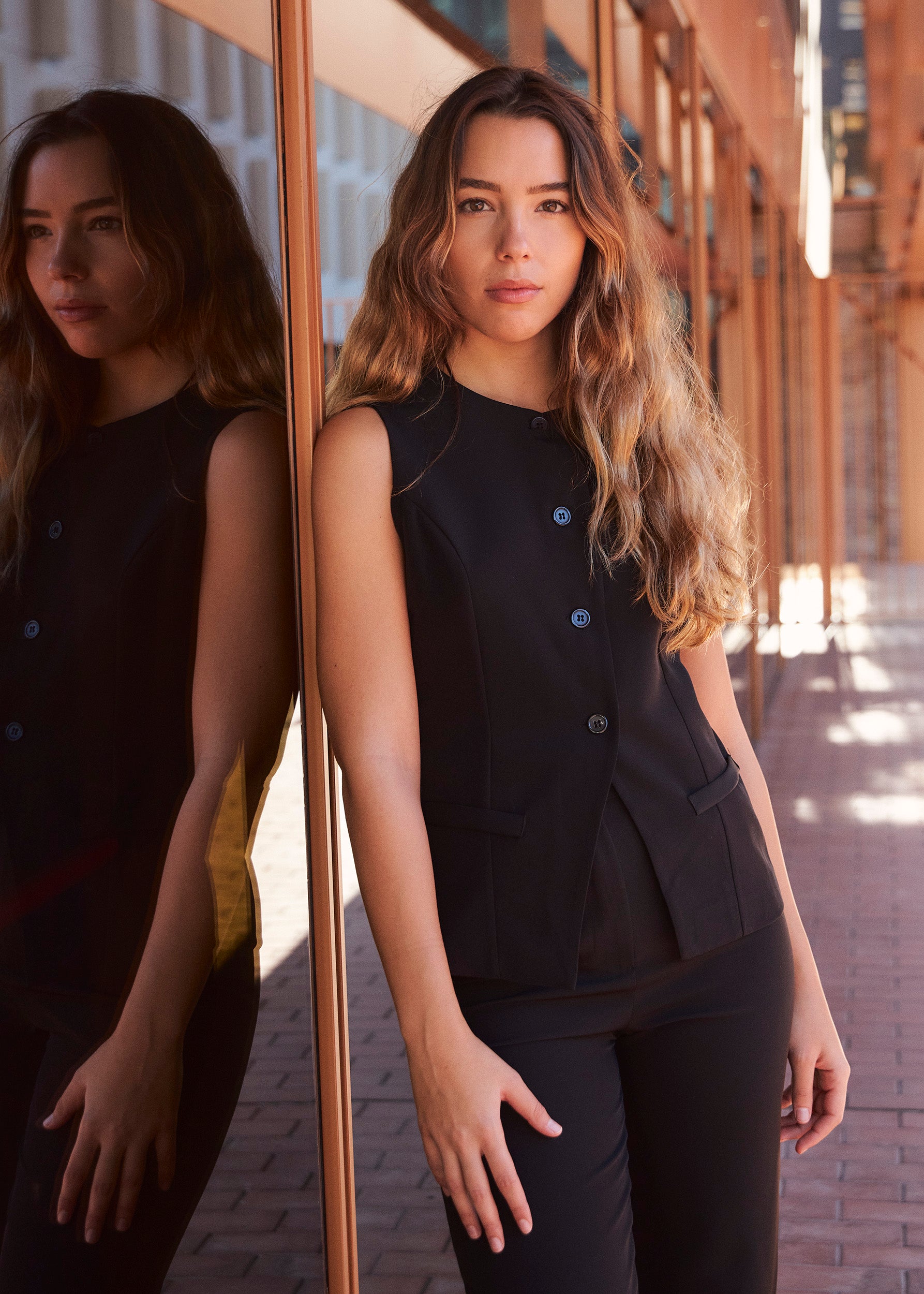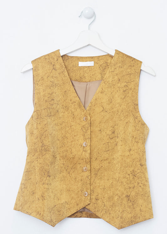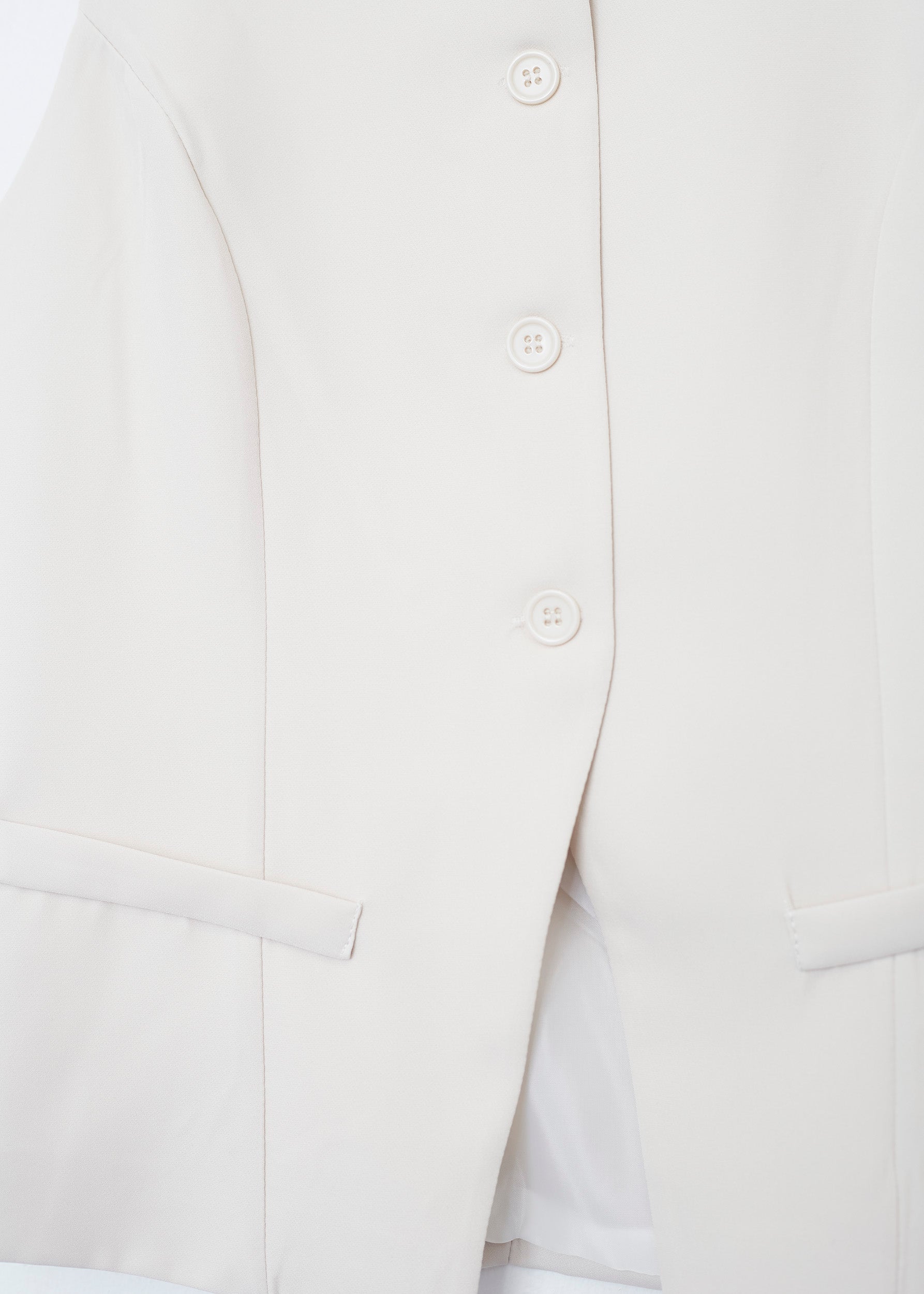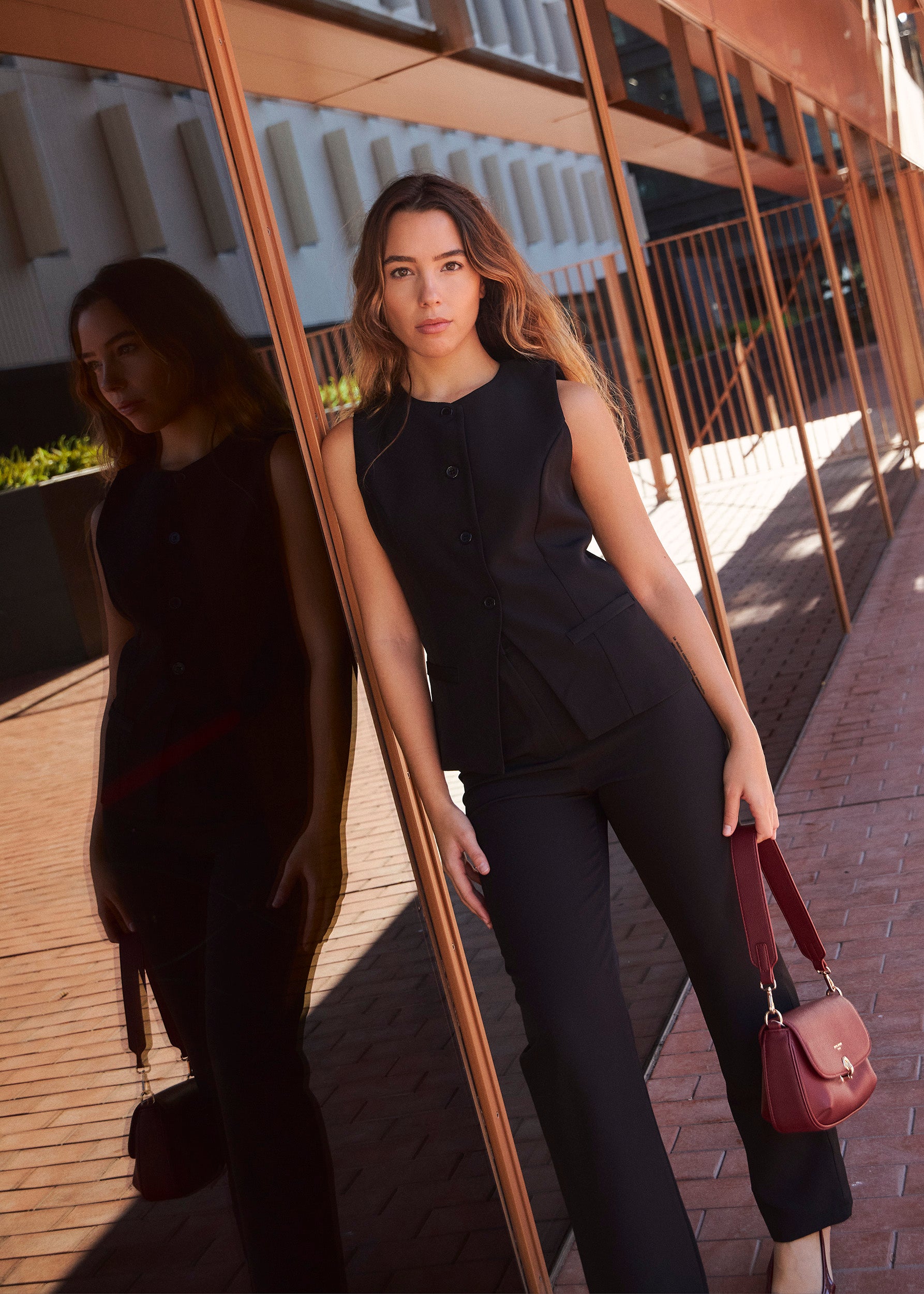 Vest with round neckline and sleeveless sleeves. Front button closure. Detail of false front welt pockets. Inner lining. Slim fit.