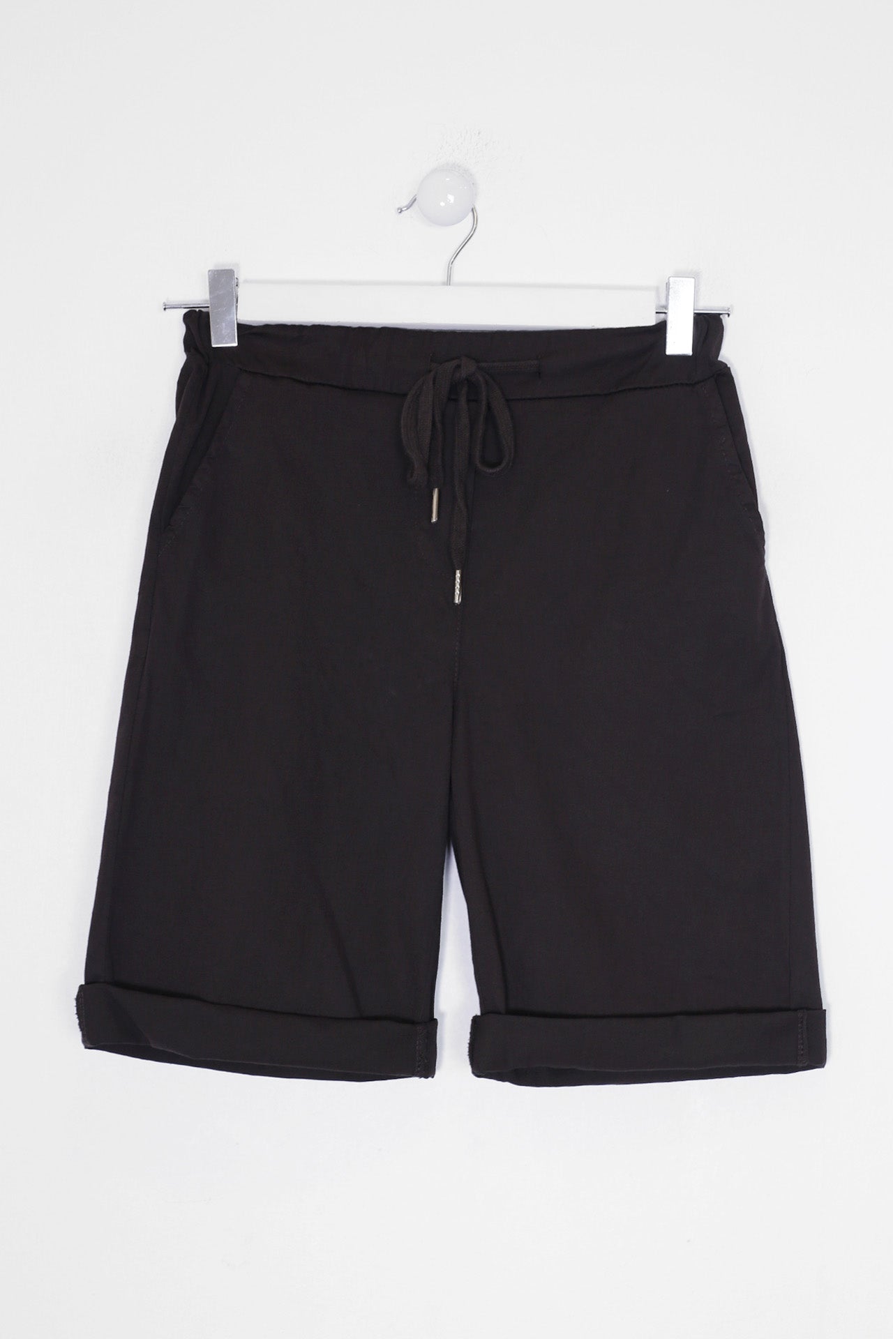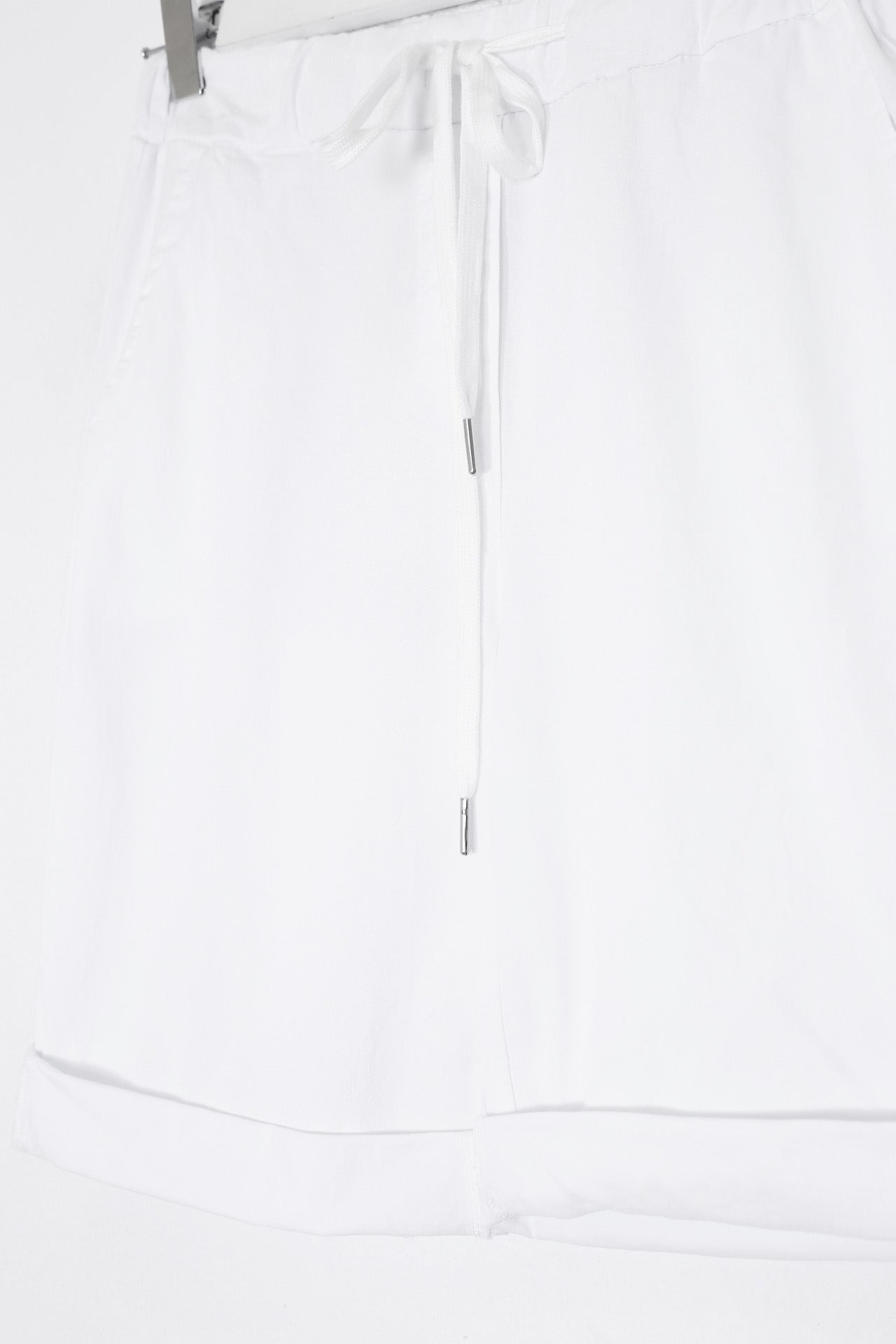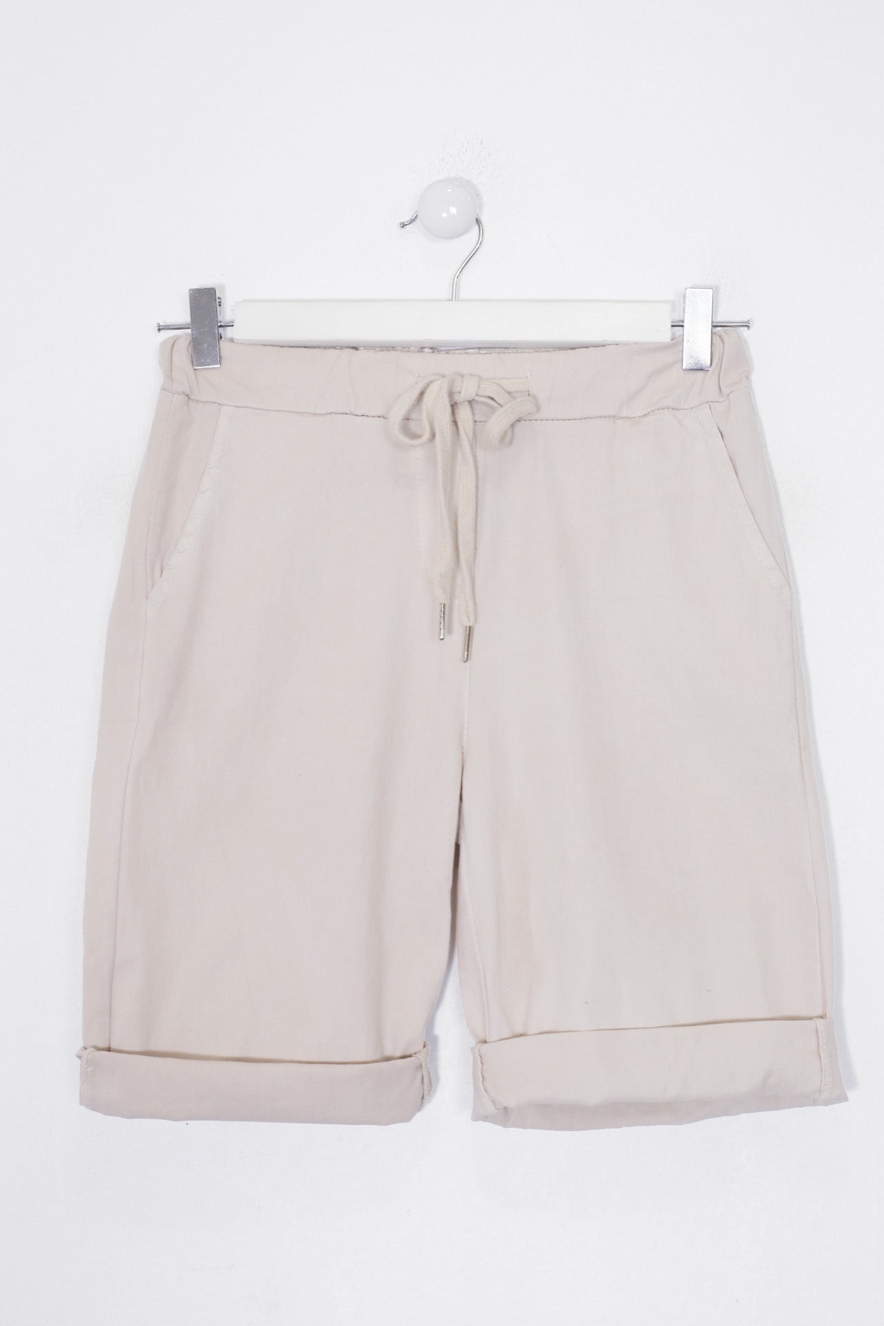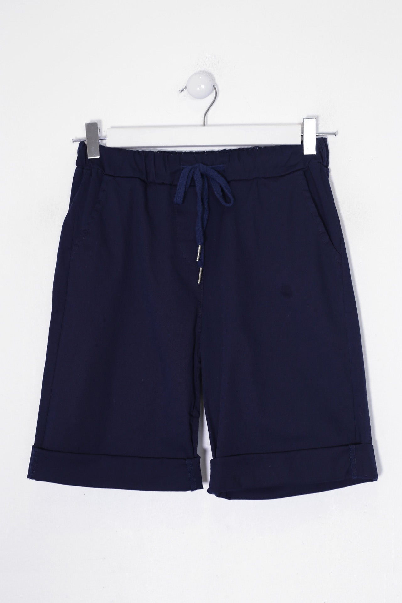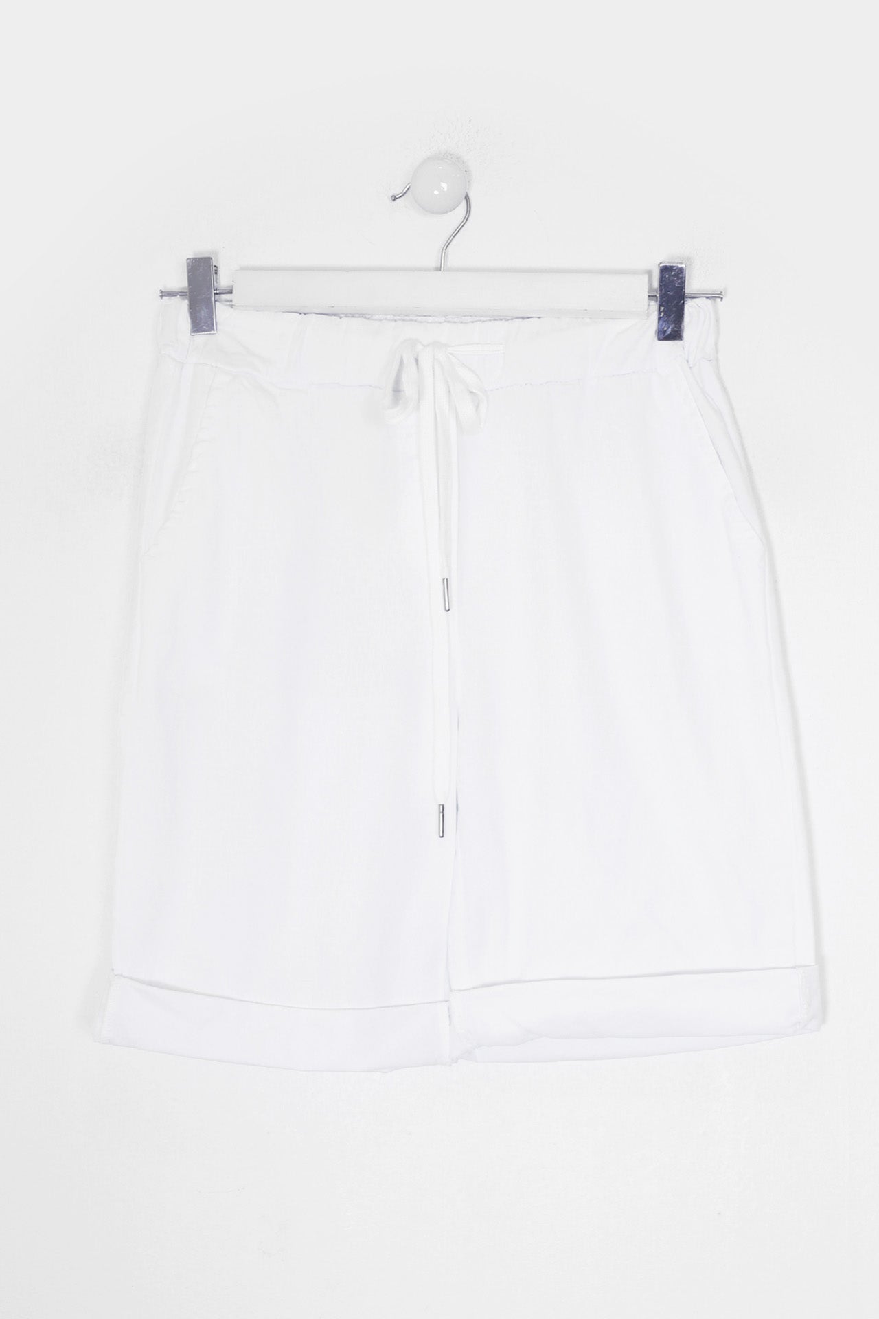 Bermuda de tiro alto. Cintura elástica con cordón ajustable.