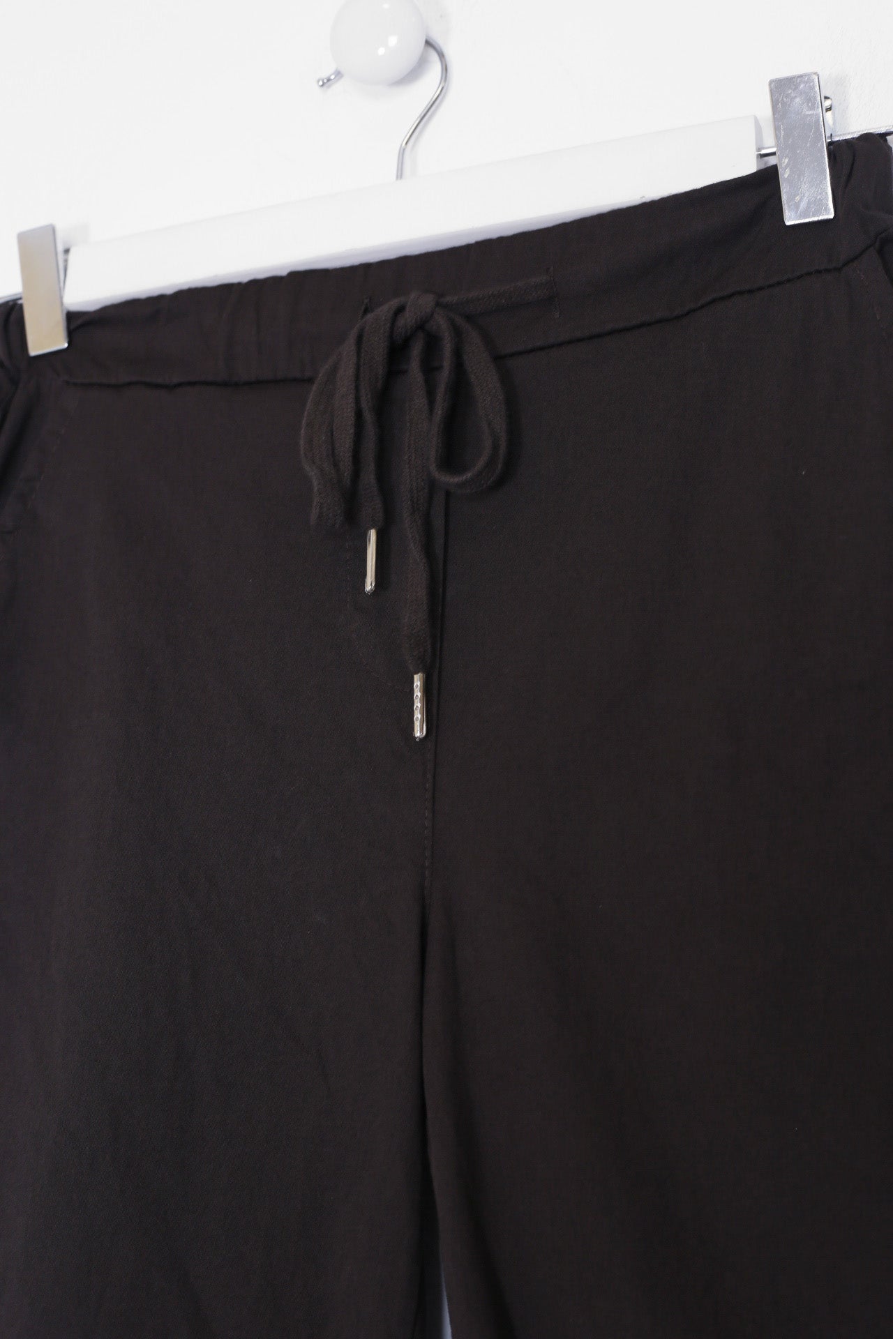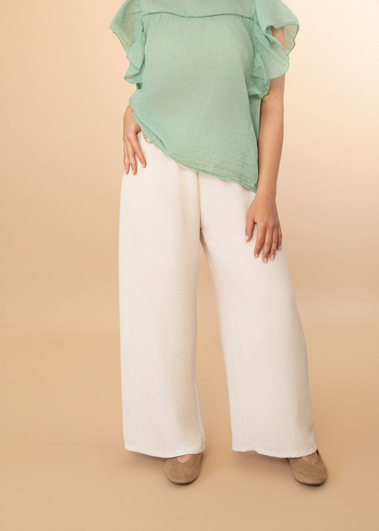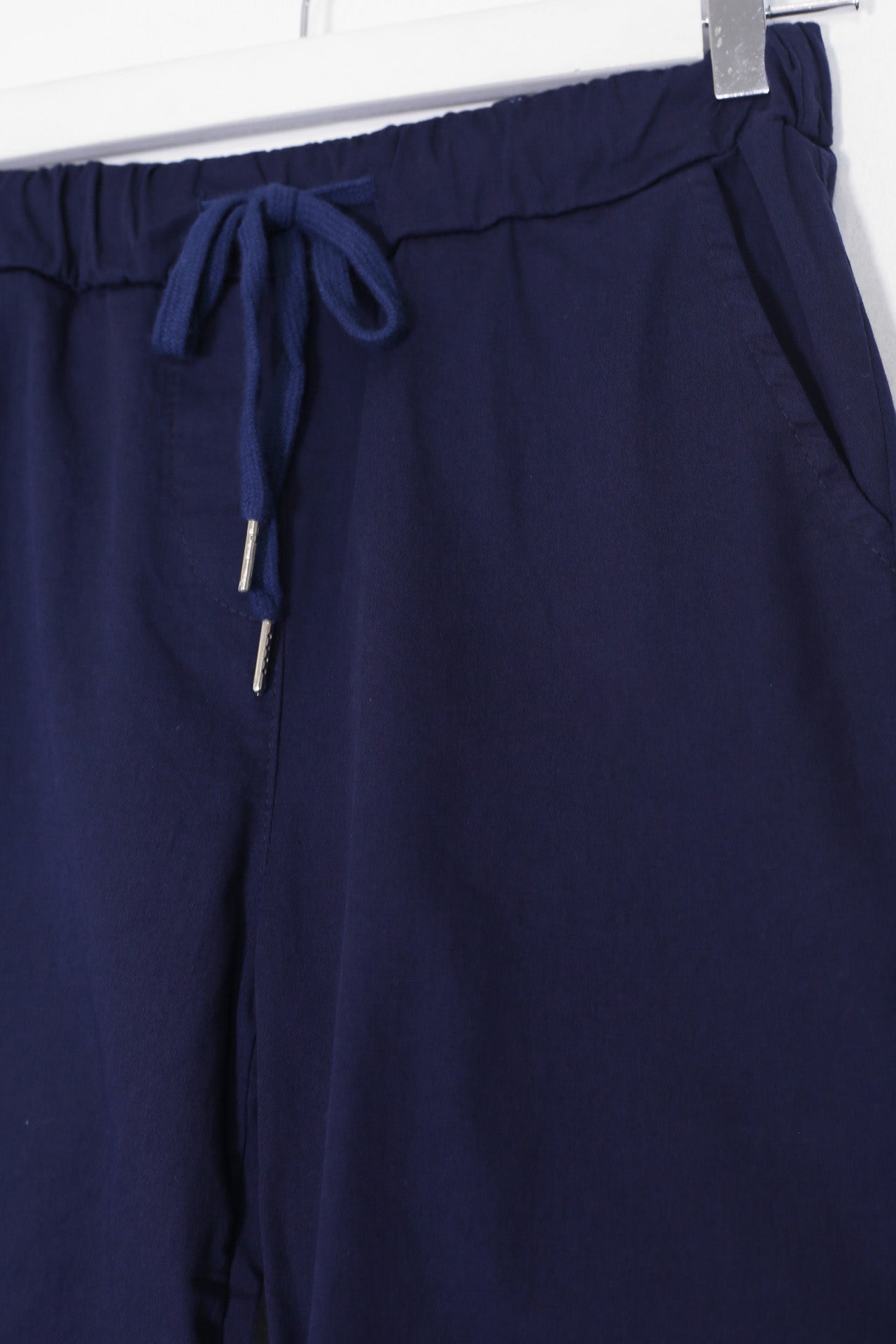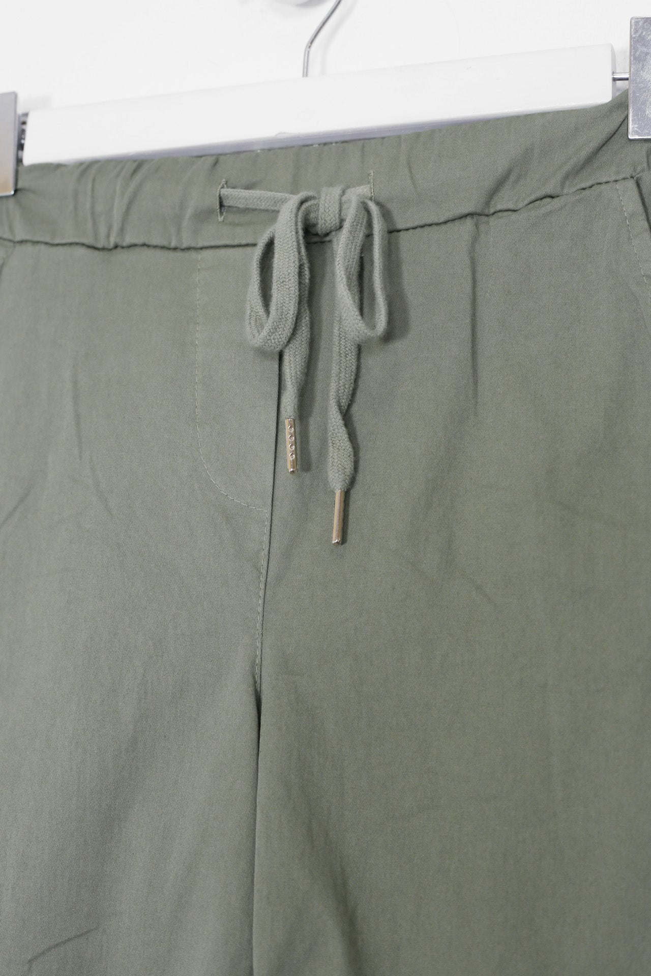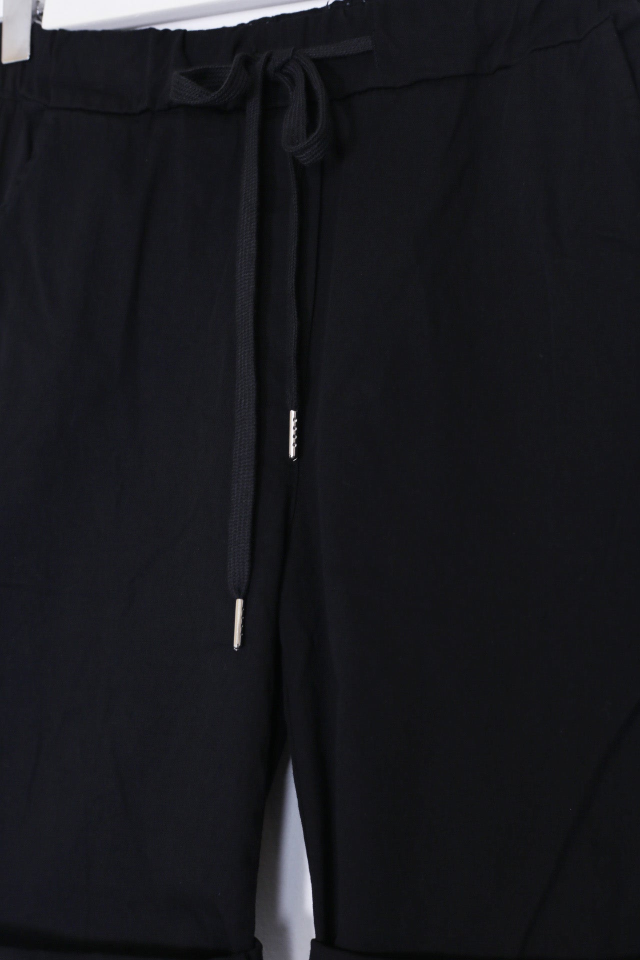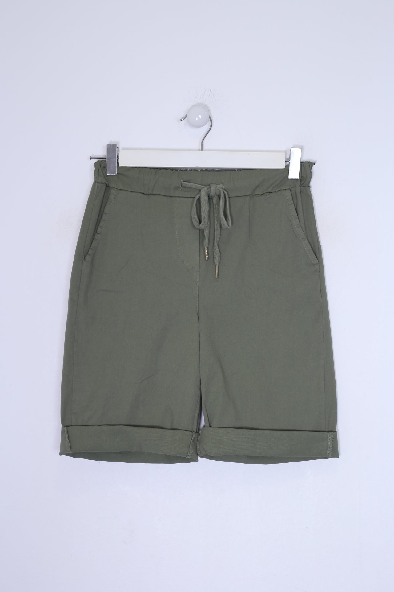 Bermuda de tiro alto. Cintura elástica con cordón ajustable.
