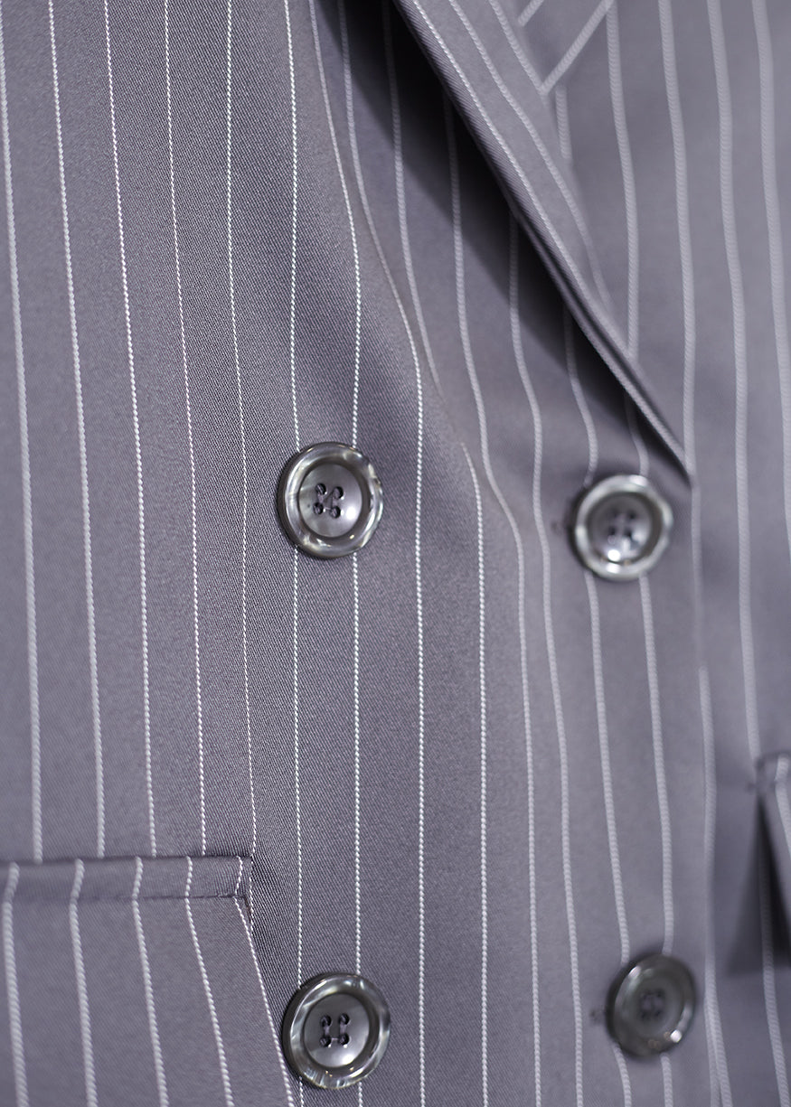 Blazer with lapel collar and long sleeves with shoulder pads. False flap pockets on the front. Front button closure. Inner lining.