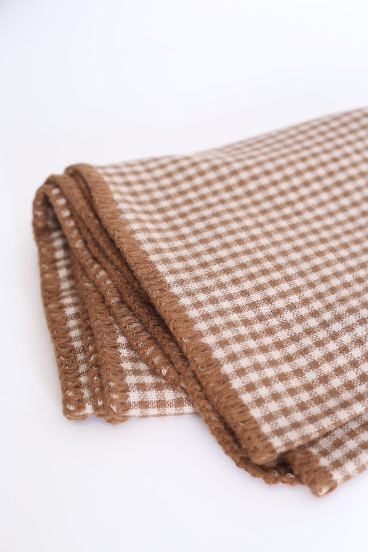 Bufanda tacto suave con motivo vichy. Acabado con detalle de pespuntes a contraste.