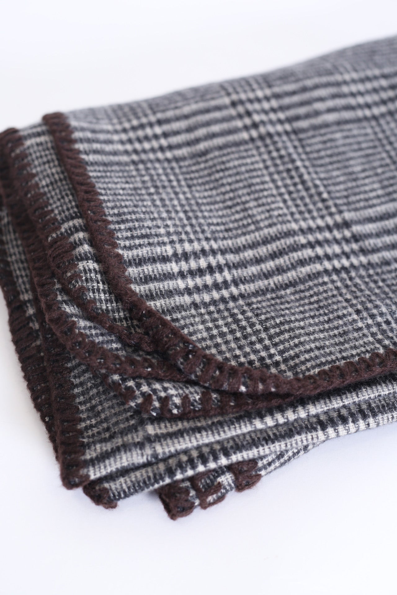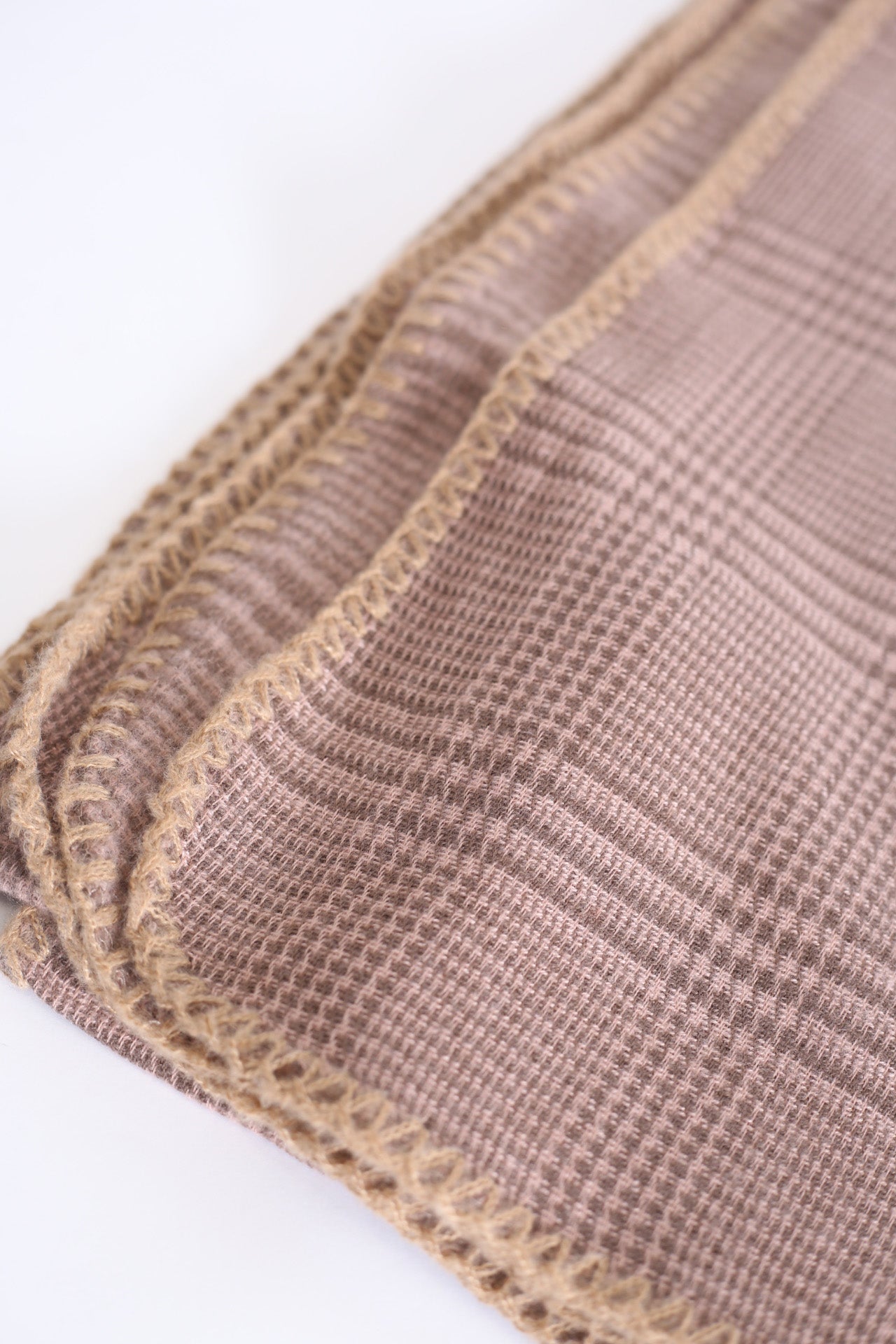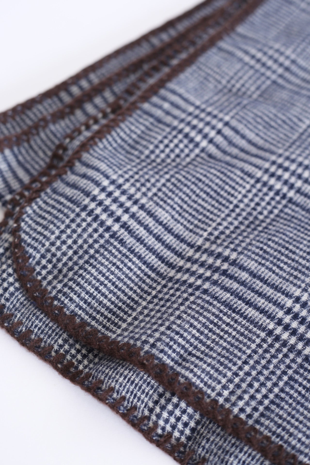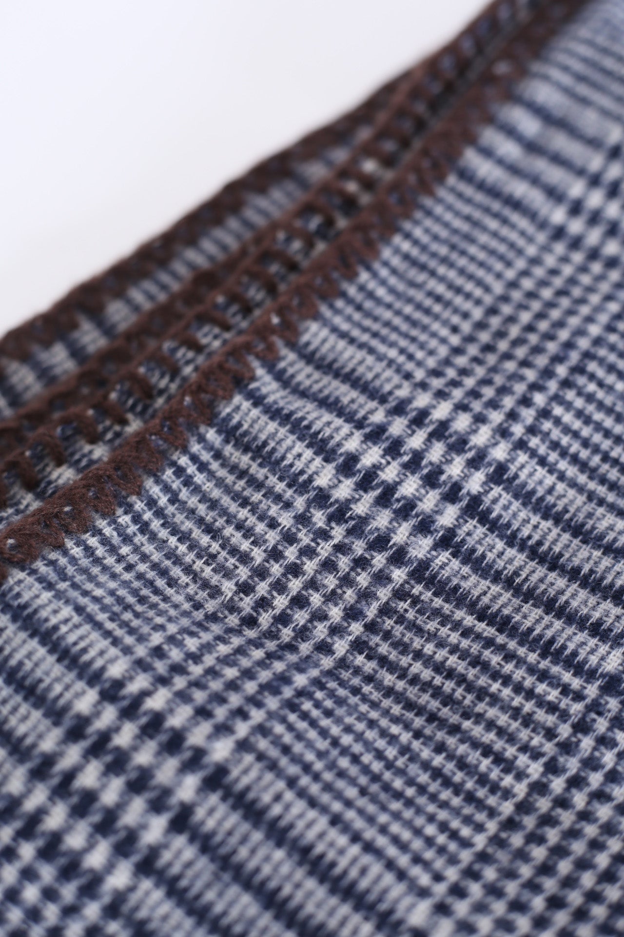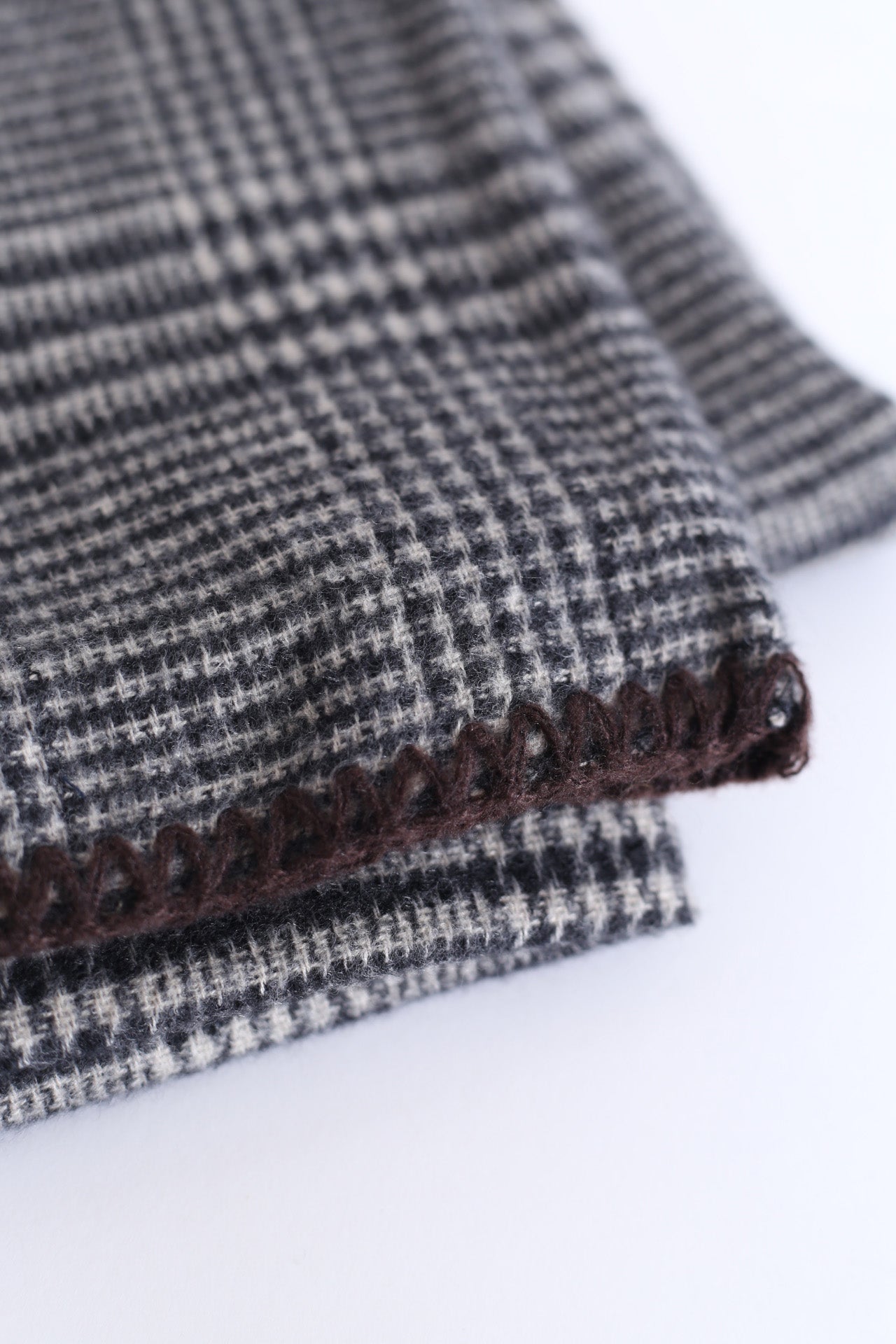 Bufanda tacto suave con motivo de pata de gallo. Acabado con detalle de pespuntes a contraste.