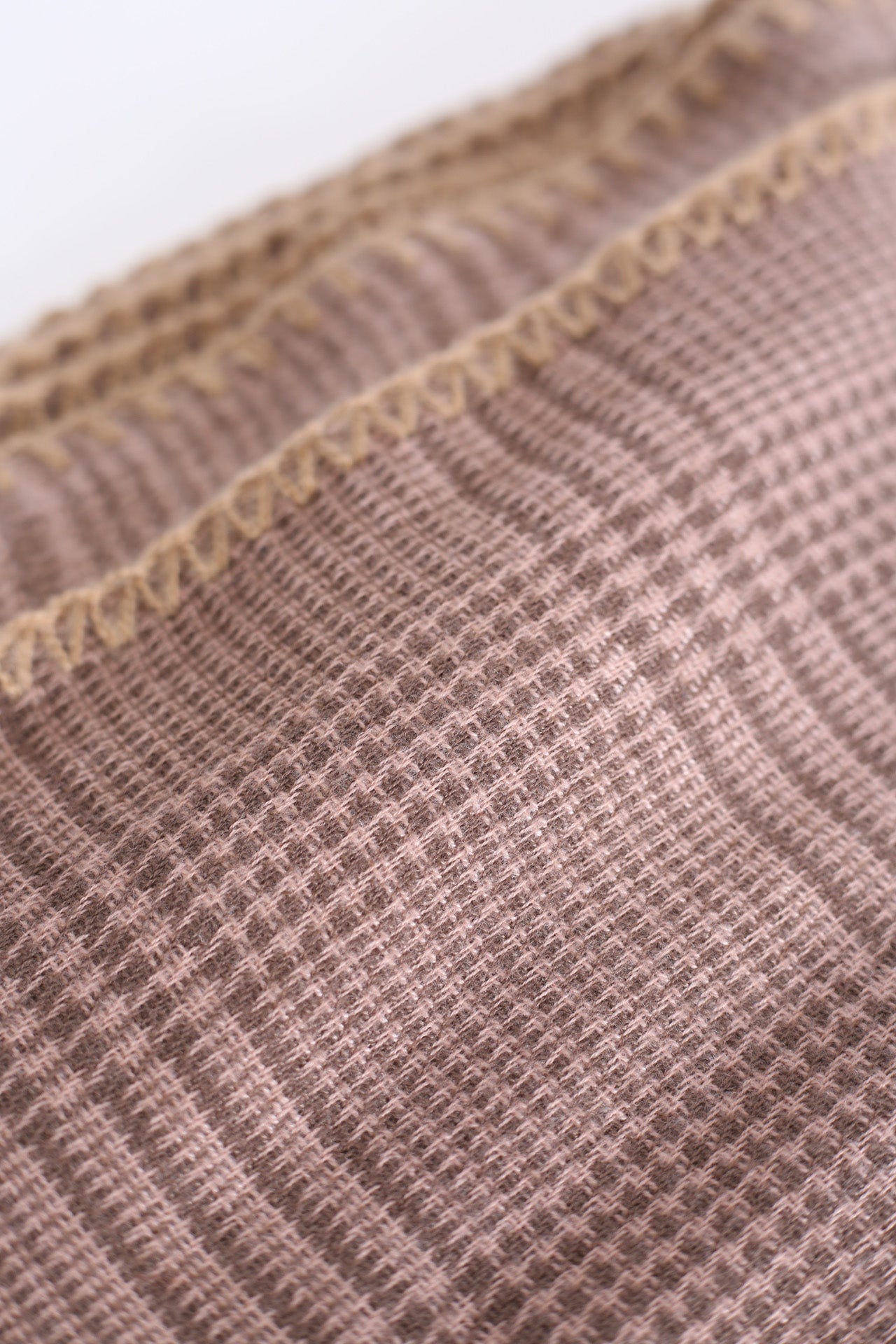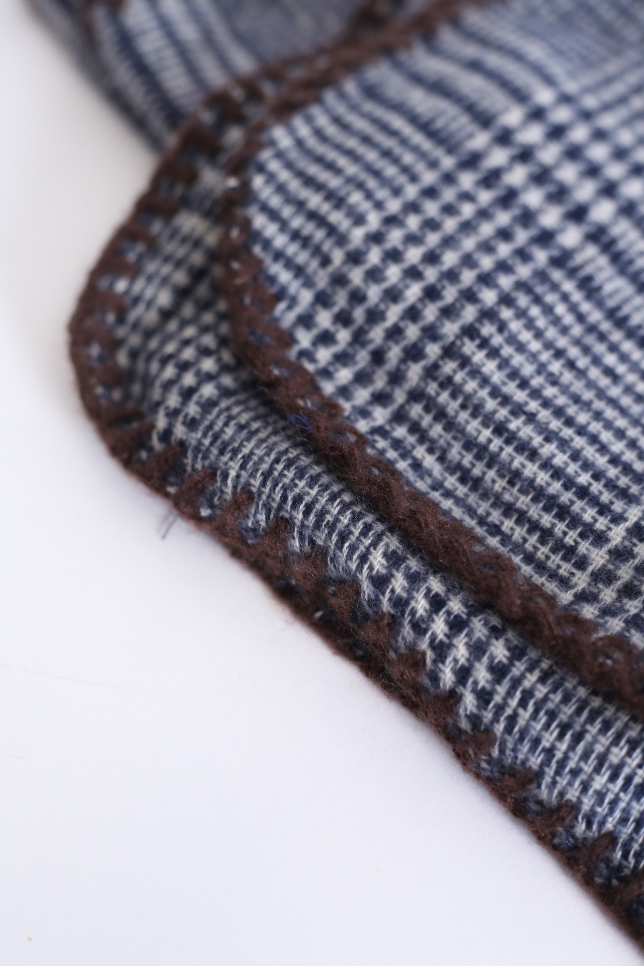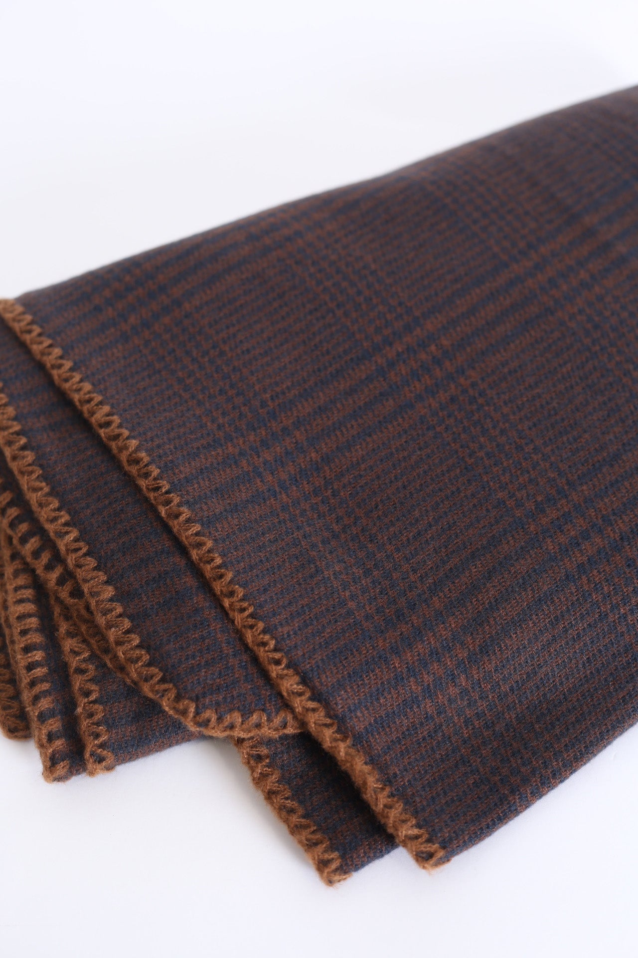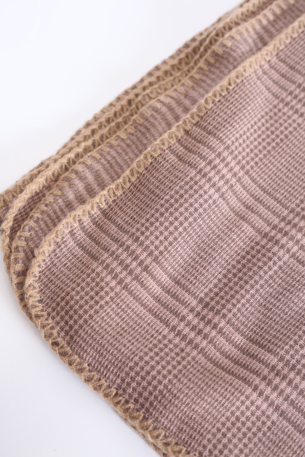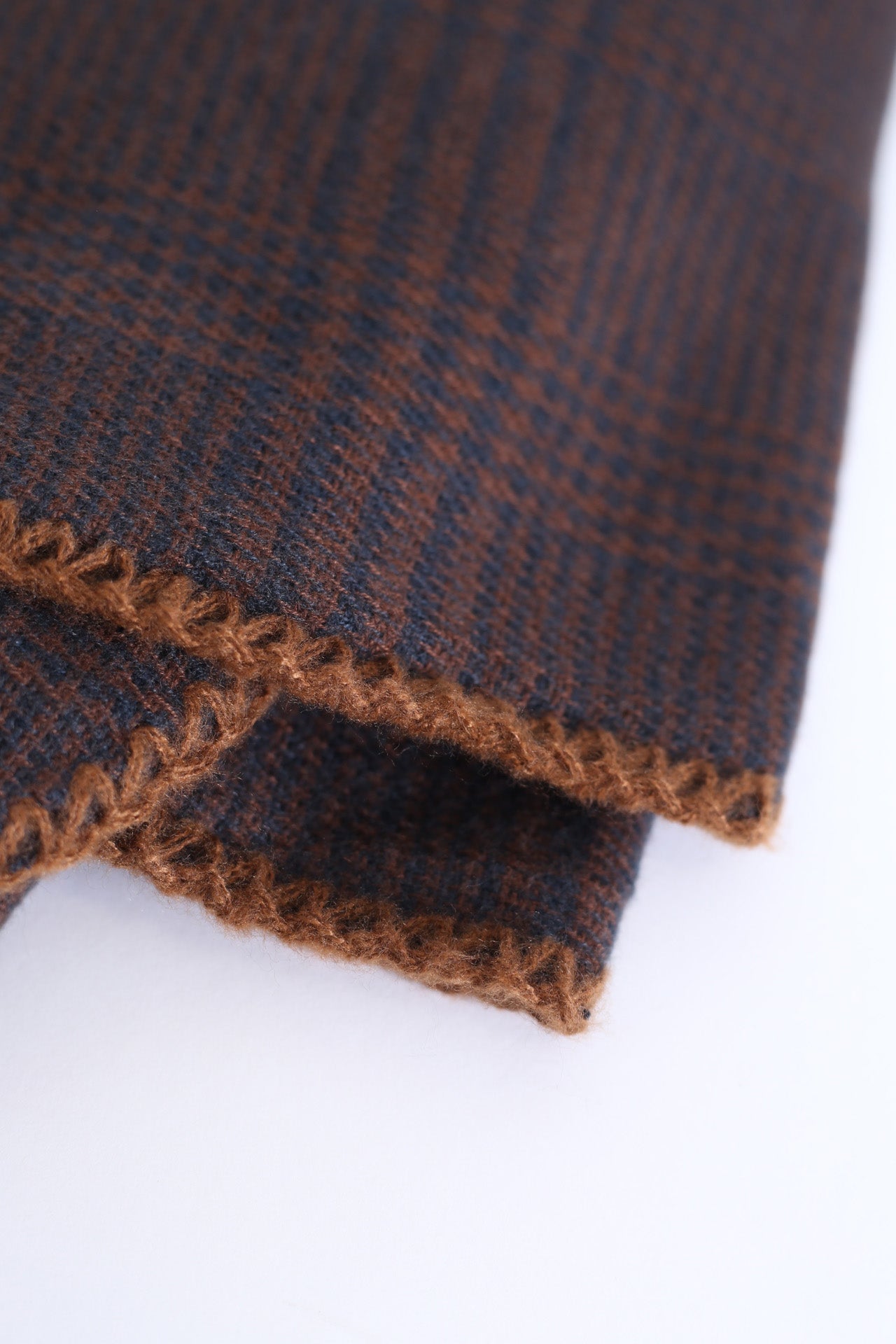 Bufanda tacto suave con motivo de pata de gallo. Acabado con detalle de pespuntes a contraste.