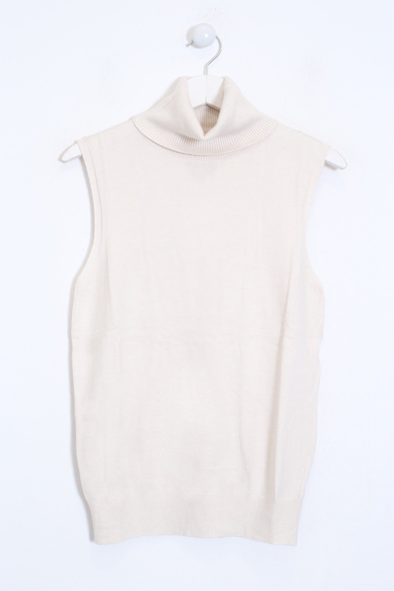 Jersey sin mangas y con cuello alto. Acabados en rib. Corte recto. Tejido soft.