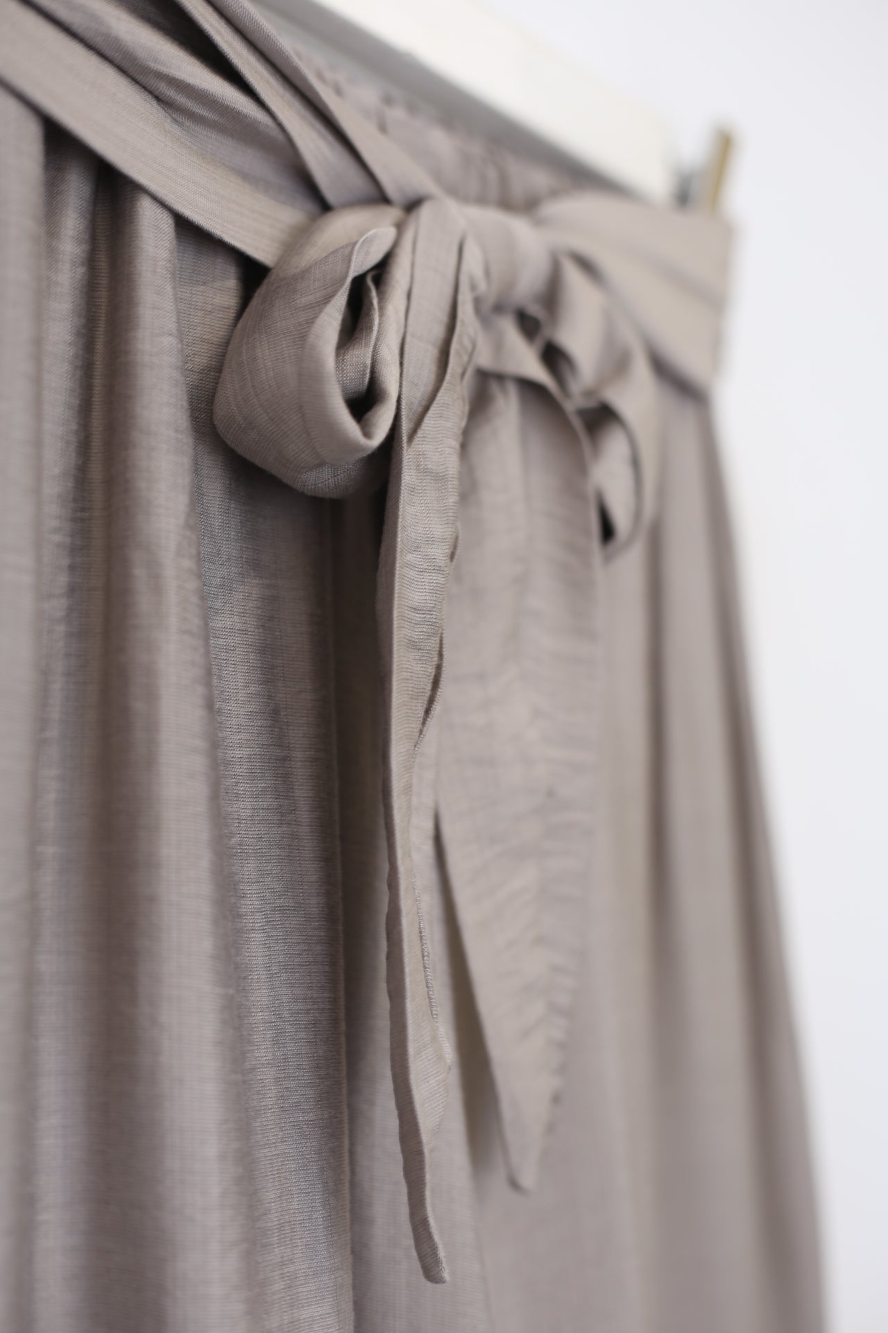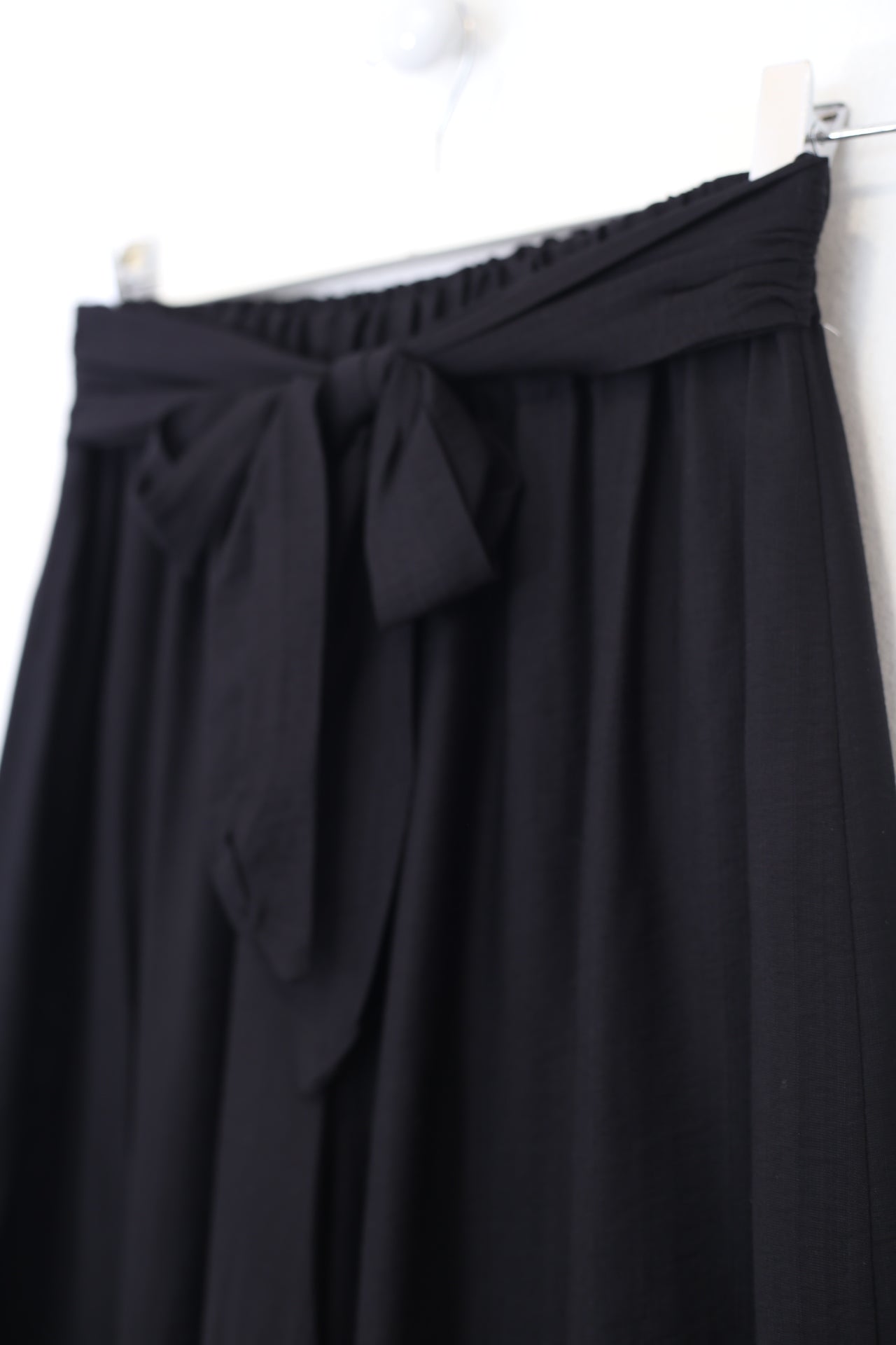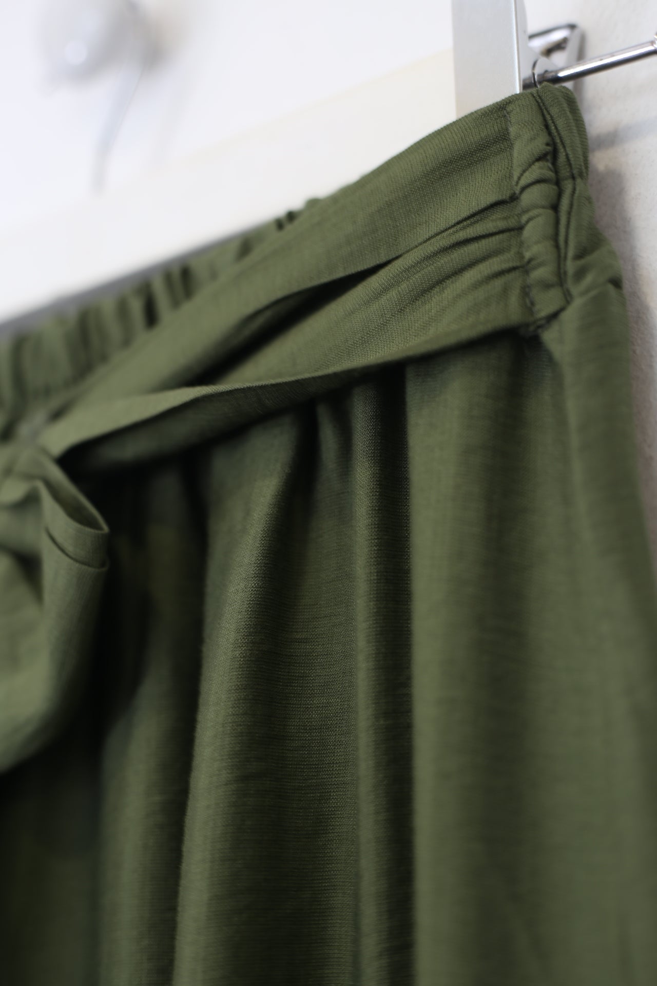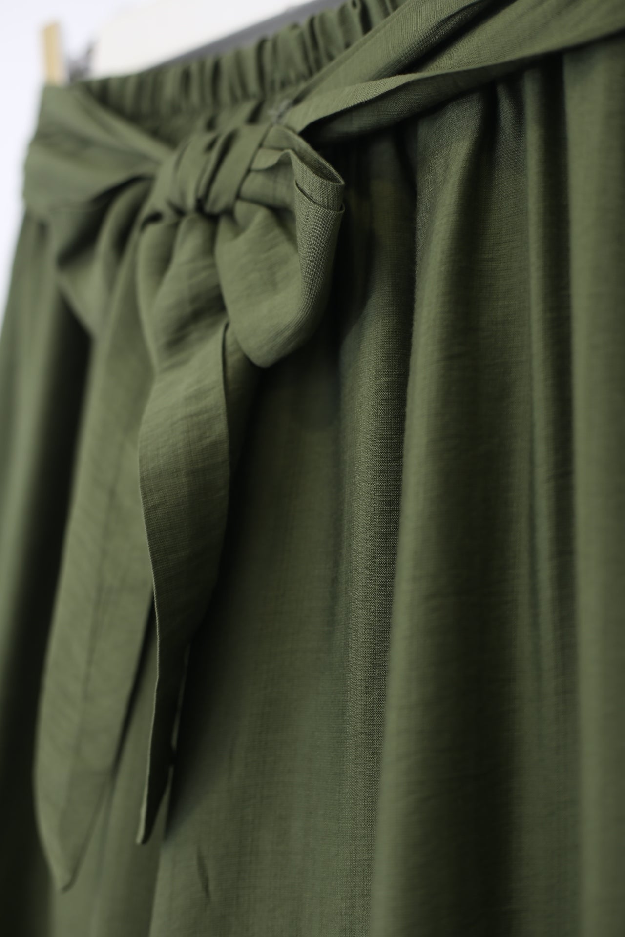 Pantalones anchos de tiro alto. Cintura elástica con detalle de cinturón anudado.