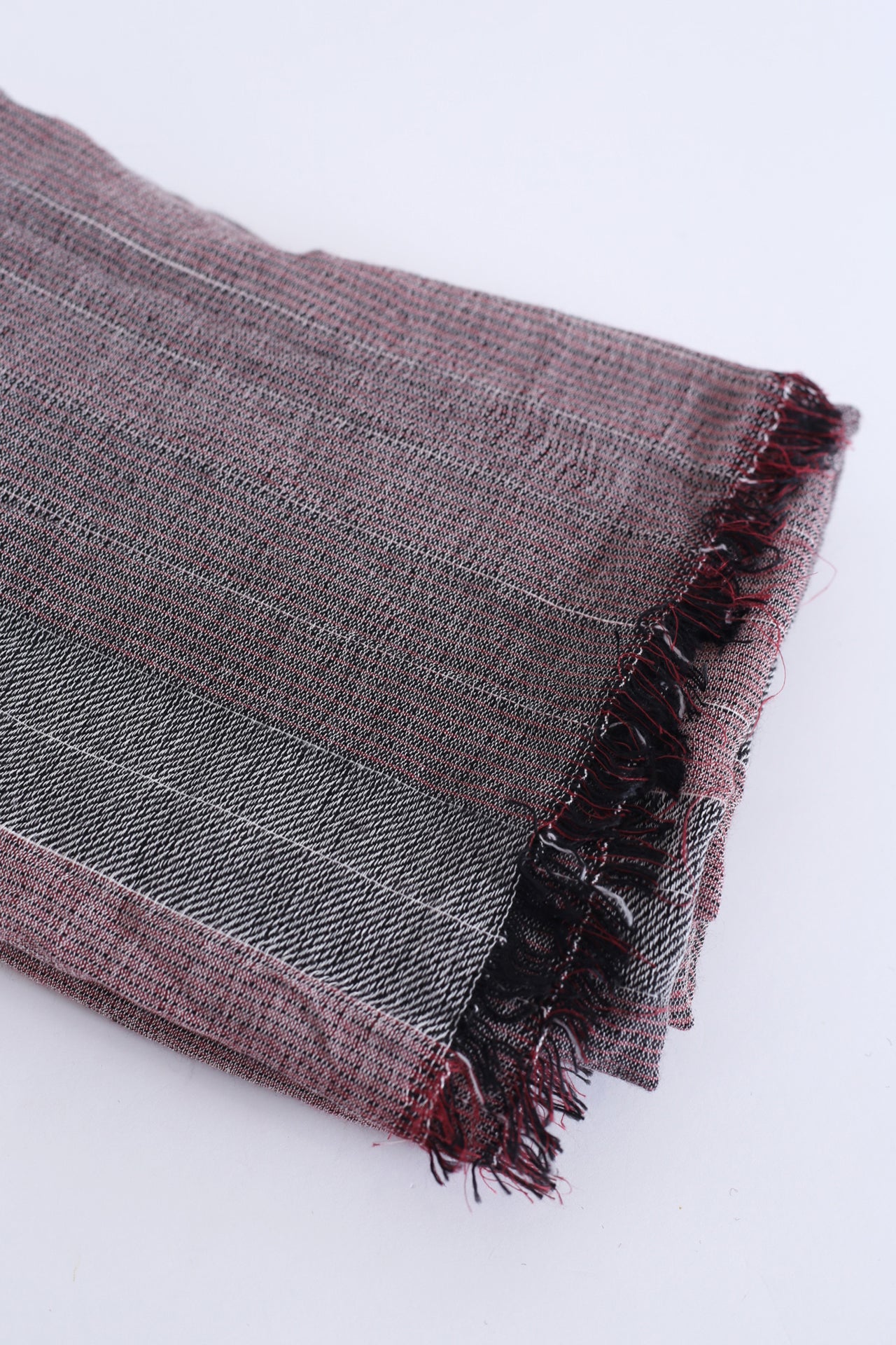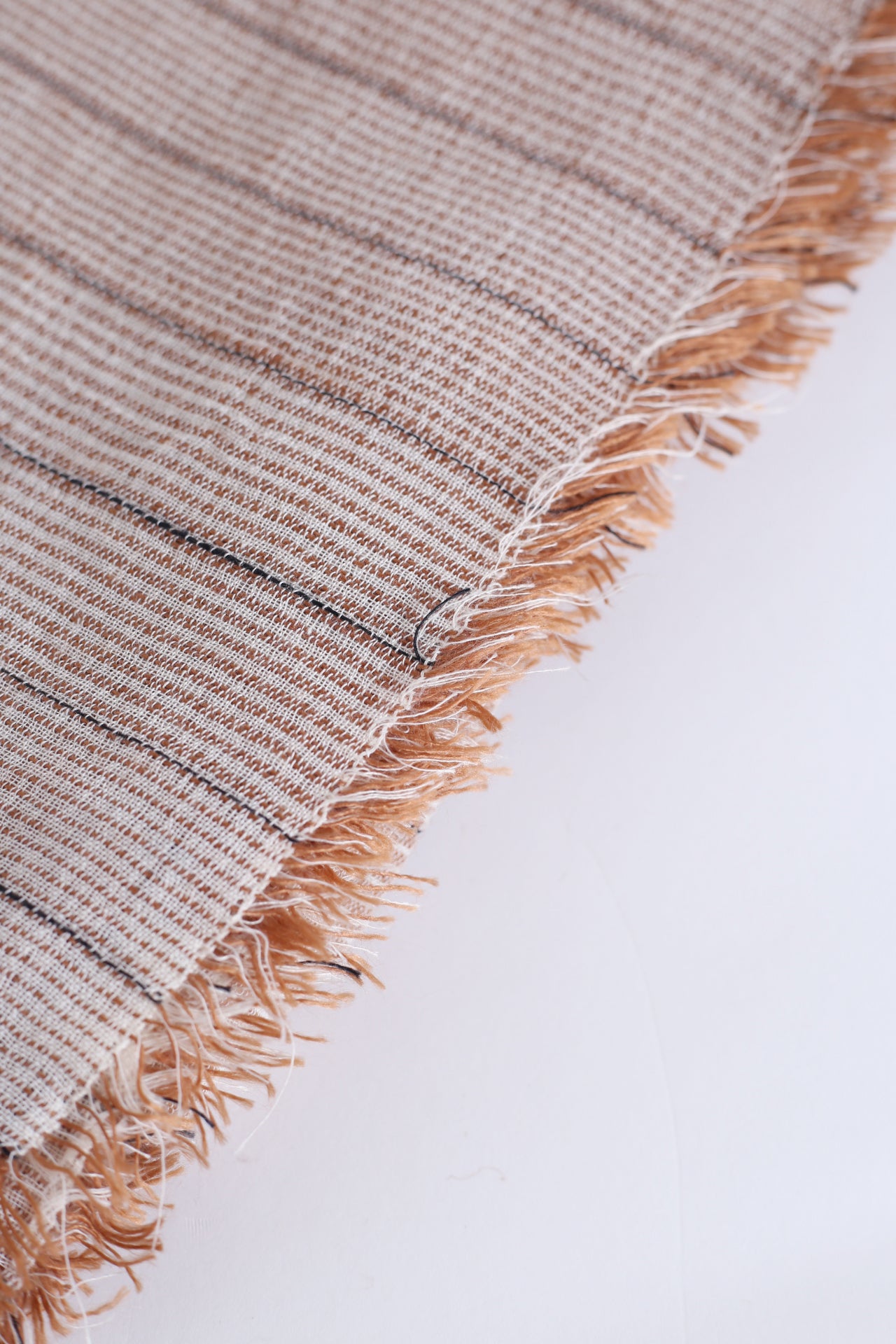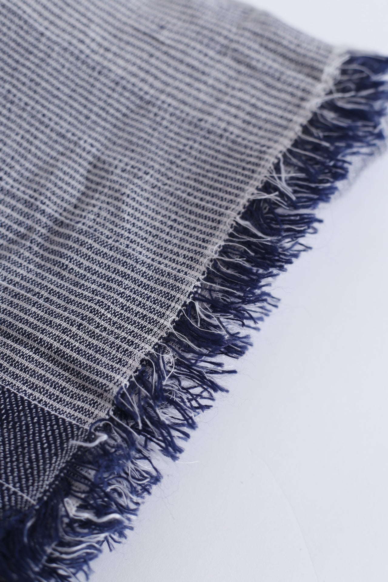Pañuelo texturado con detalle de rayas finas a contraste. Acabados desflecados.