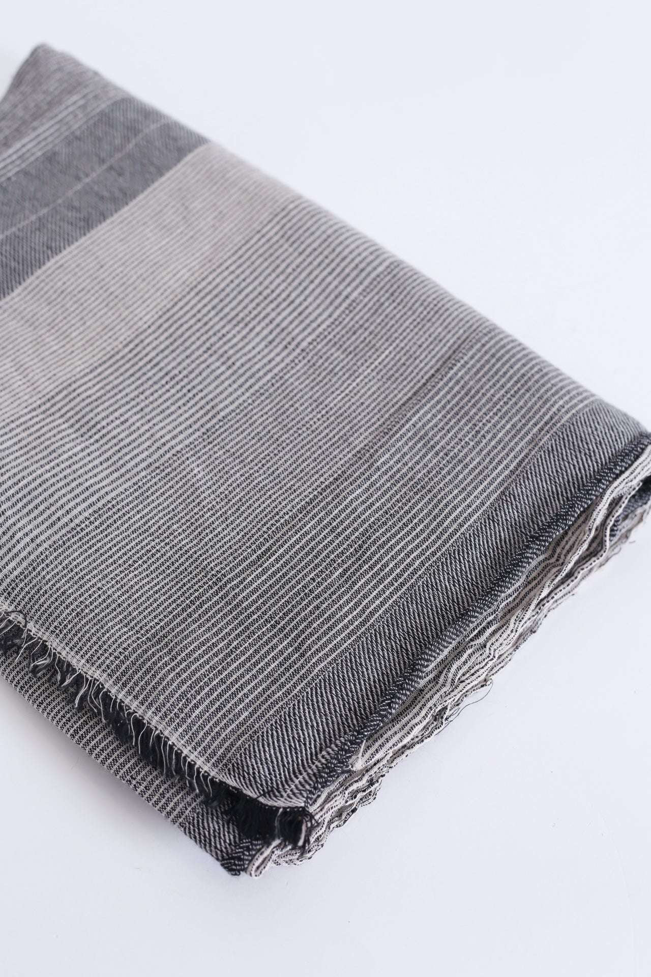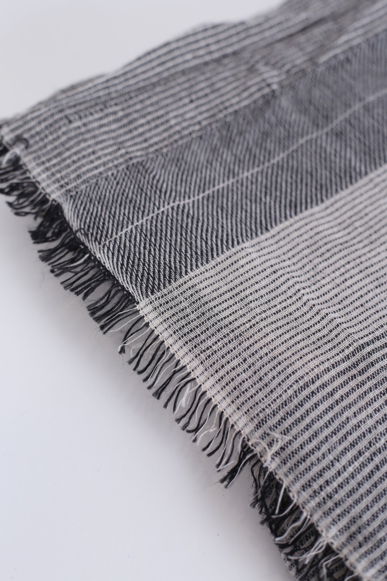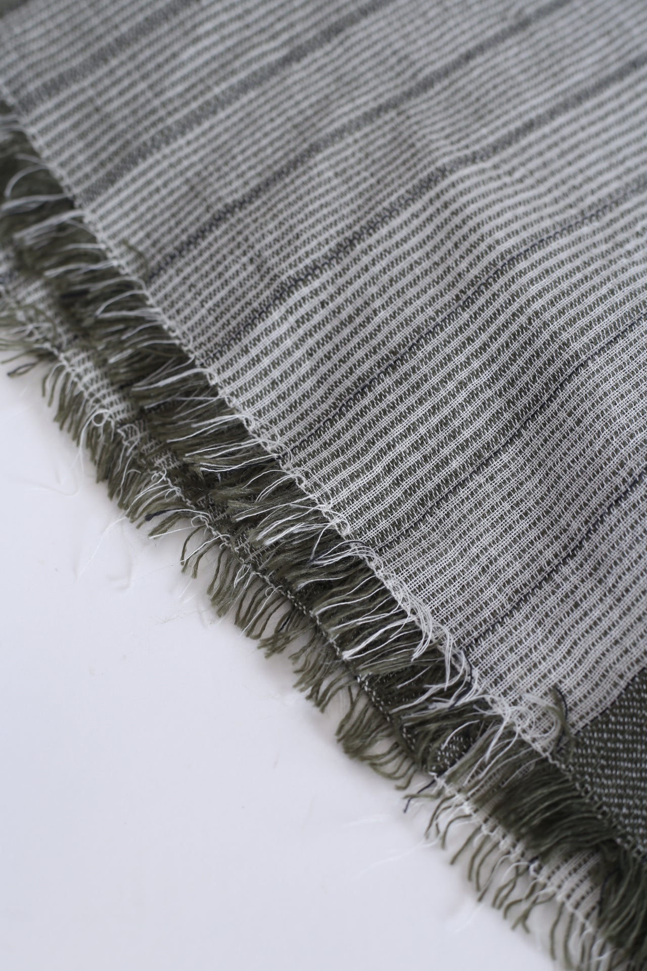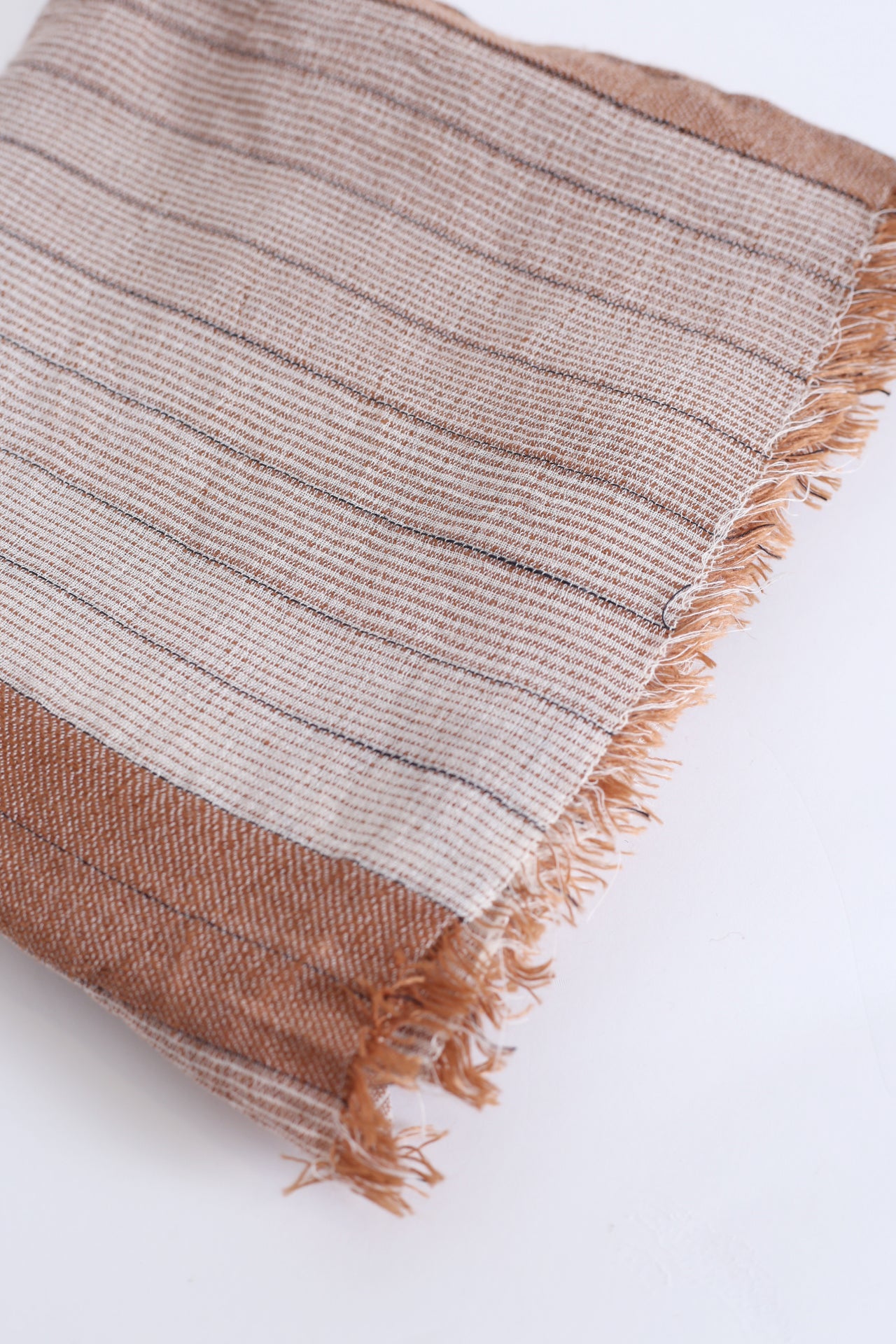 Pañuelo texturado con detalle de rayas finas a contraste. Acabados desflecados.