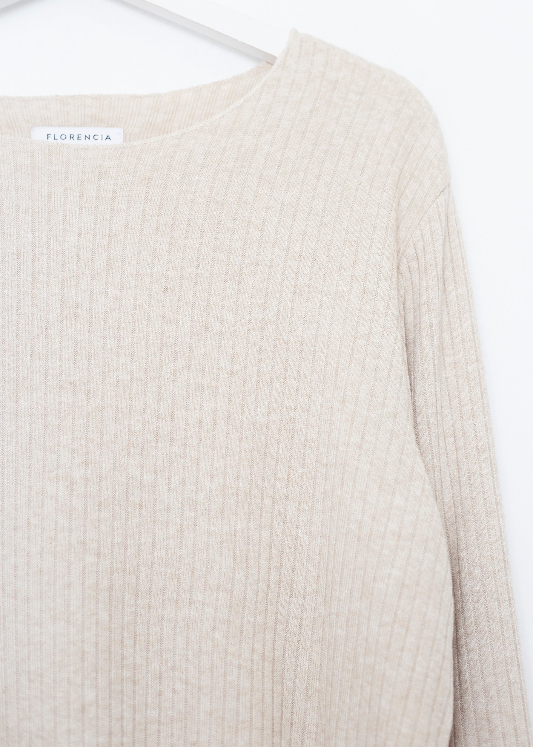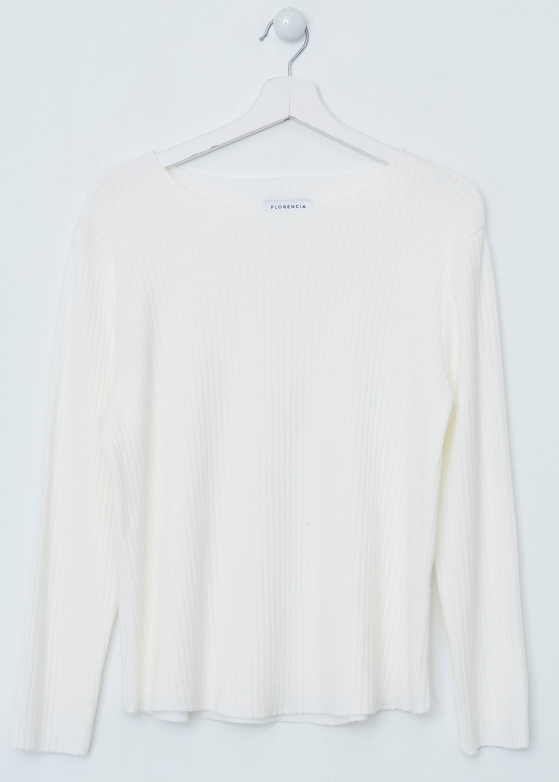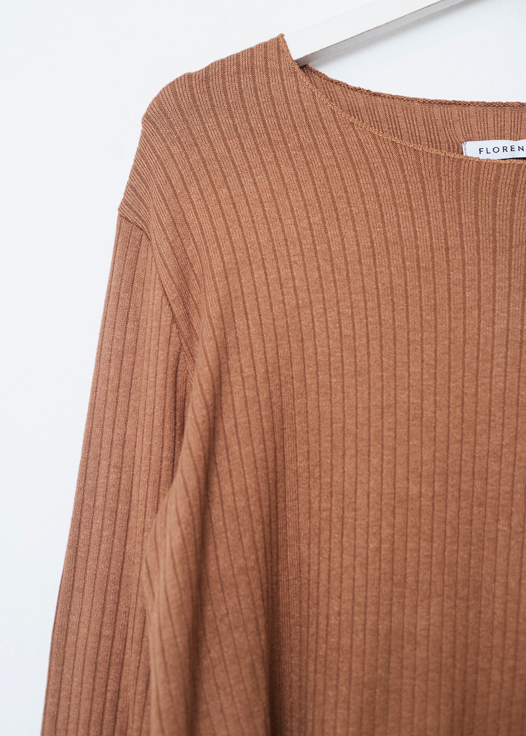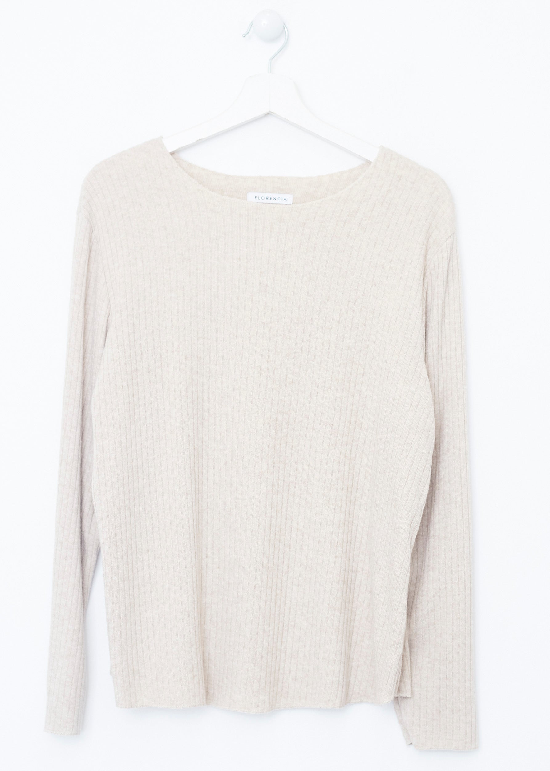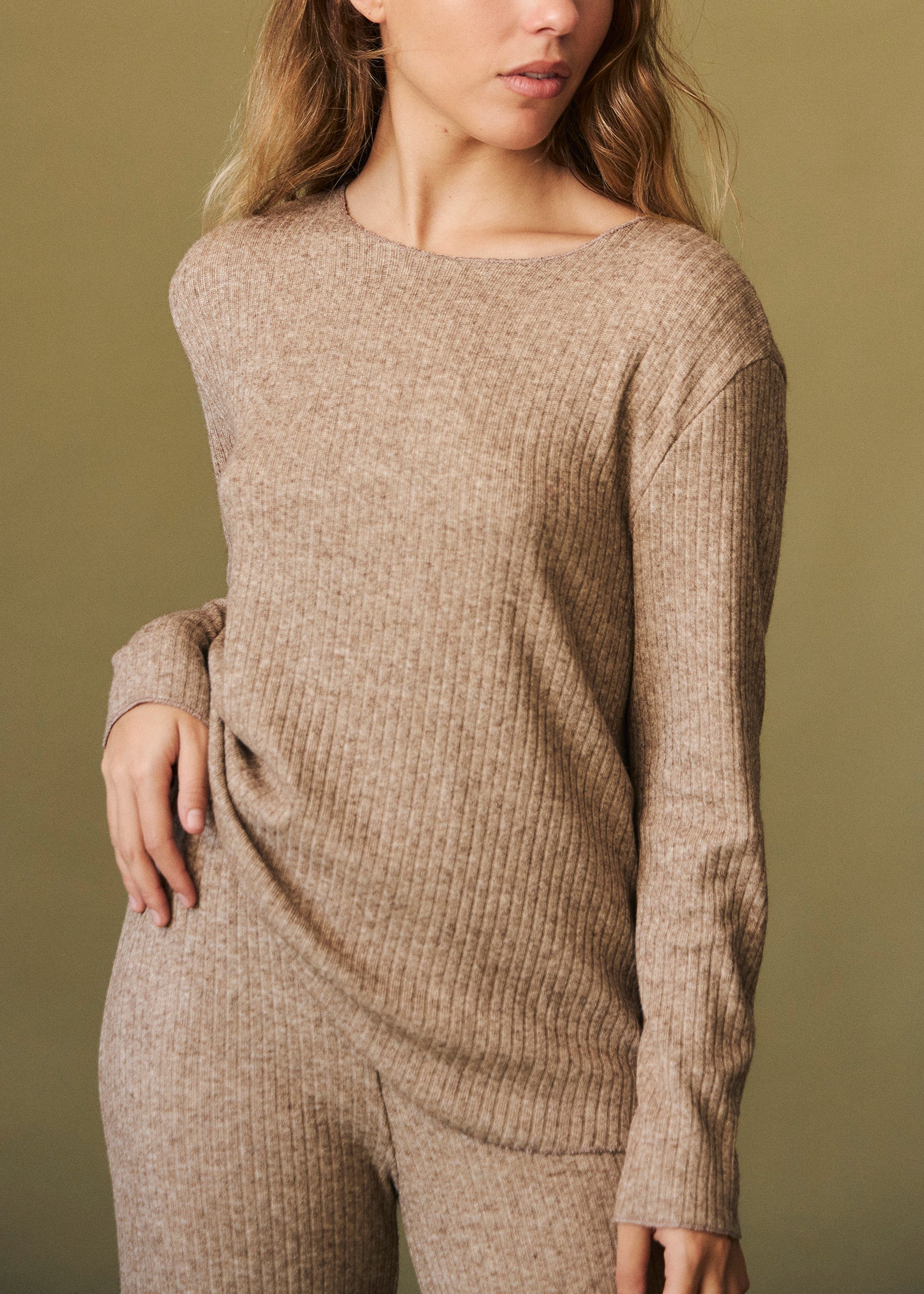 Ribbed round neck T-shirt with long sleeves. Loose fit.