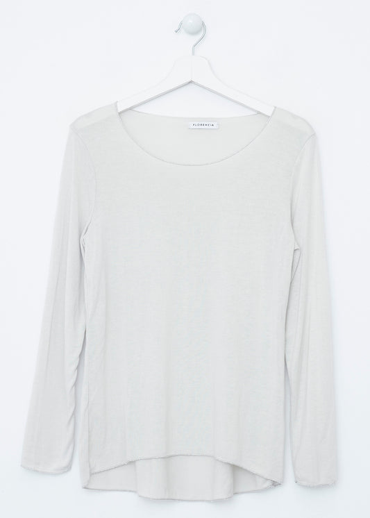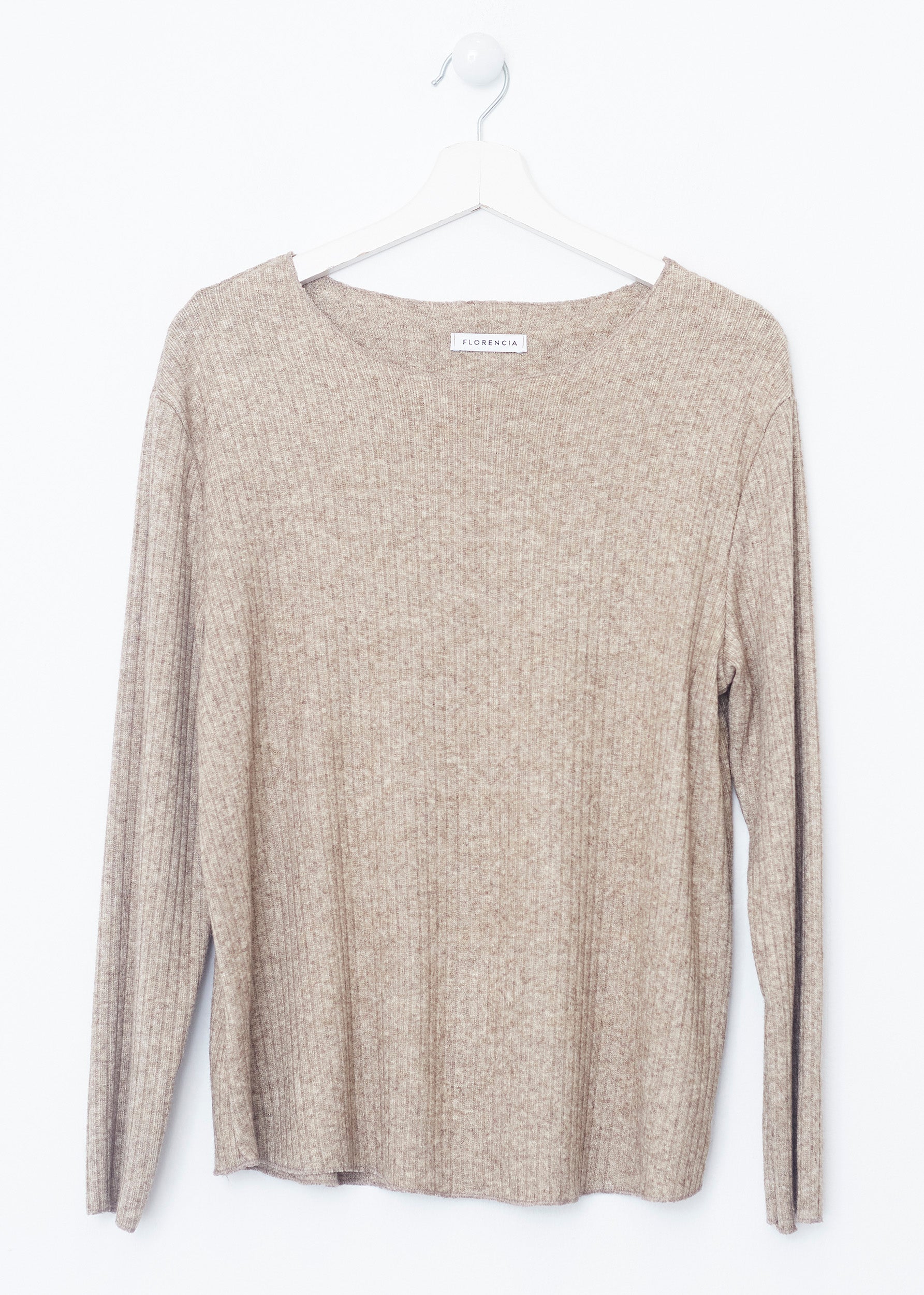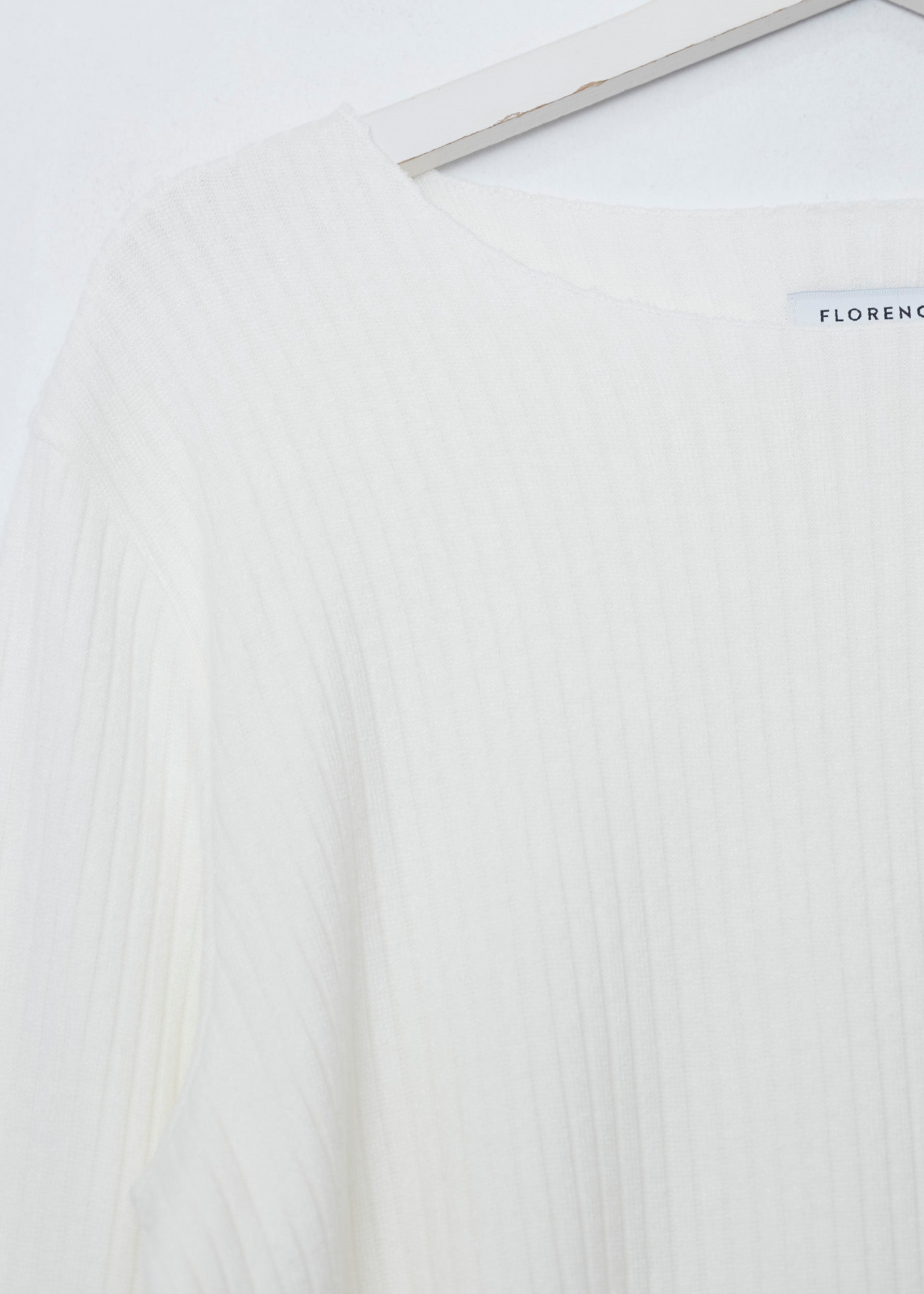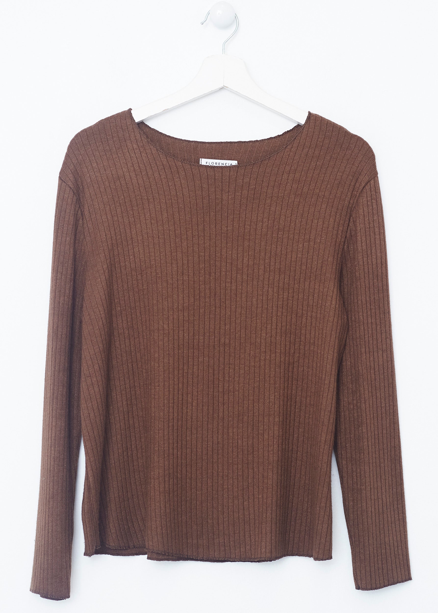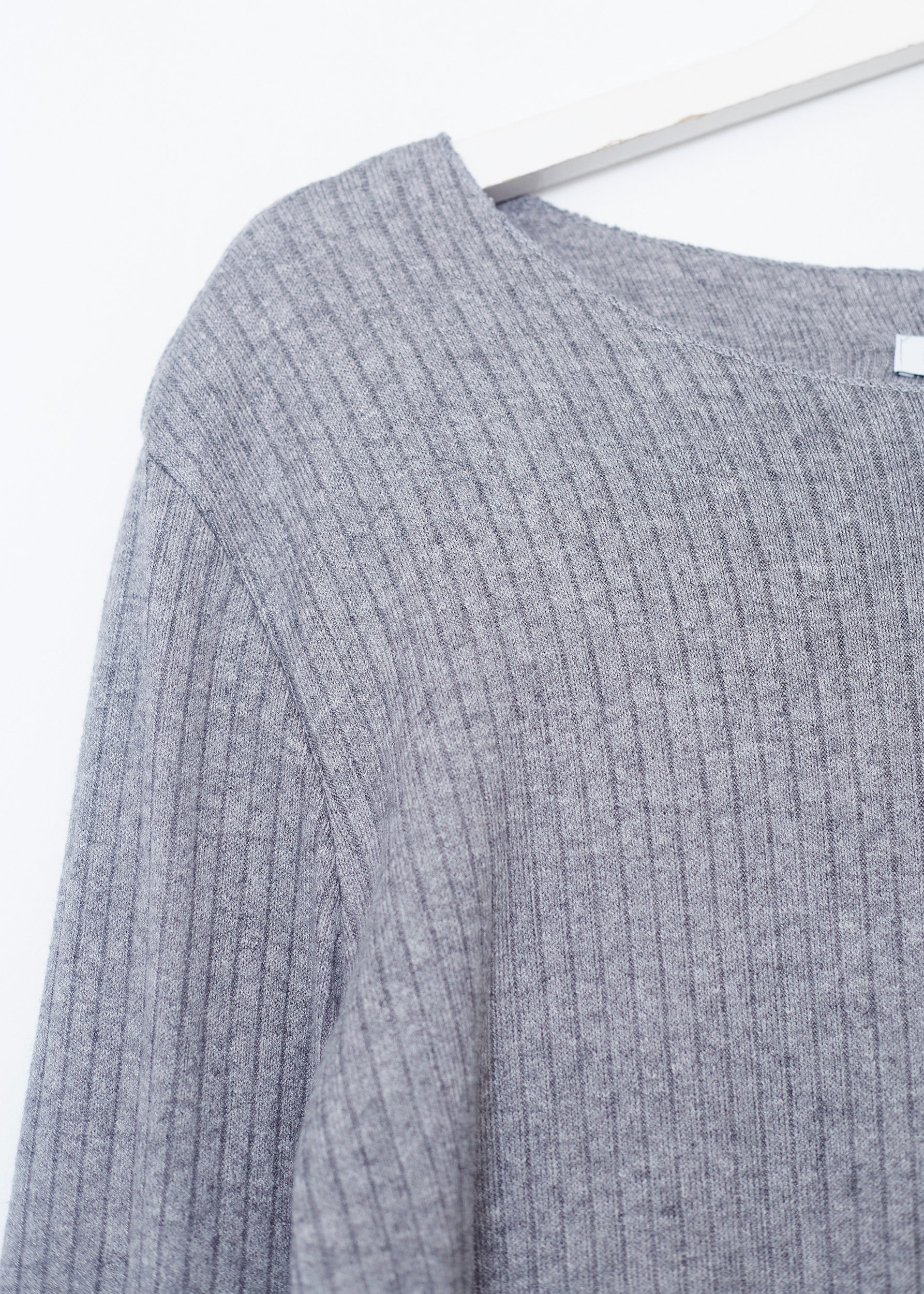 Ribbed round neck T-shirt with long sleeves. Loose fit.