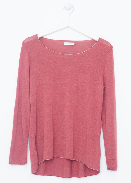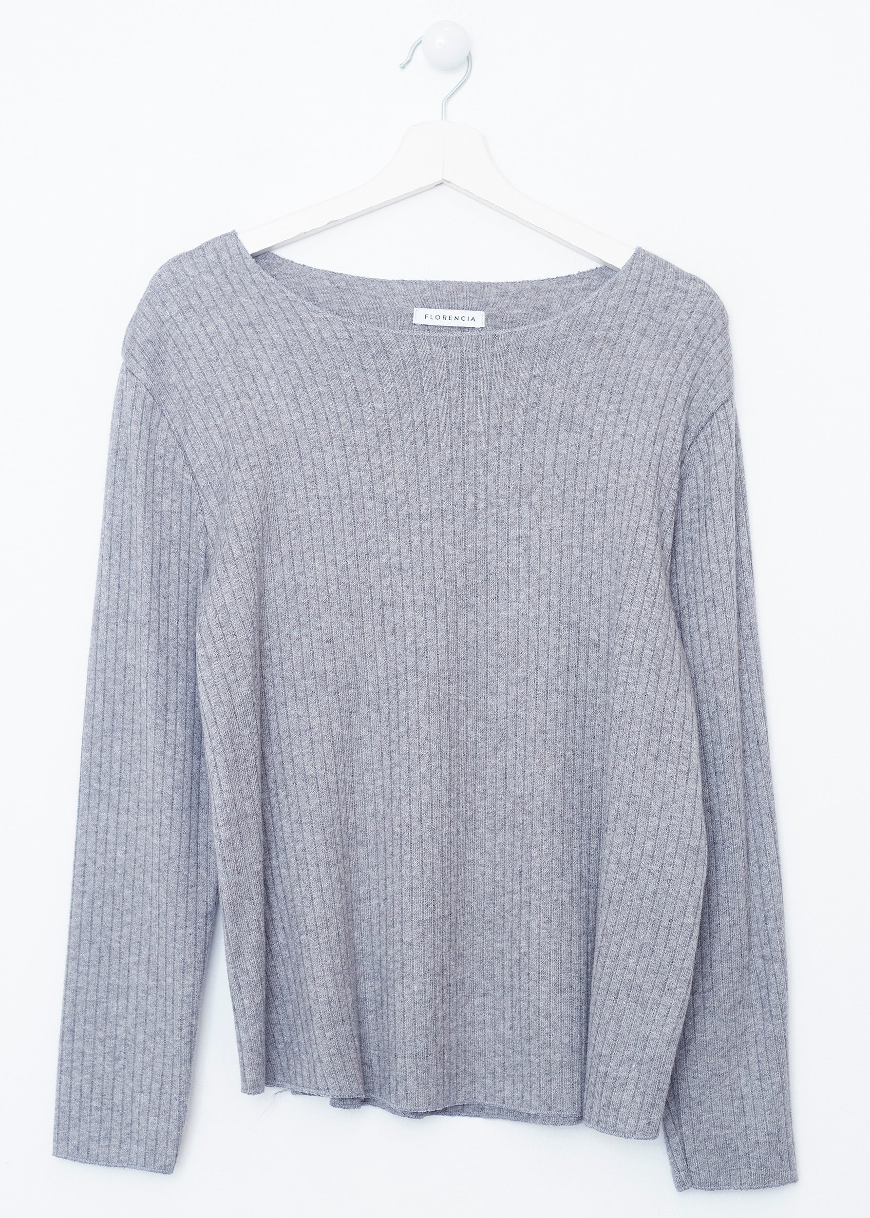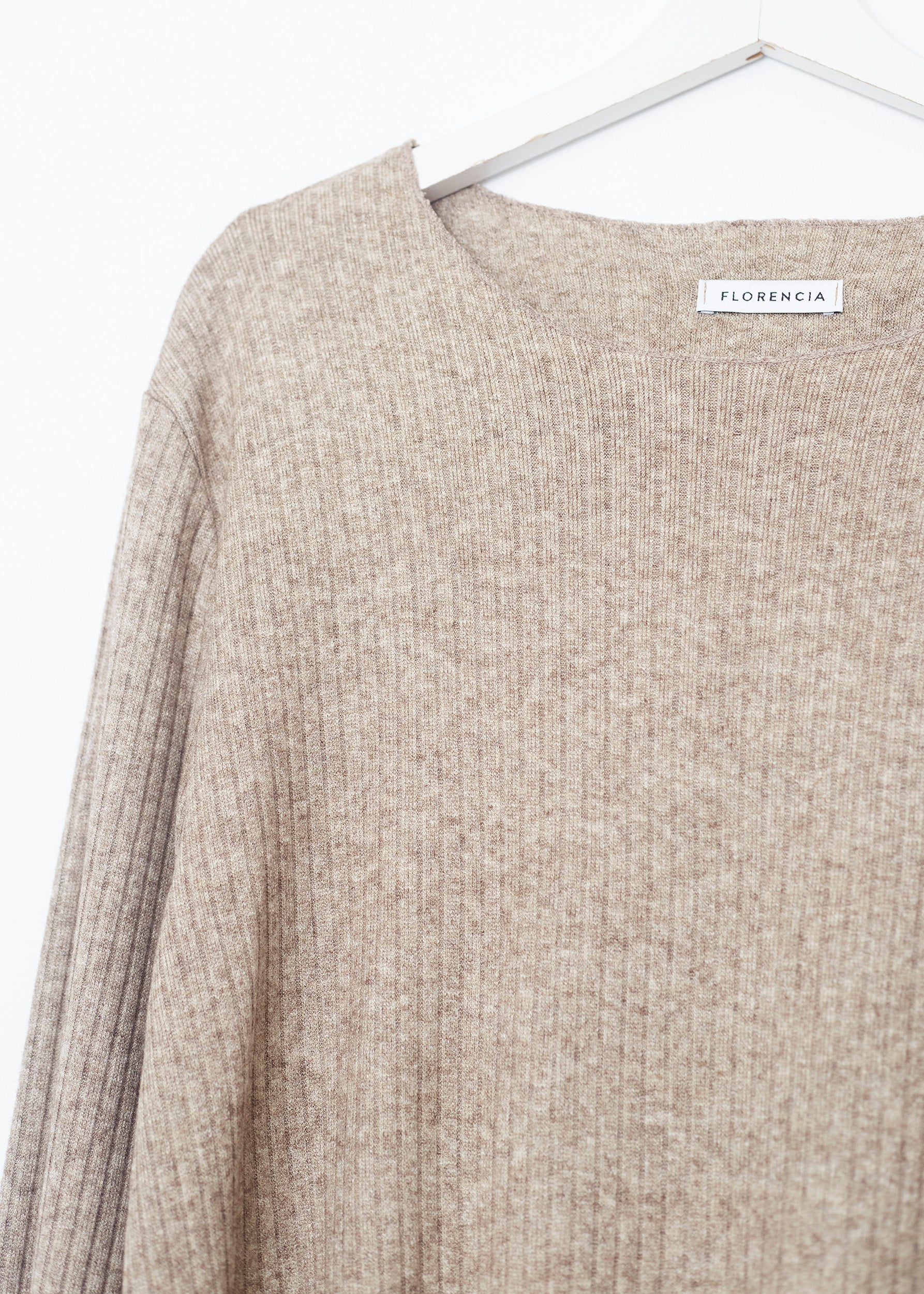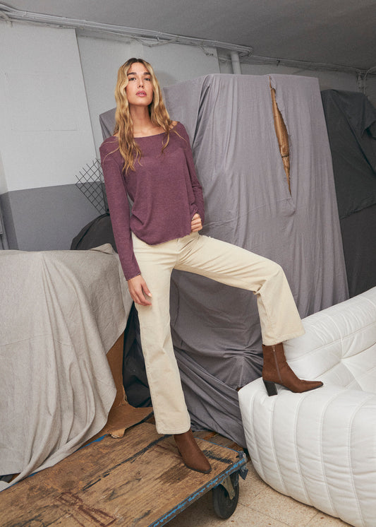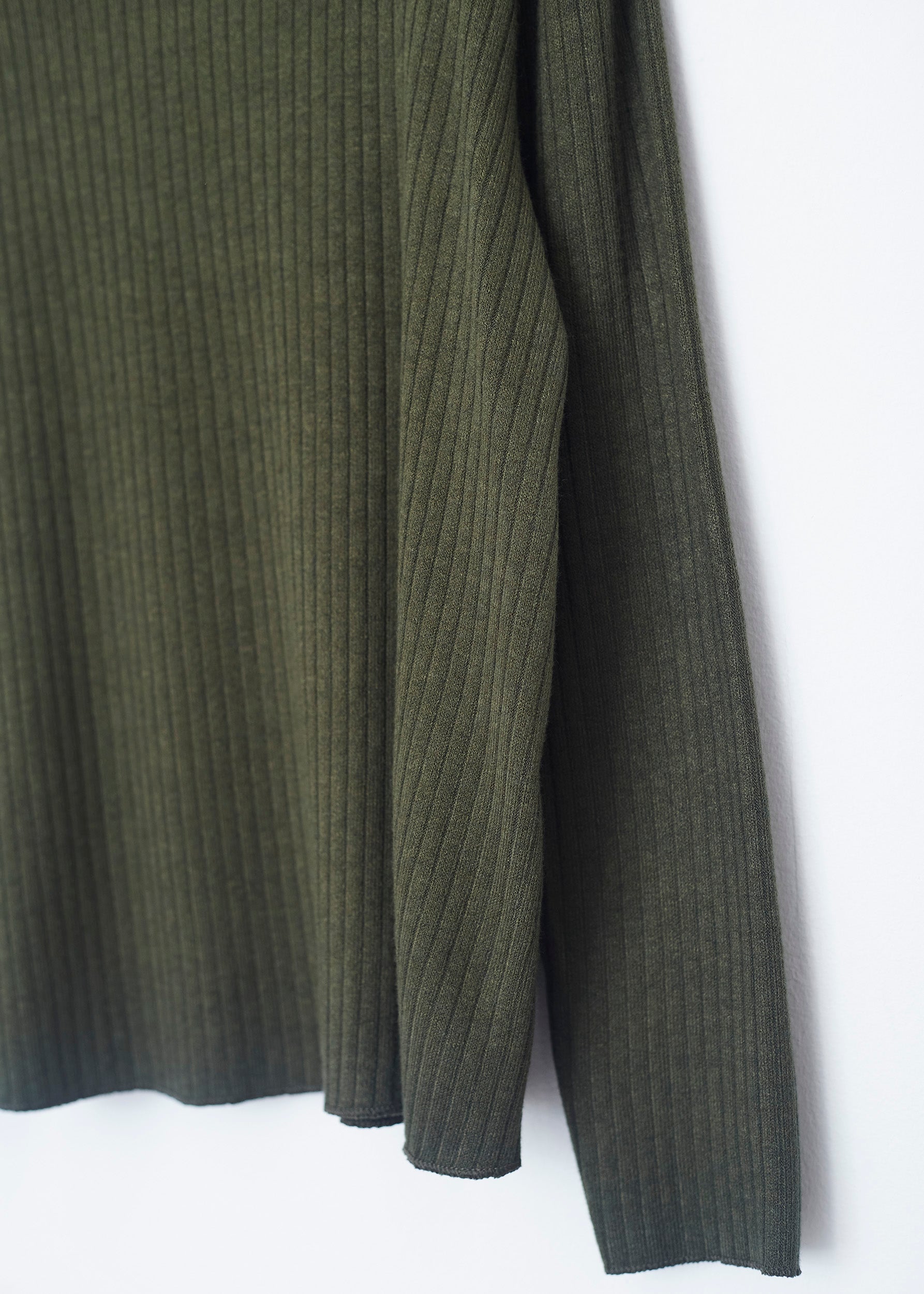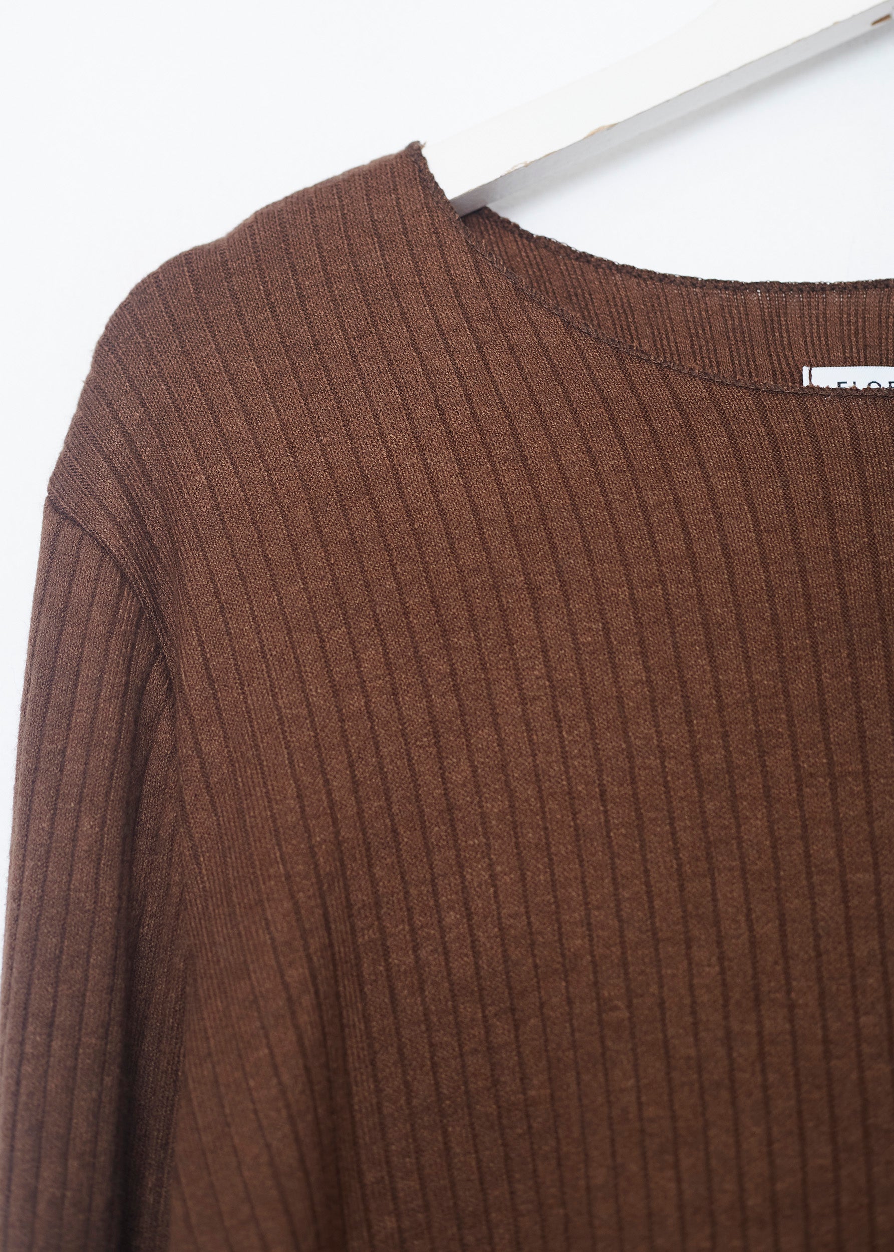 Ribbed round neck T-shirt with long sleeves. Loose fit.
