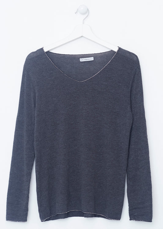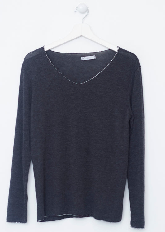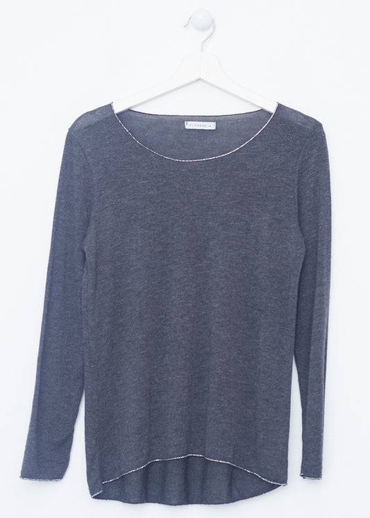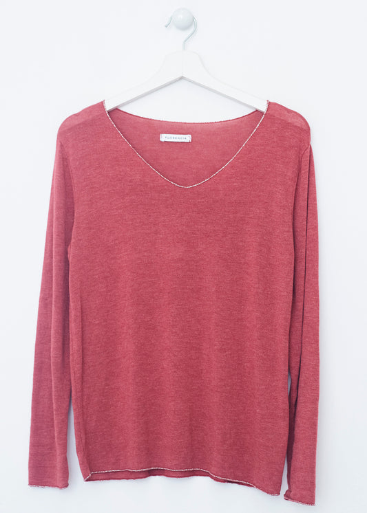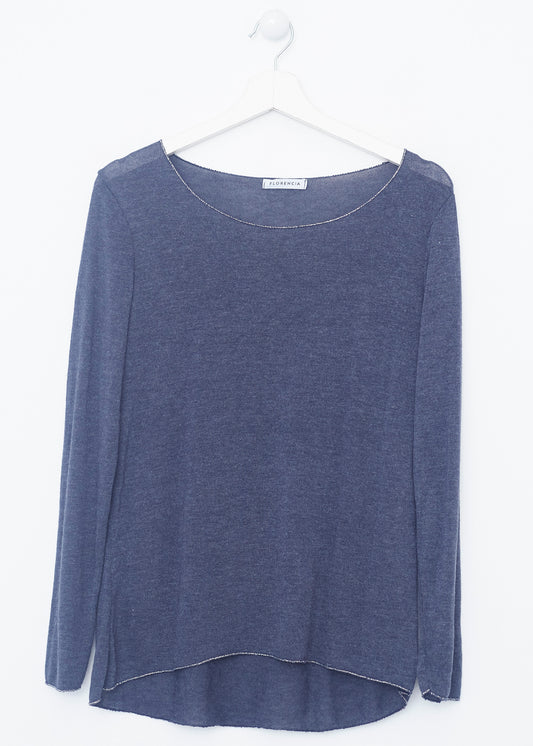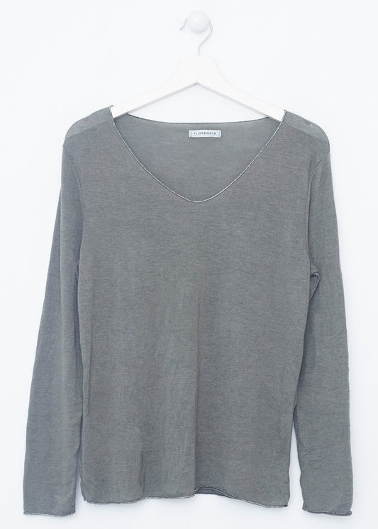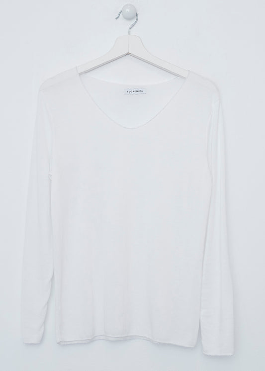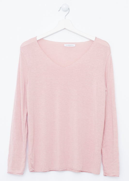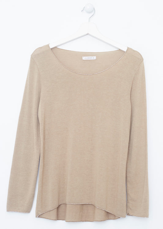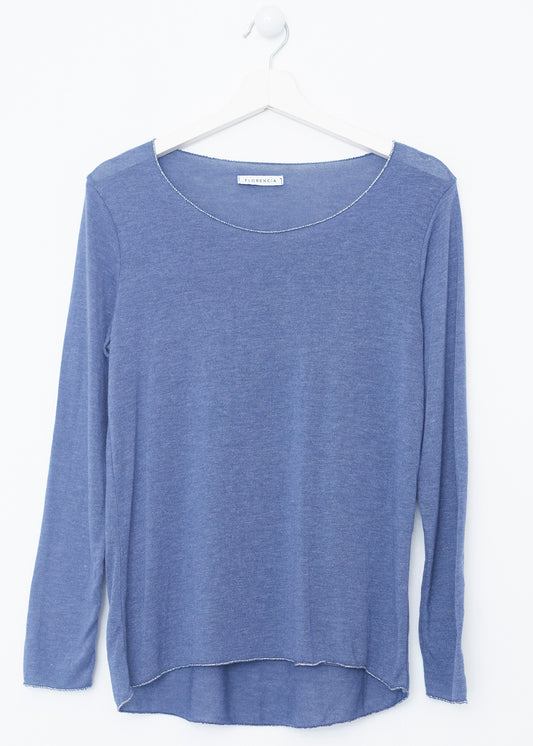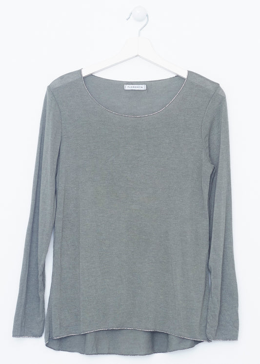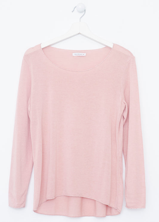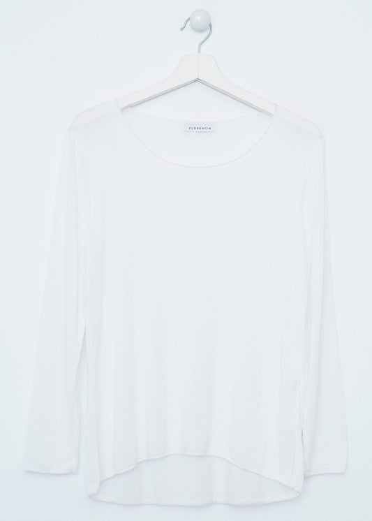 Ribbed round neck T-shirt with long sleeves. Loose fit.