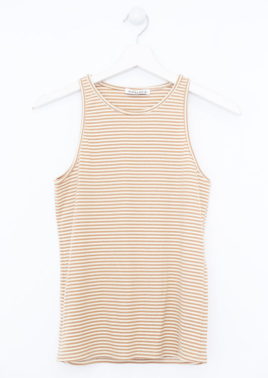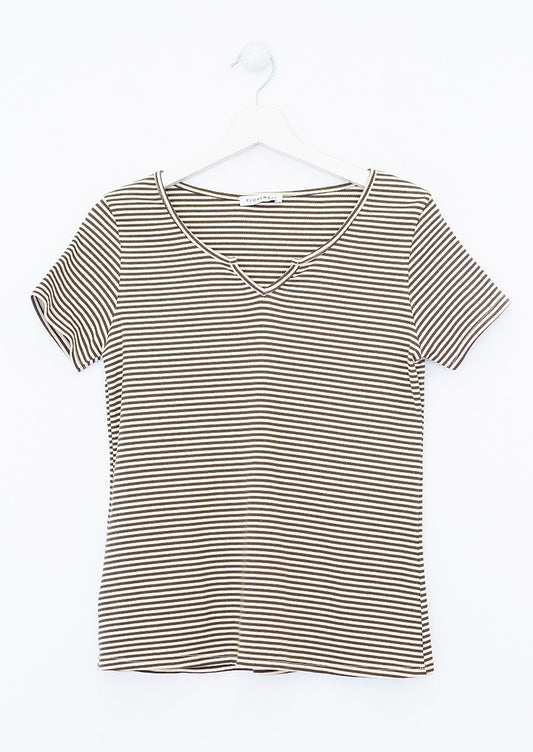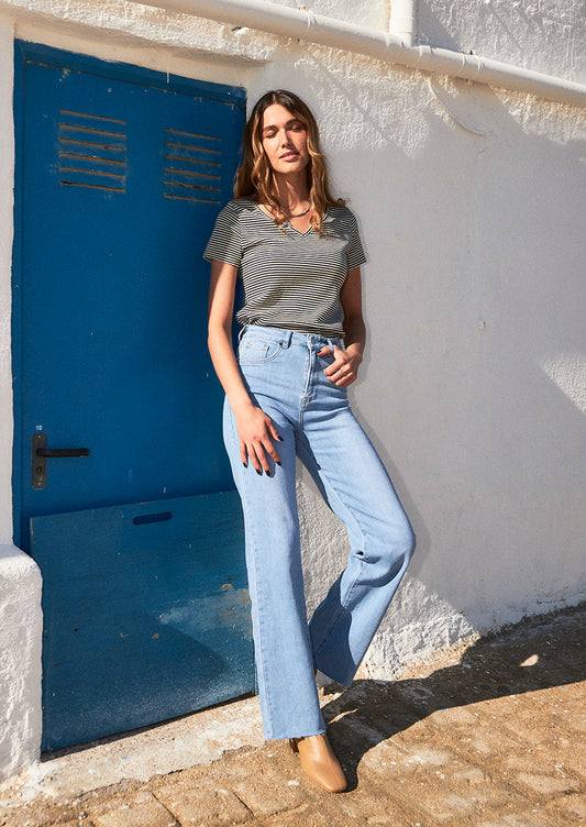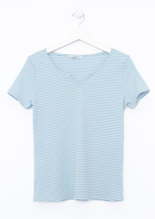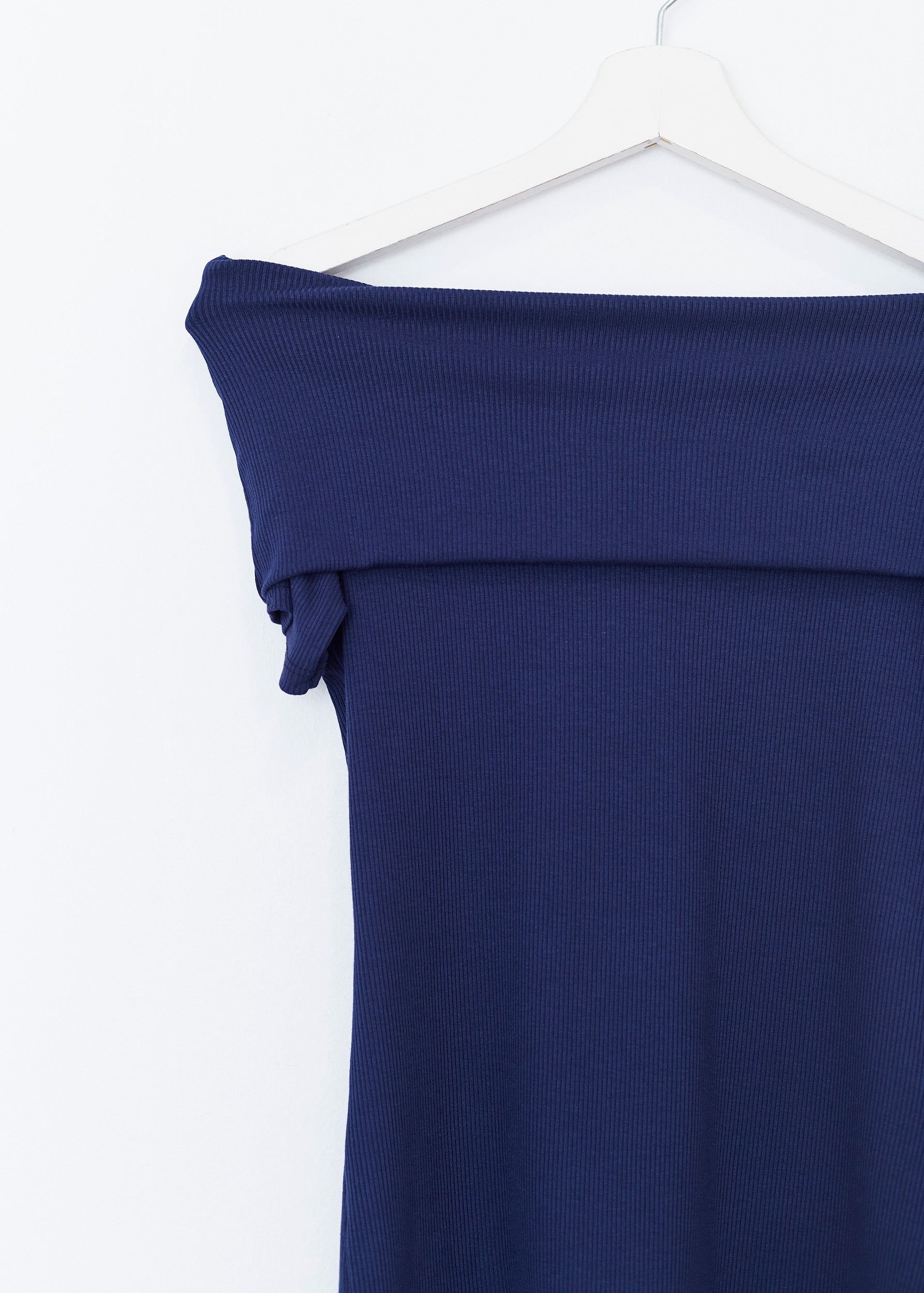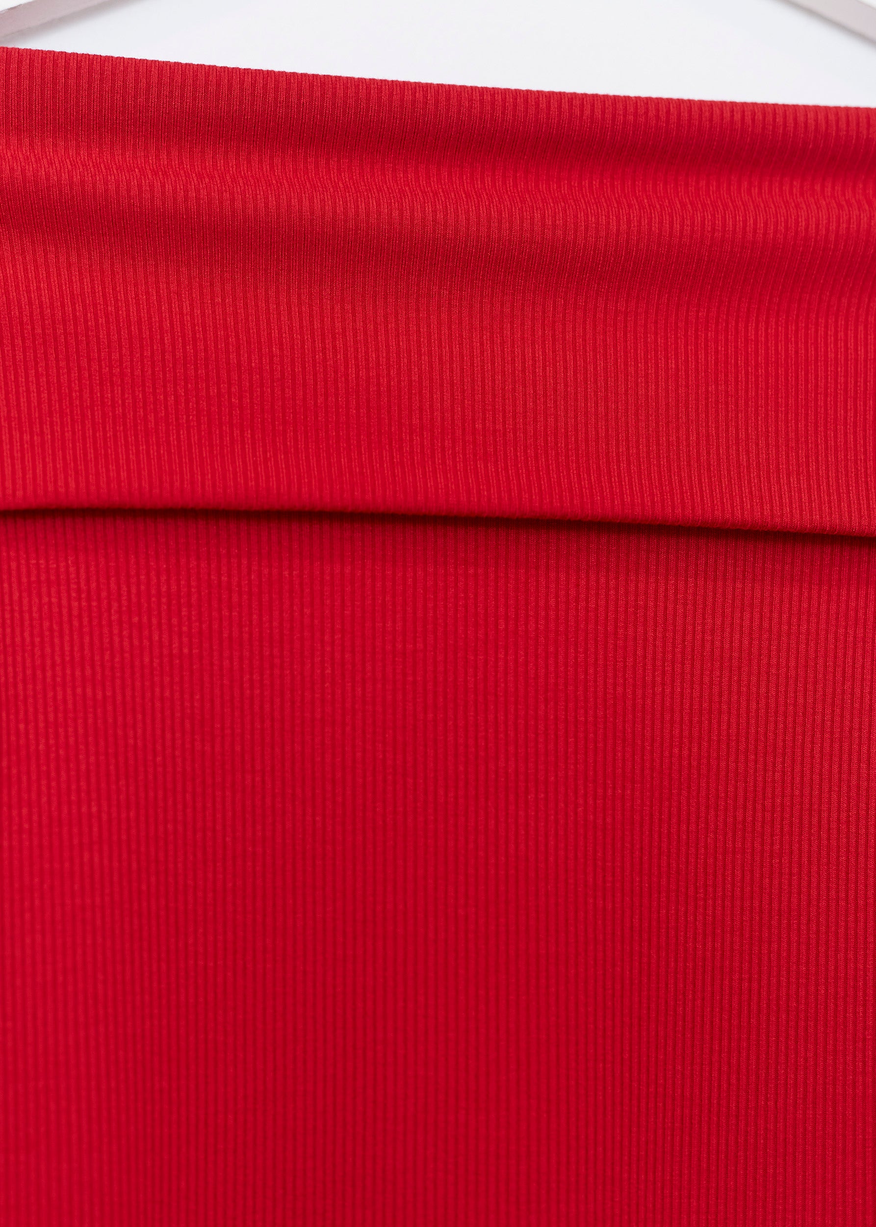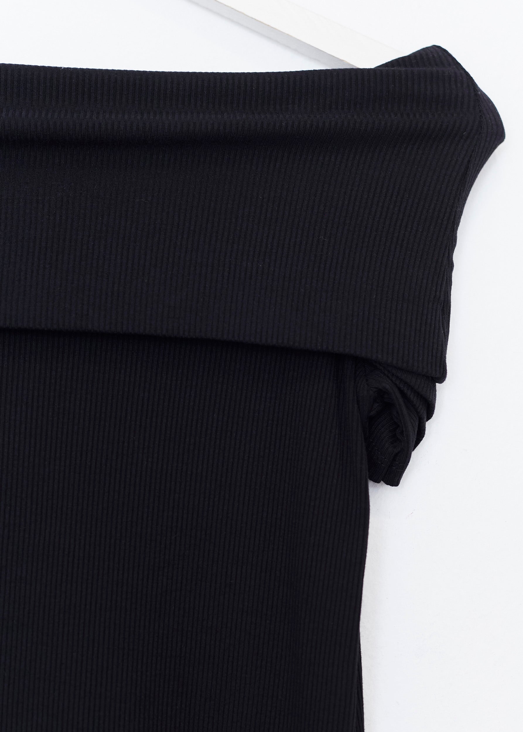 T-shirt with a straight neckline finished in a turn-up and bare shoulders. Ribbed fabric.