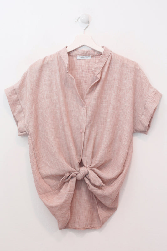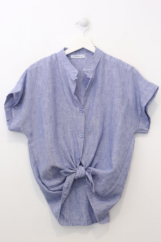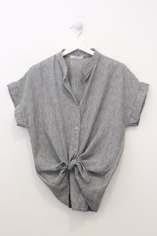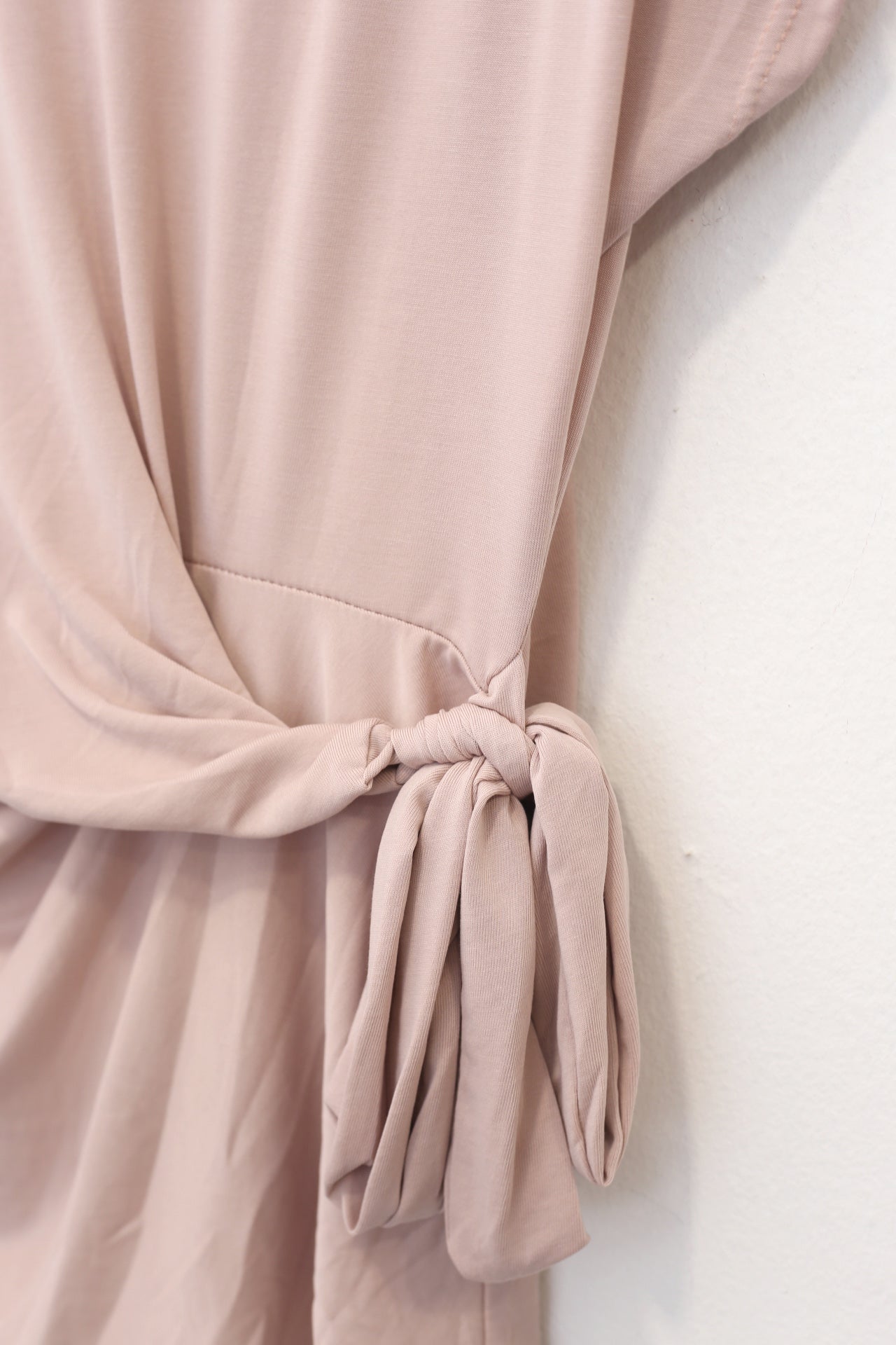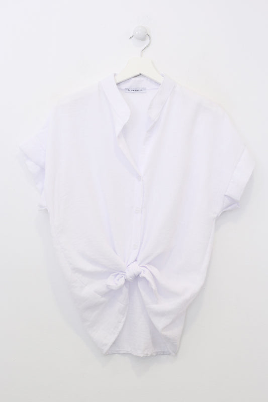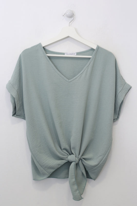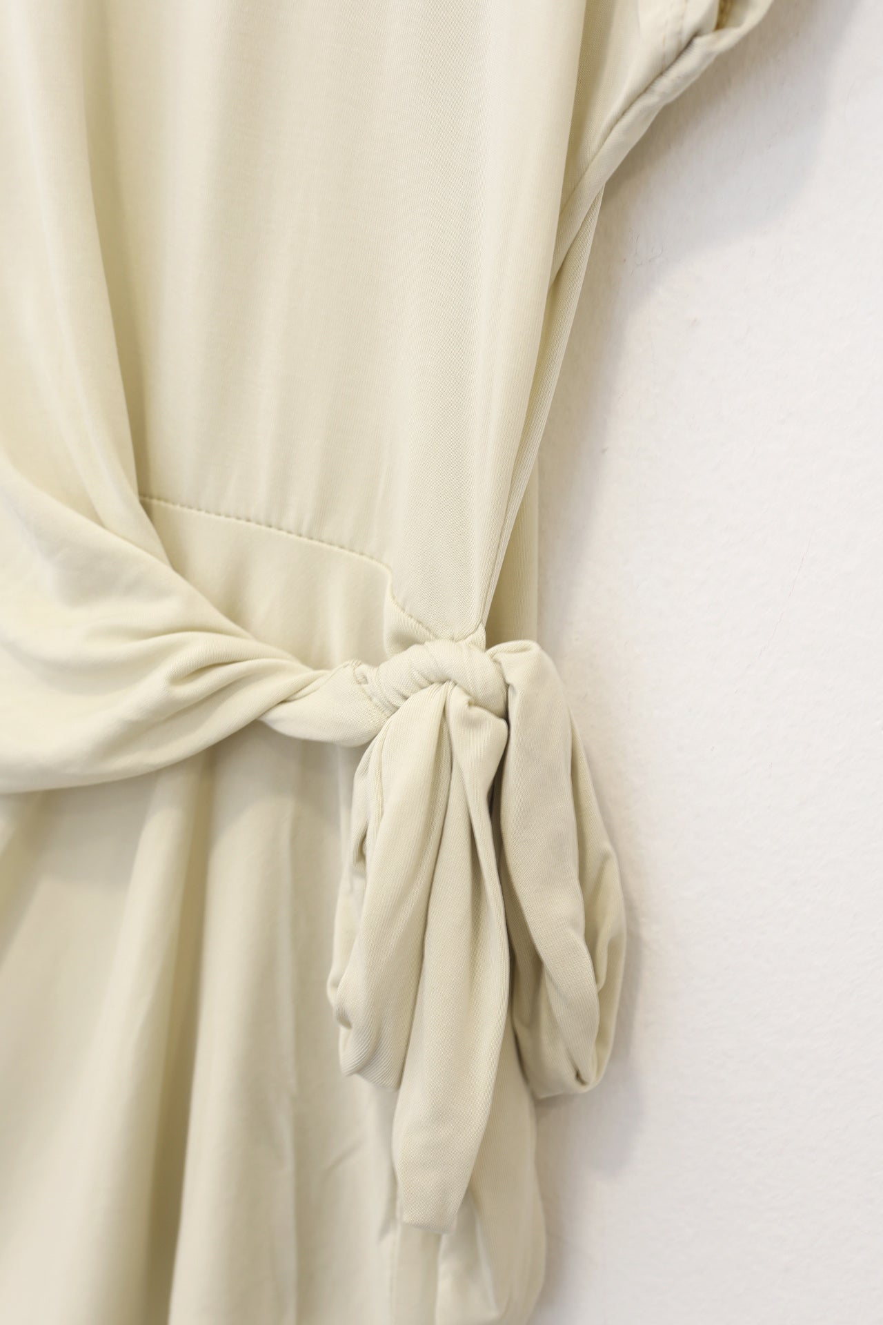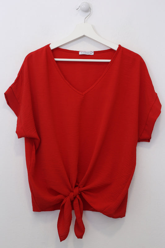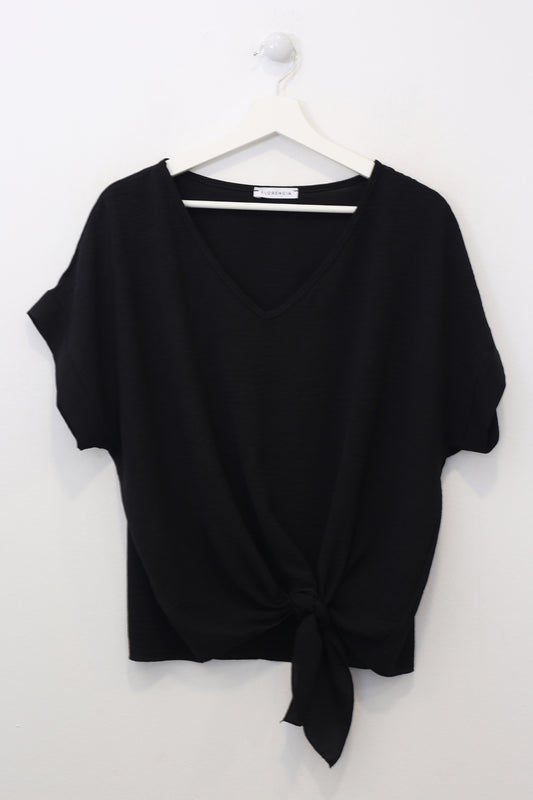 Camiseta con cuello redondo y manga corta. Detalle de nudo en el lateral. Corte amplio y tejido elástico.