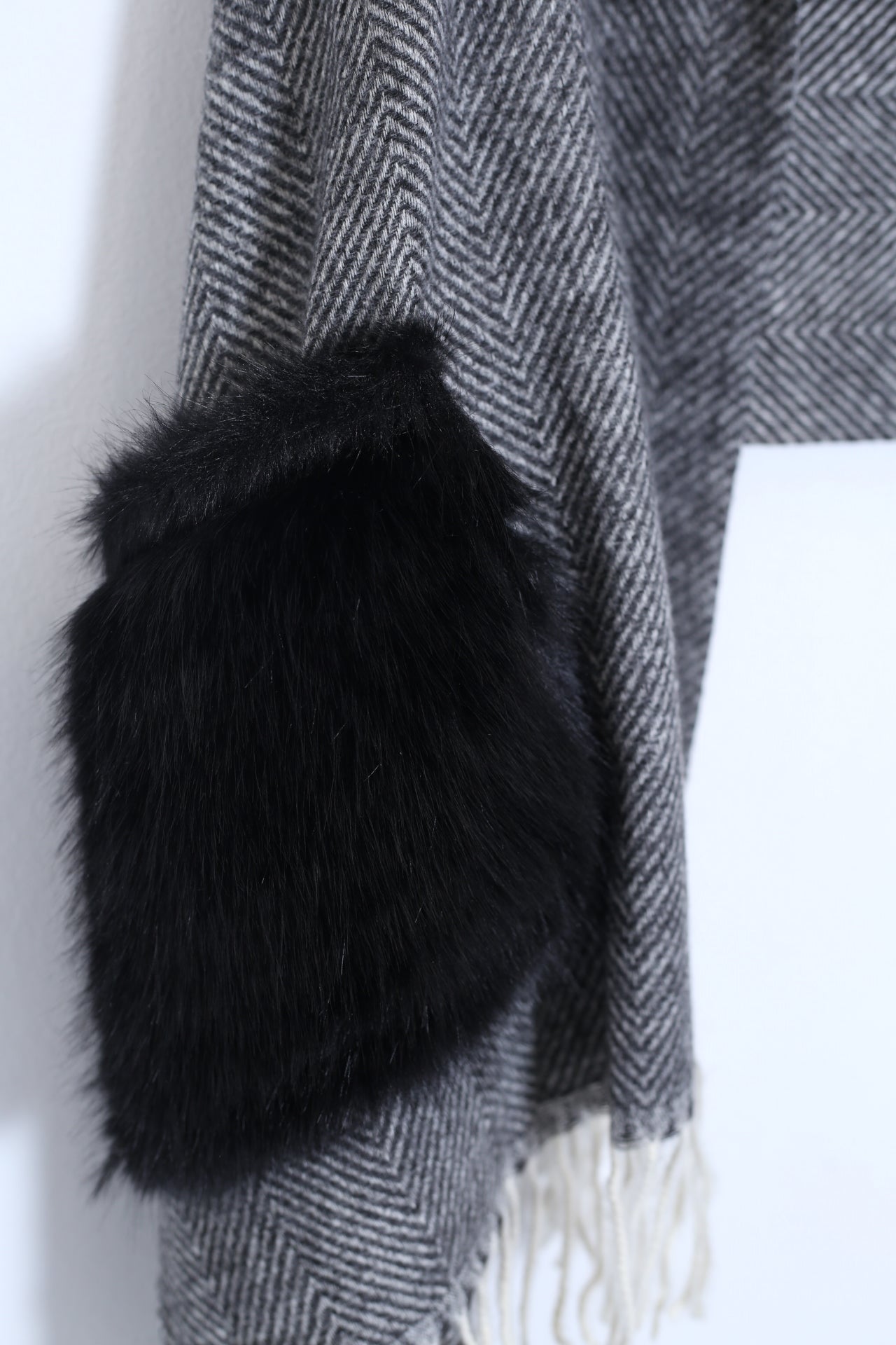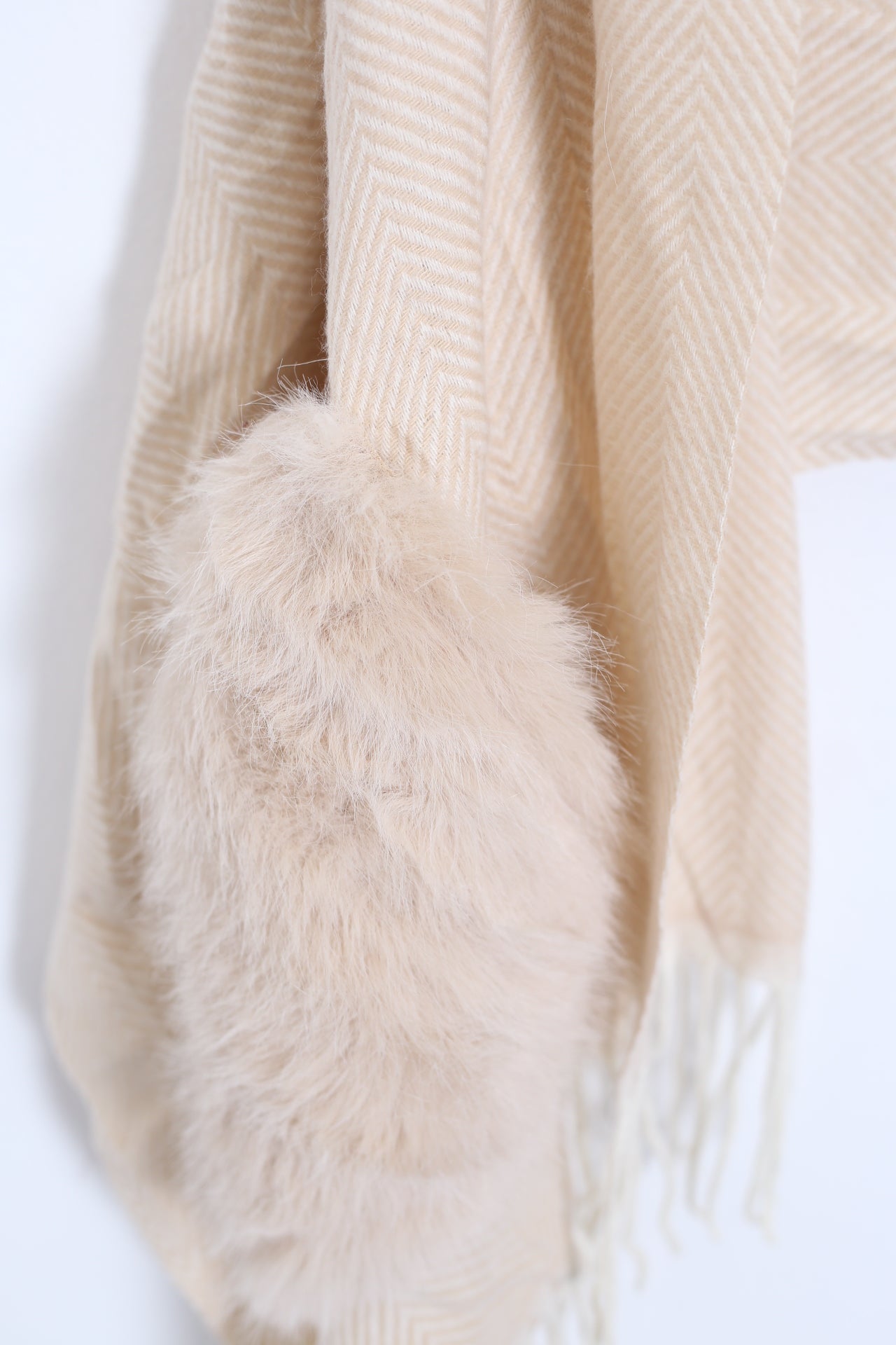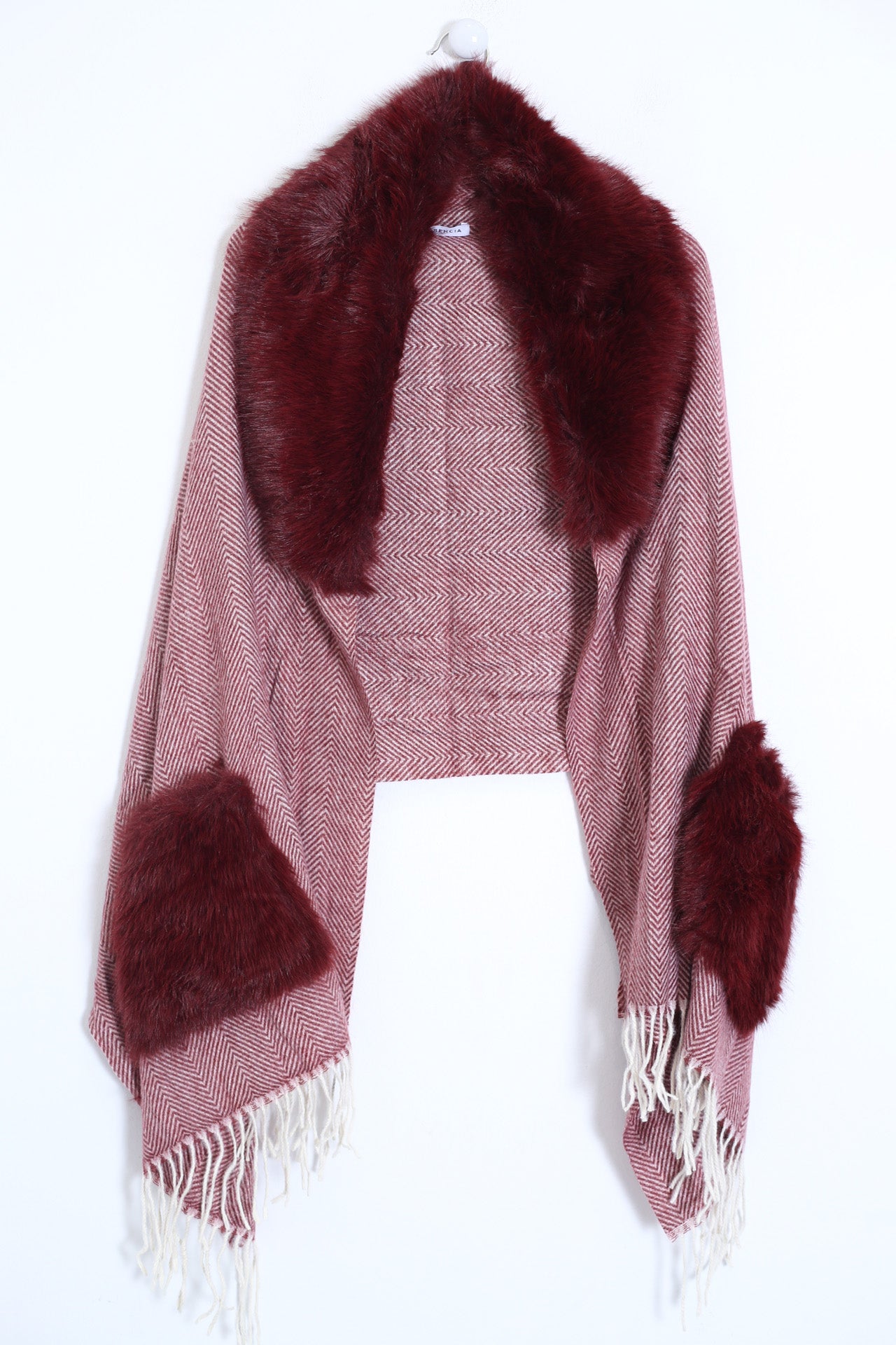 Chal con cuello solapa efecto pelo. Acabados con flecos. Tejido espiga.
