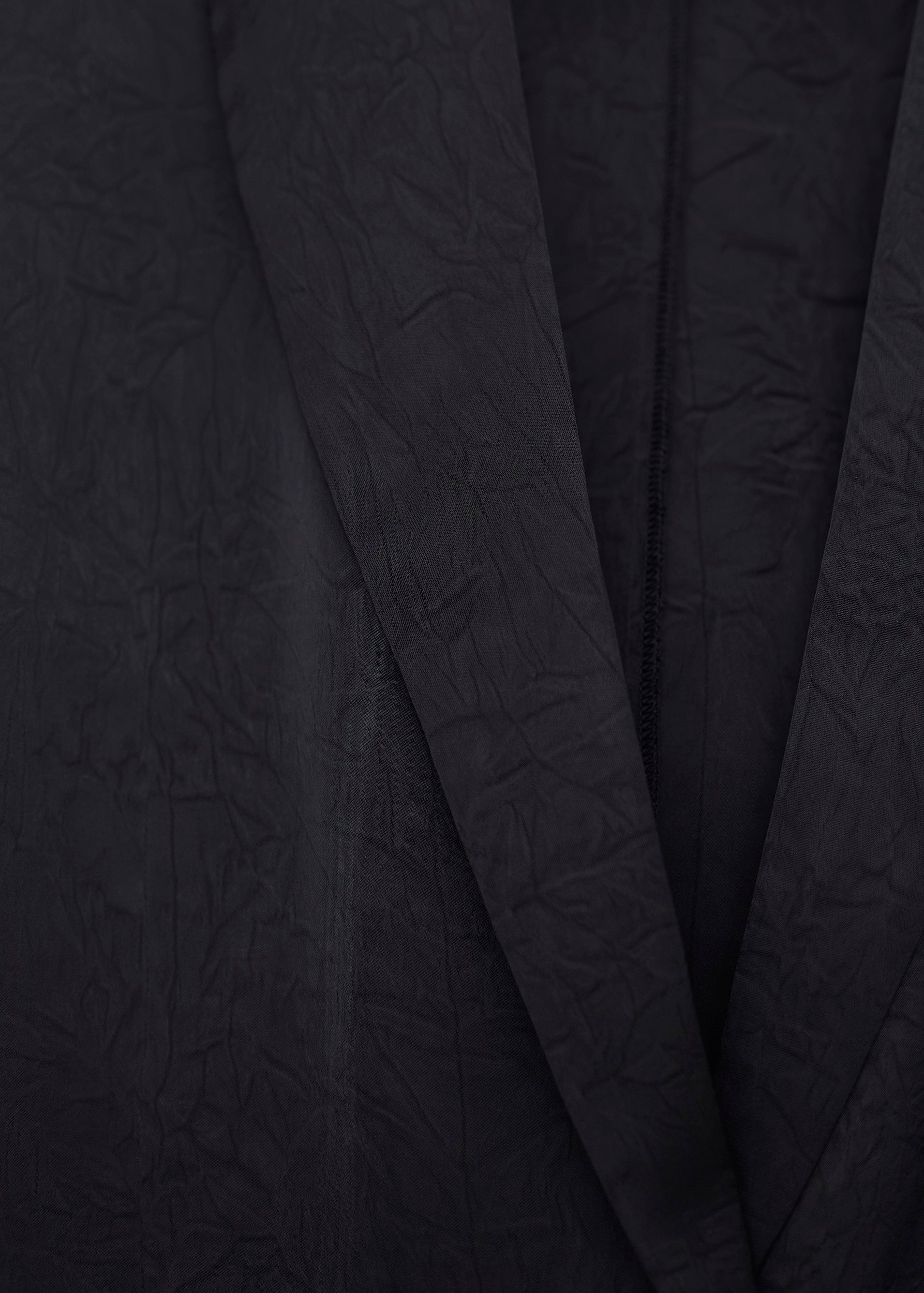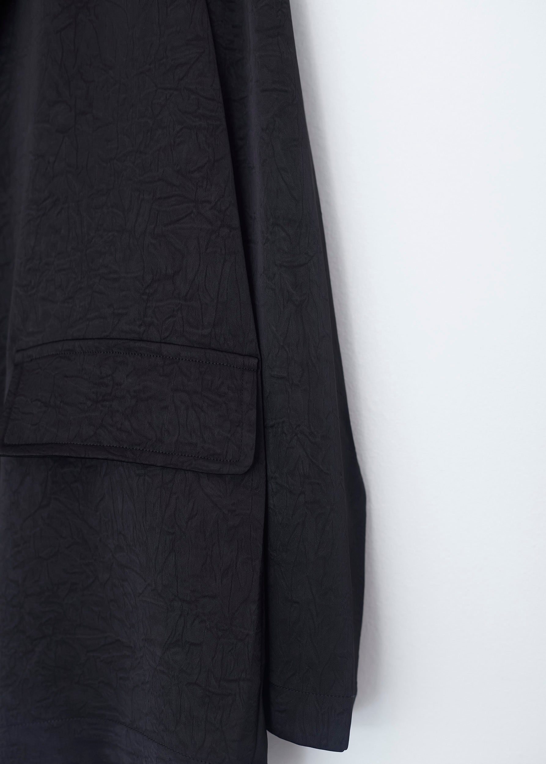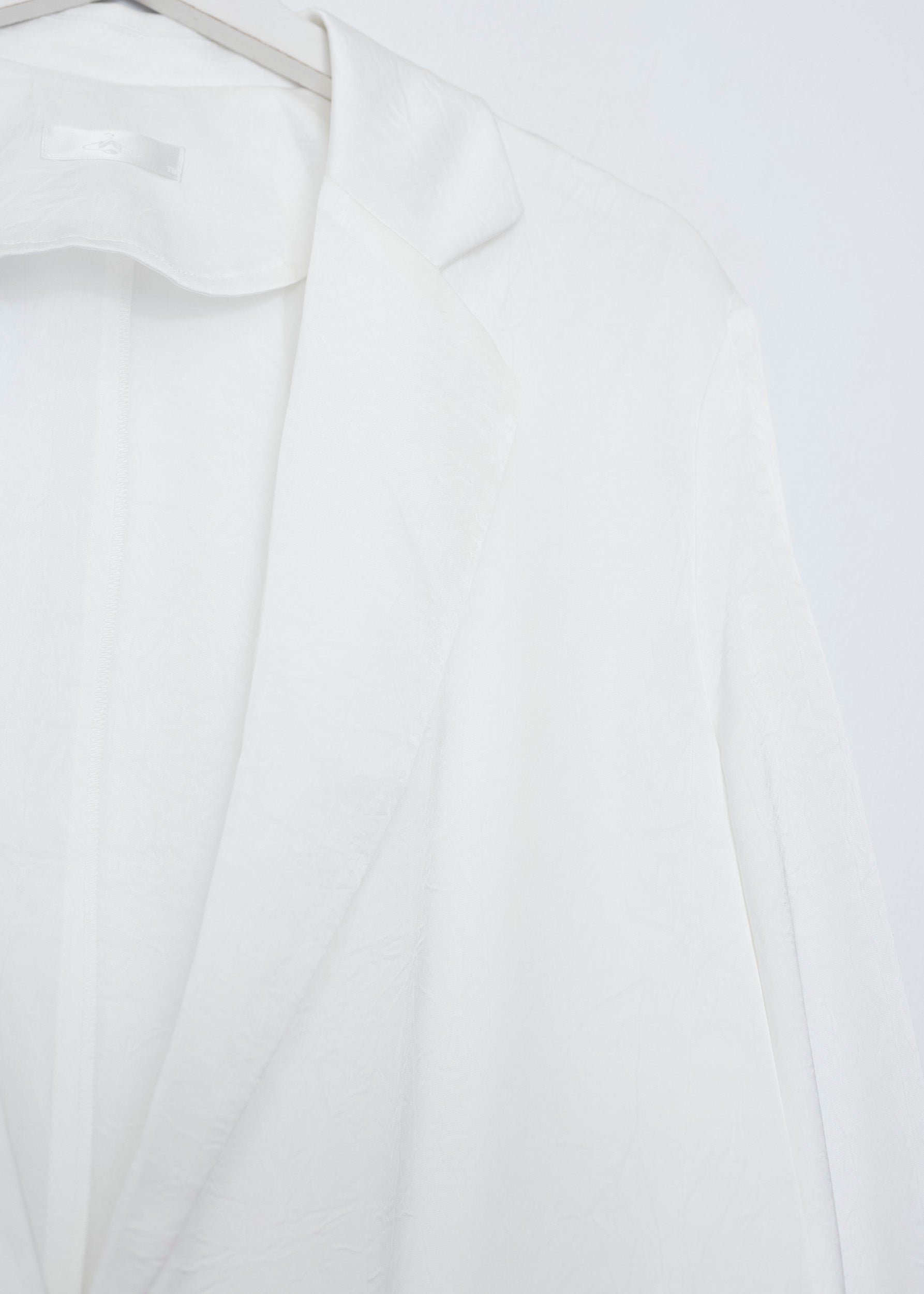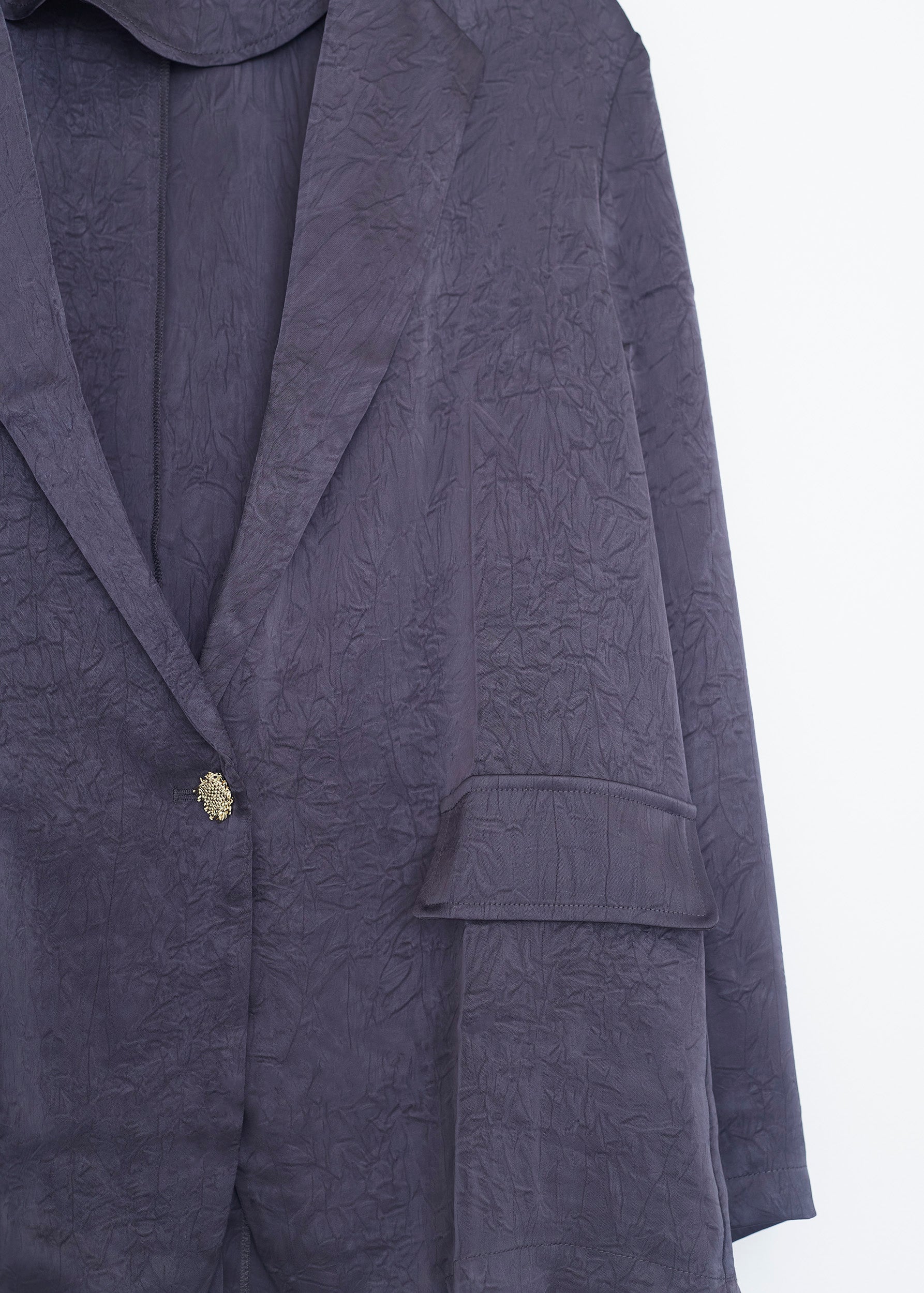 Blazer de raso de cuello solapa y manga larga. Falsos bolsillos delanteros con solapa. Cierre frontal con botón dorado. Corte recto.