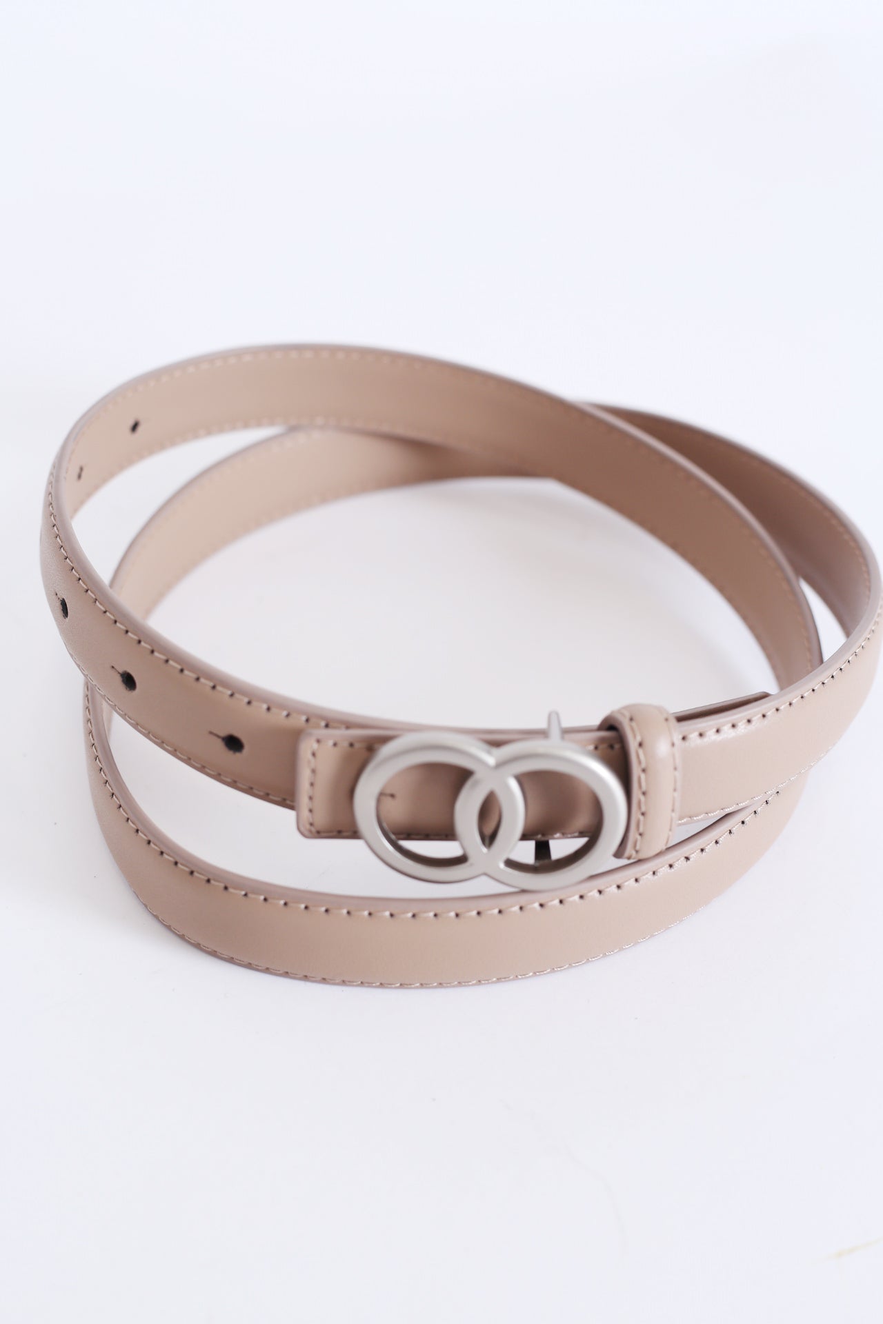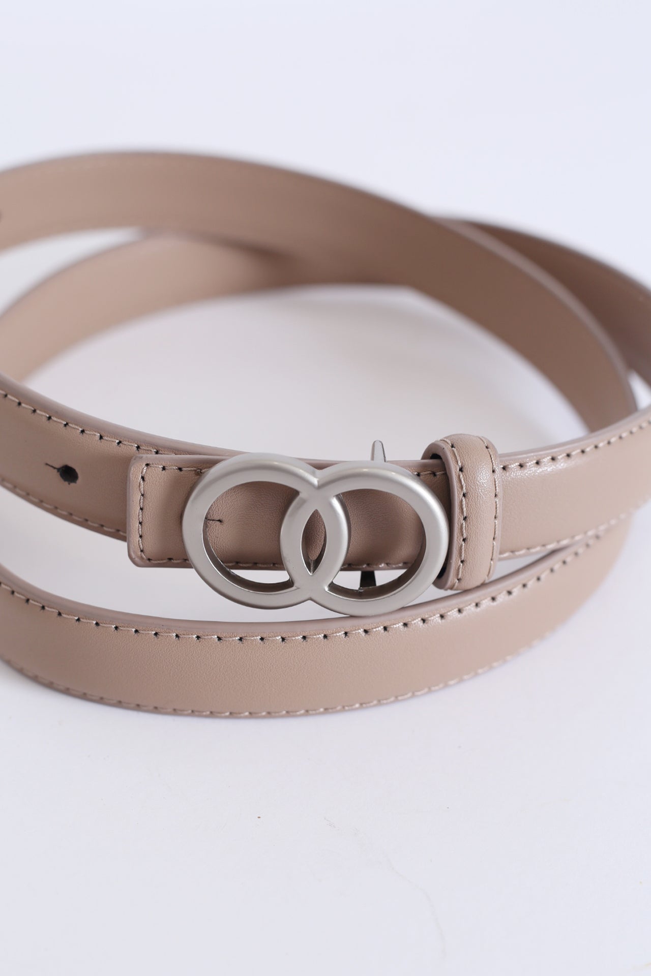 Cinturón fino liso. Hebilla metálica de doble círculo.