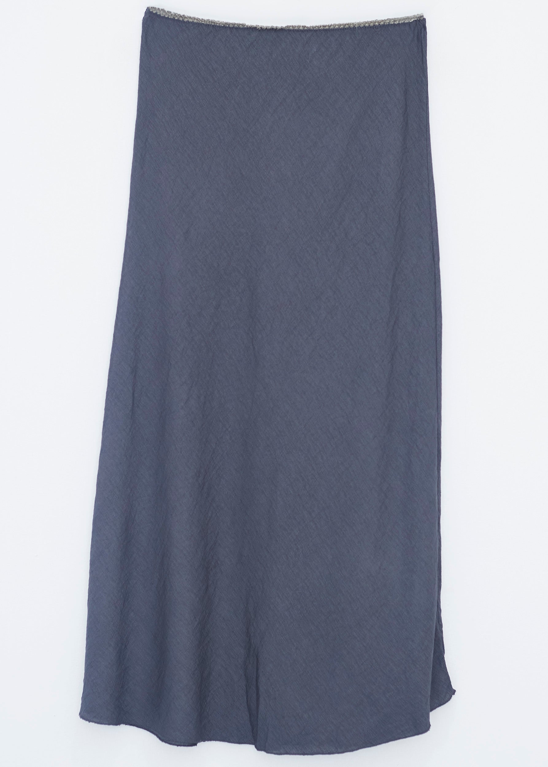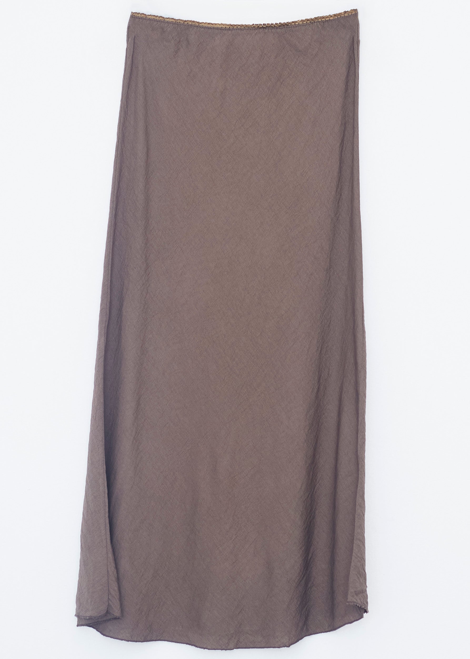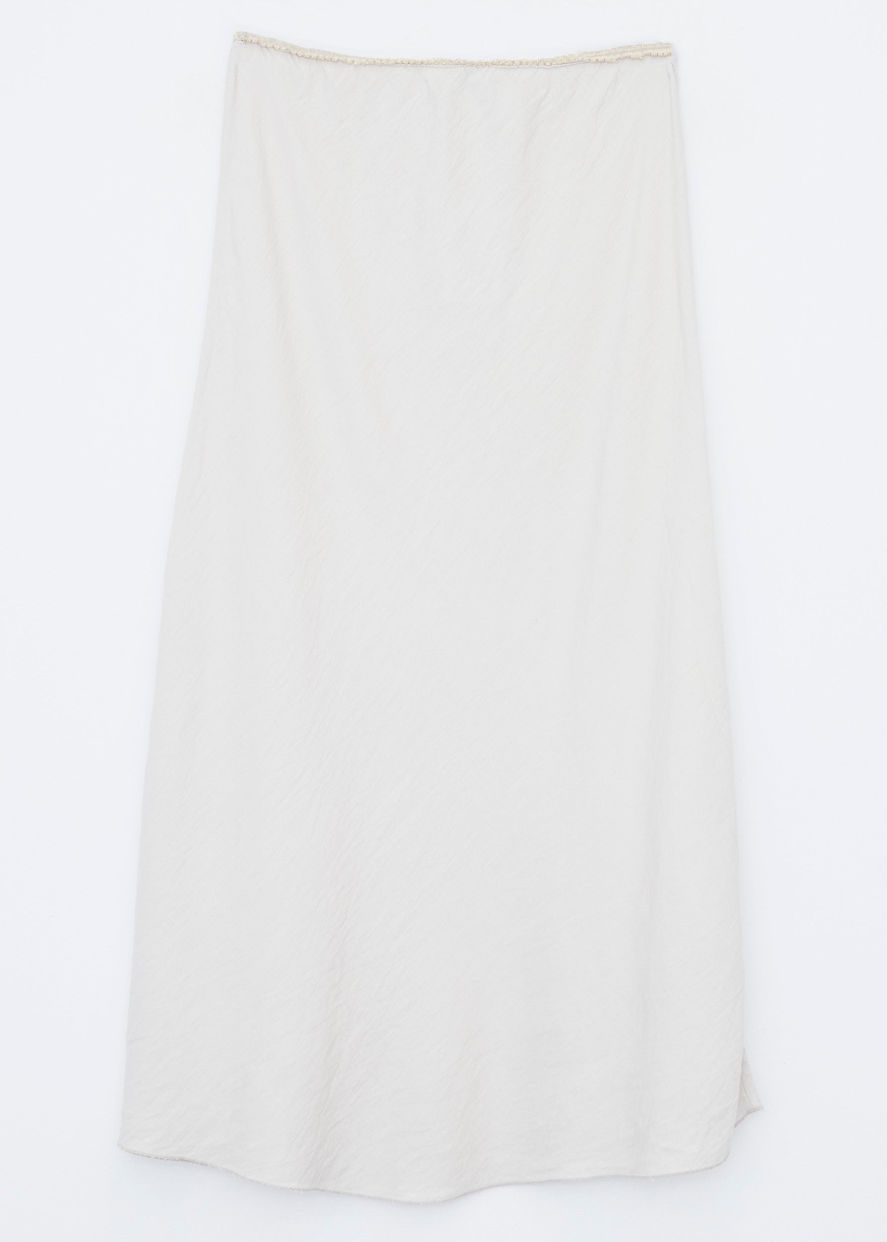 Falda larga fluida. Cintura elástica. Detalle de tejido con textura.