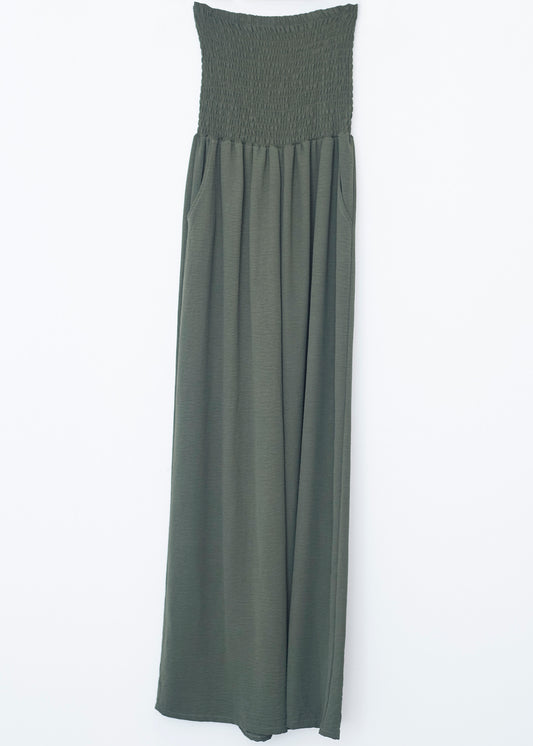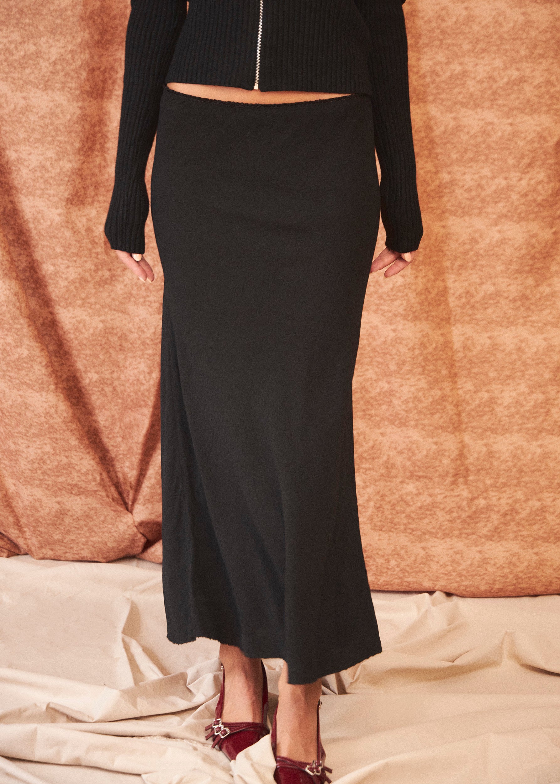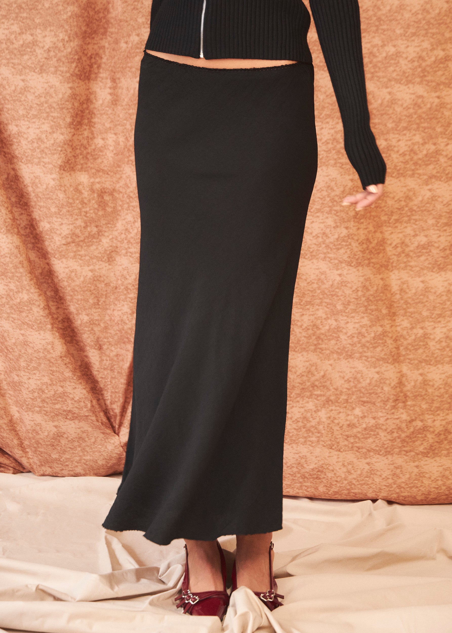 Falda larga fluida. Cintura elástica. Detalle de tejido con textura.