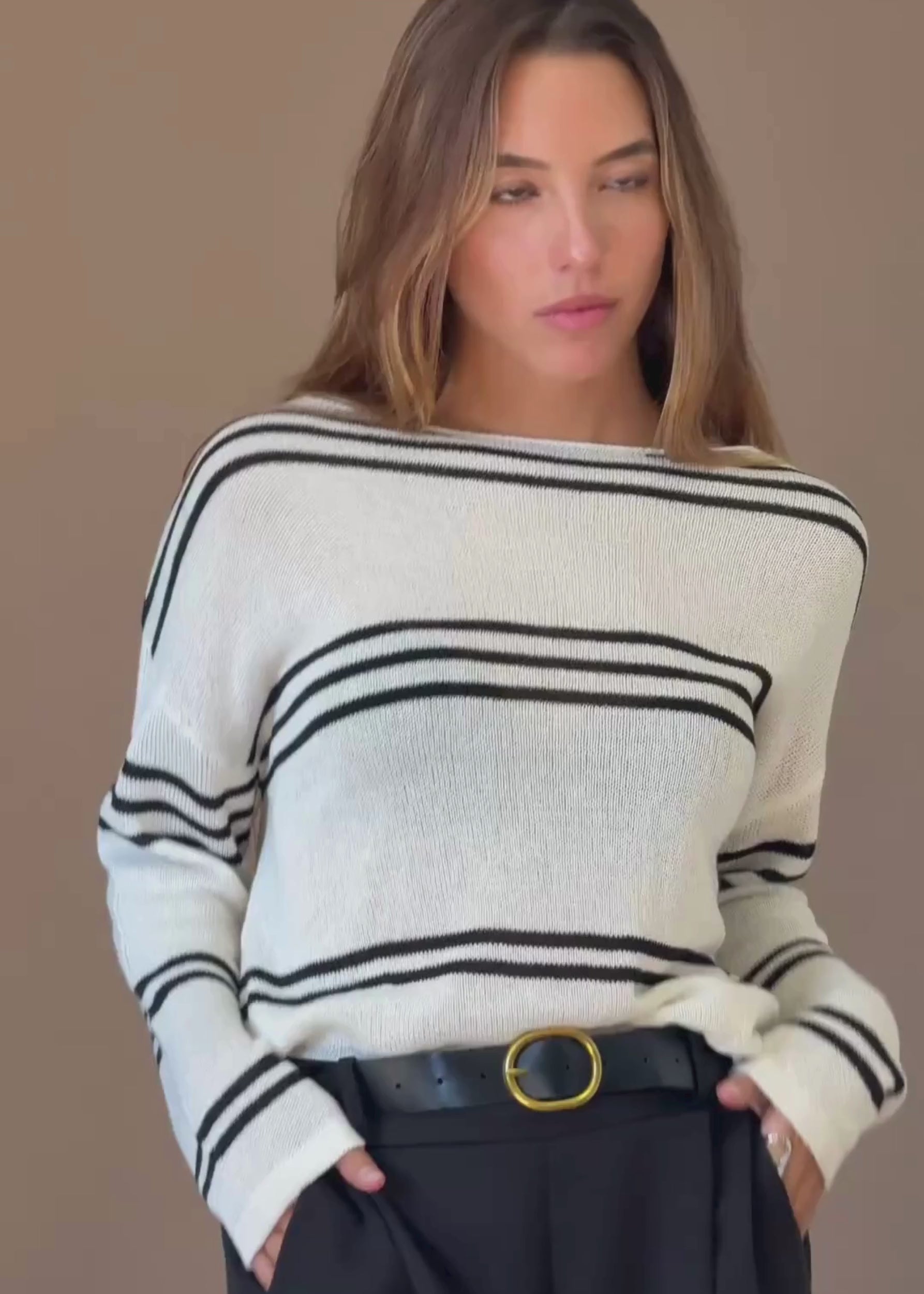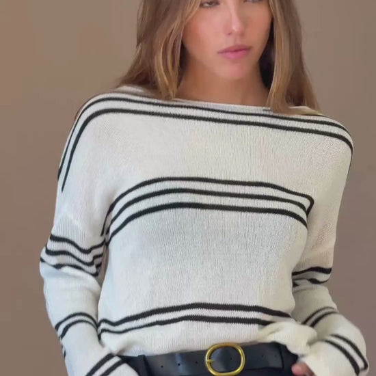 Jersey de punto y manga larga con motivo de rayas. Cuello a contraste. Corte amplio.