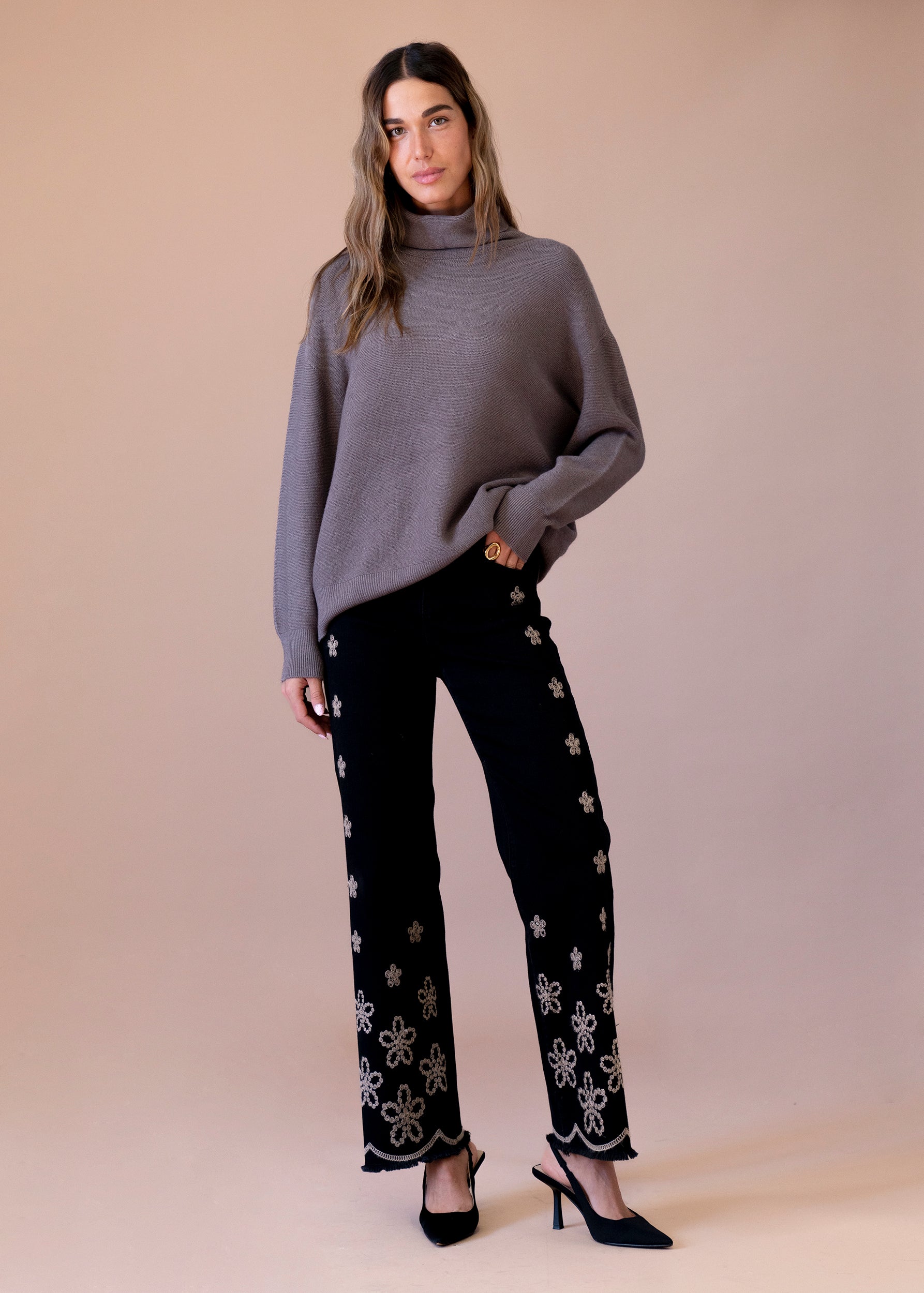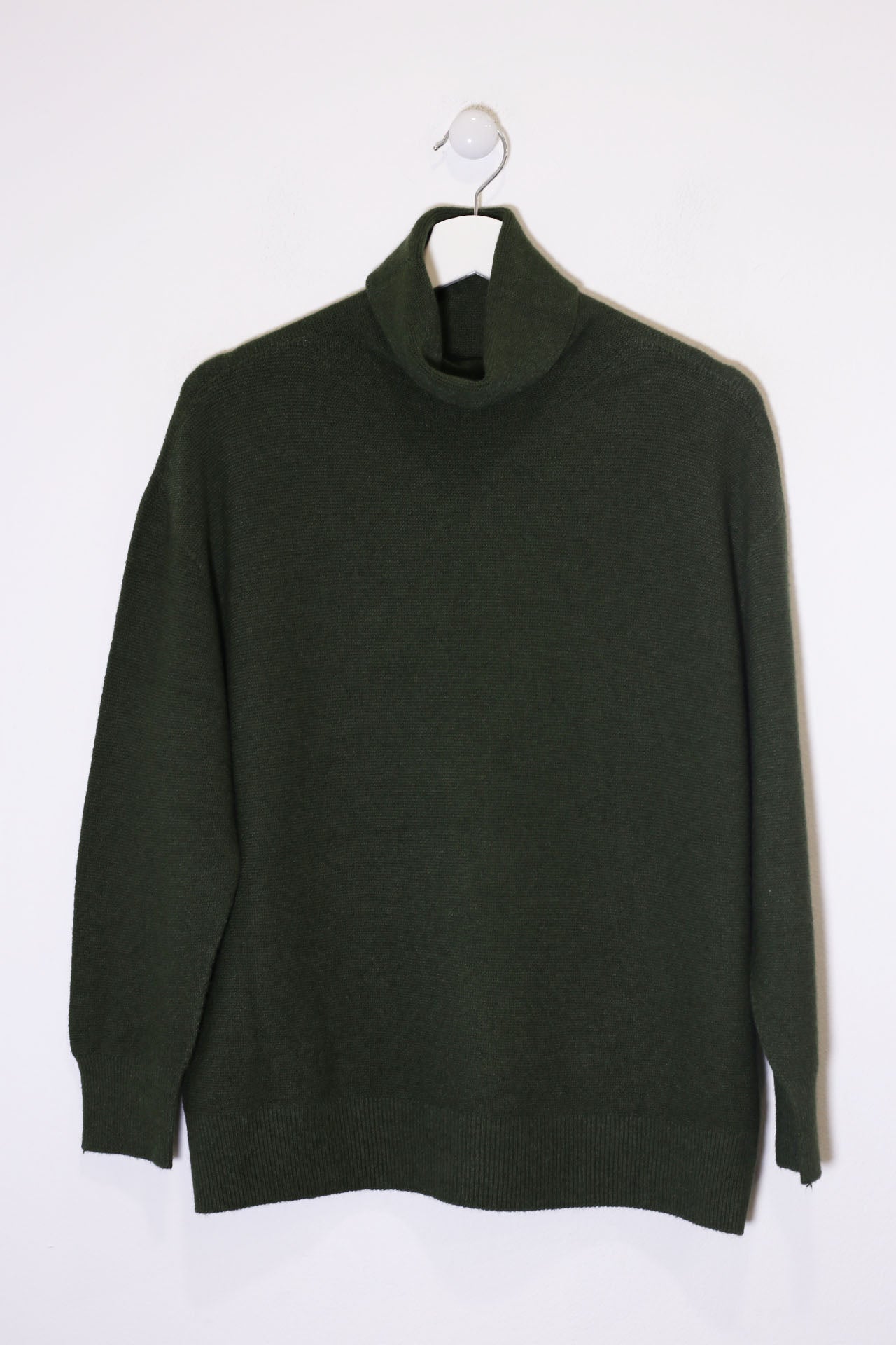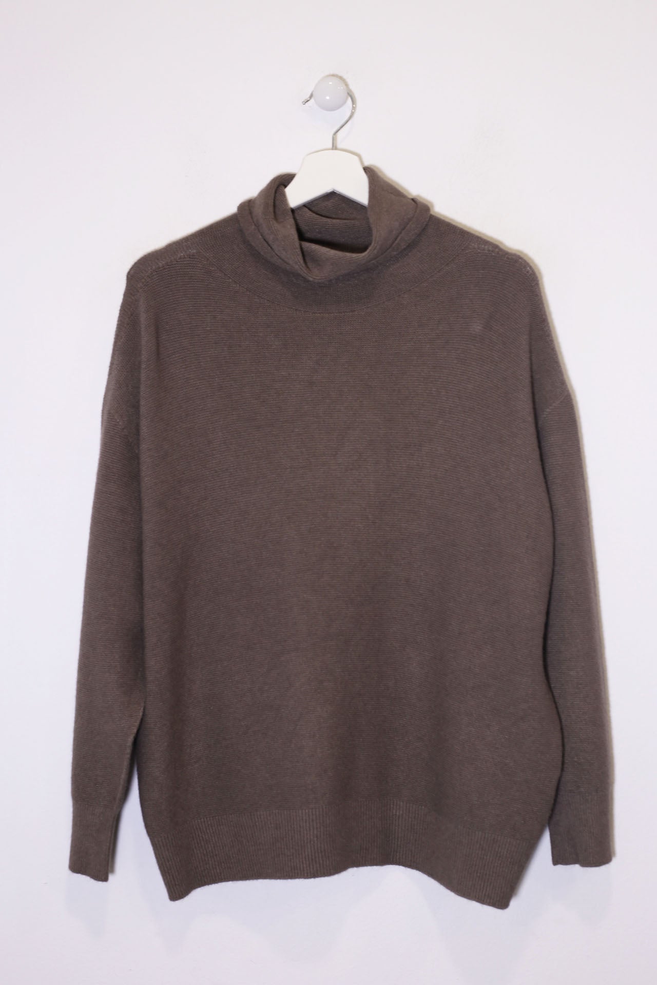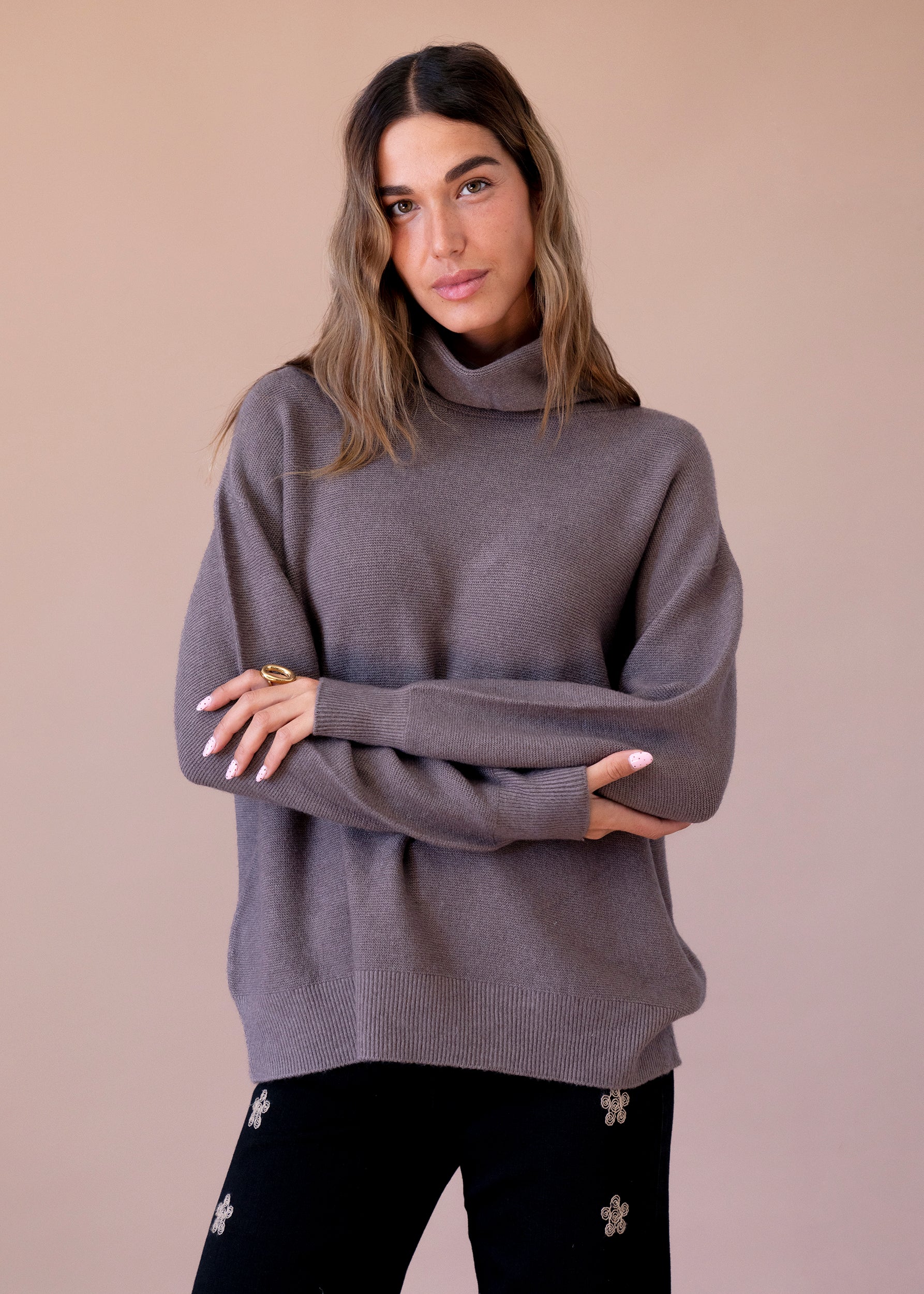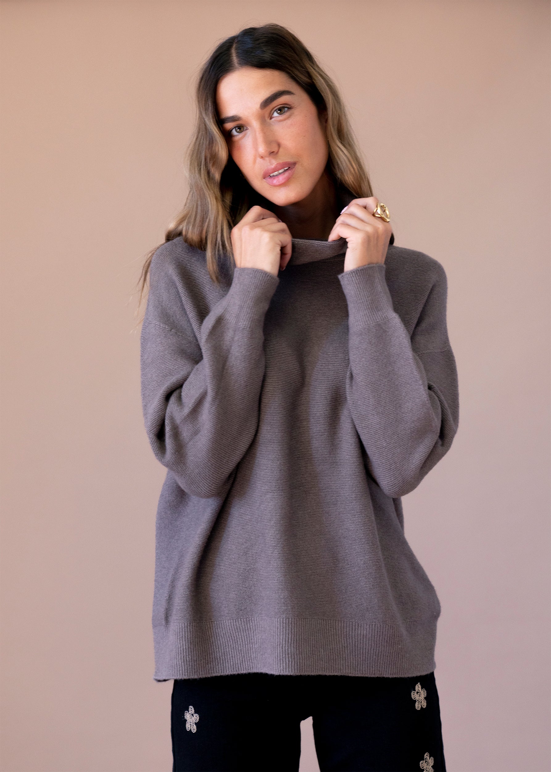 Jersey sin costuras con cuello alto y manga larga. Corte amplio. Acabados de puños y bajos en rib.