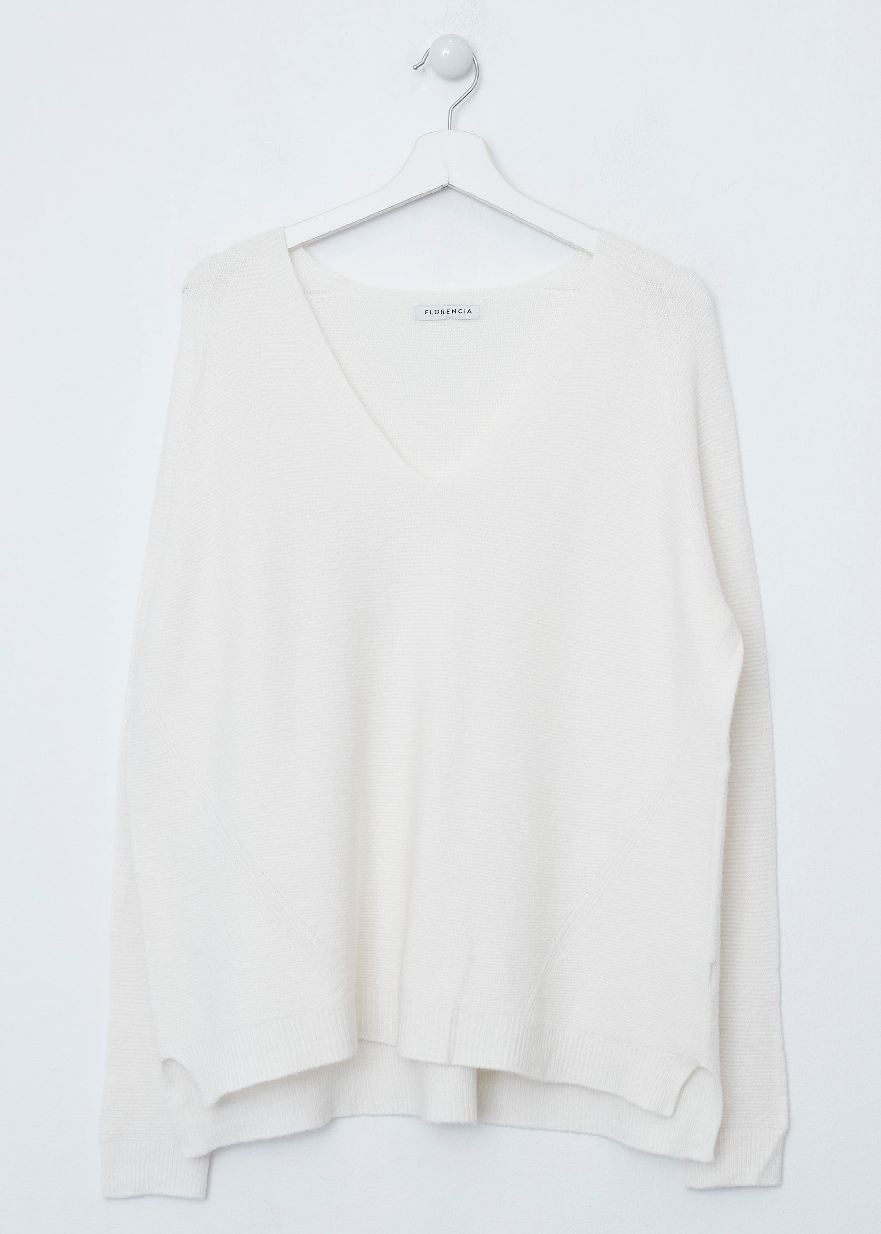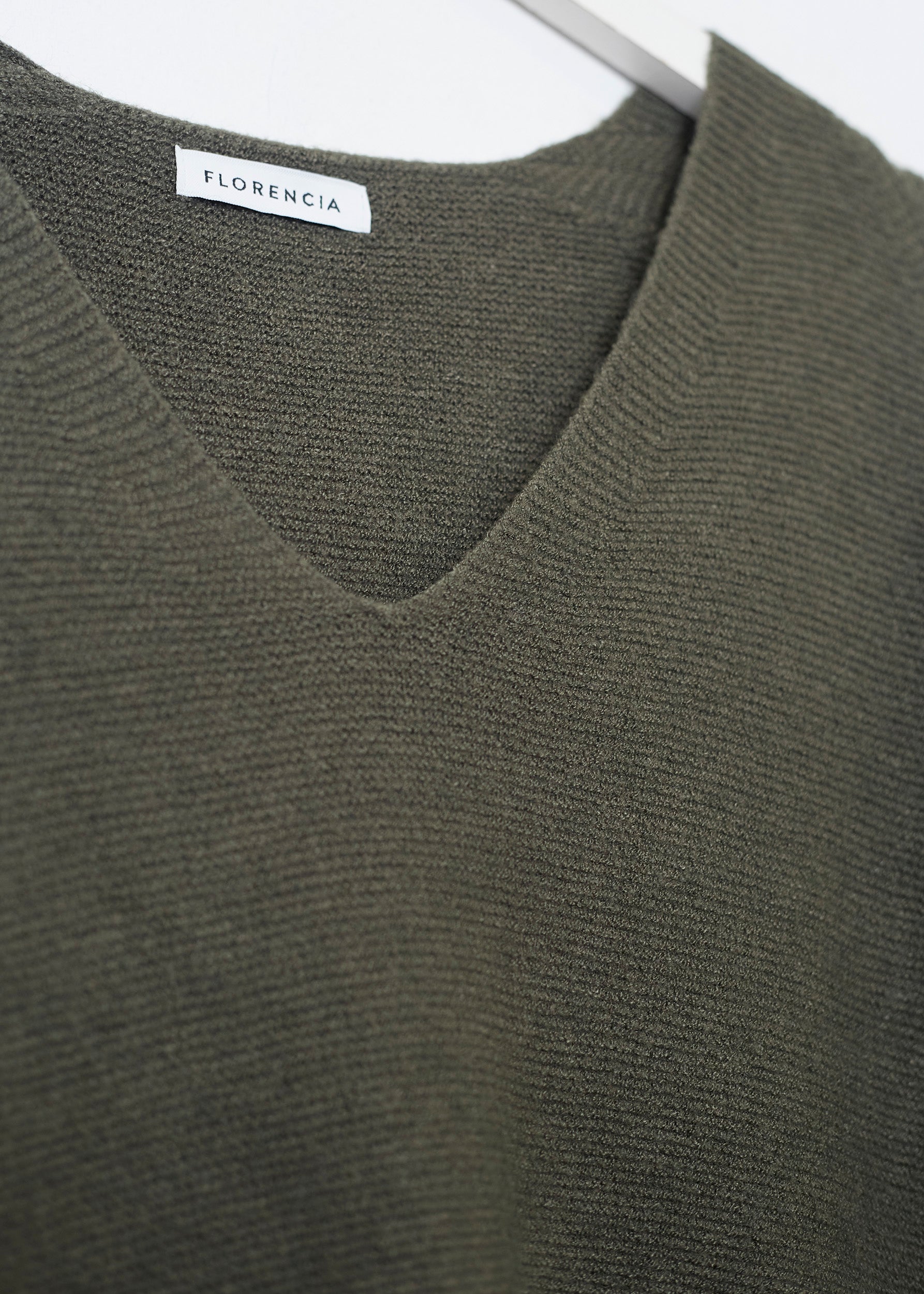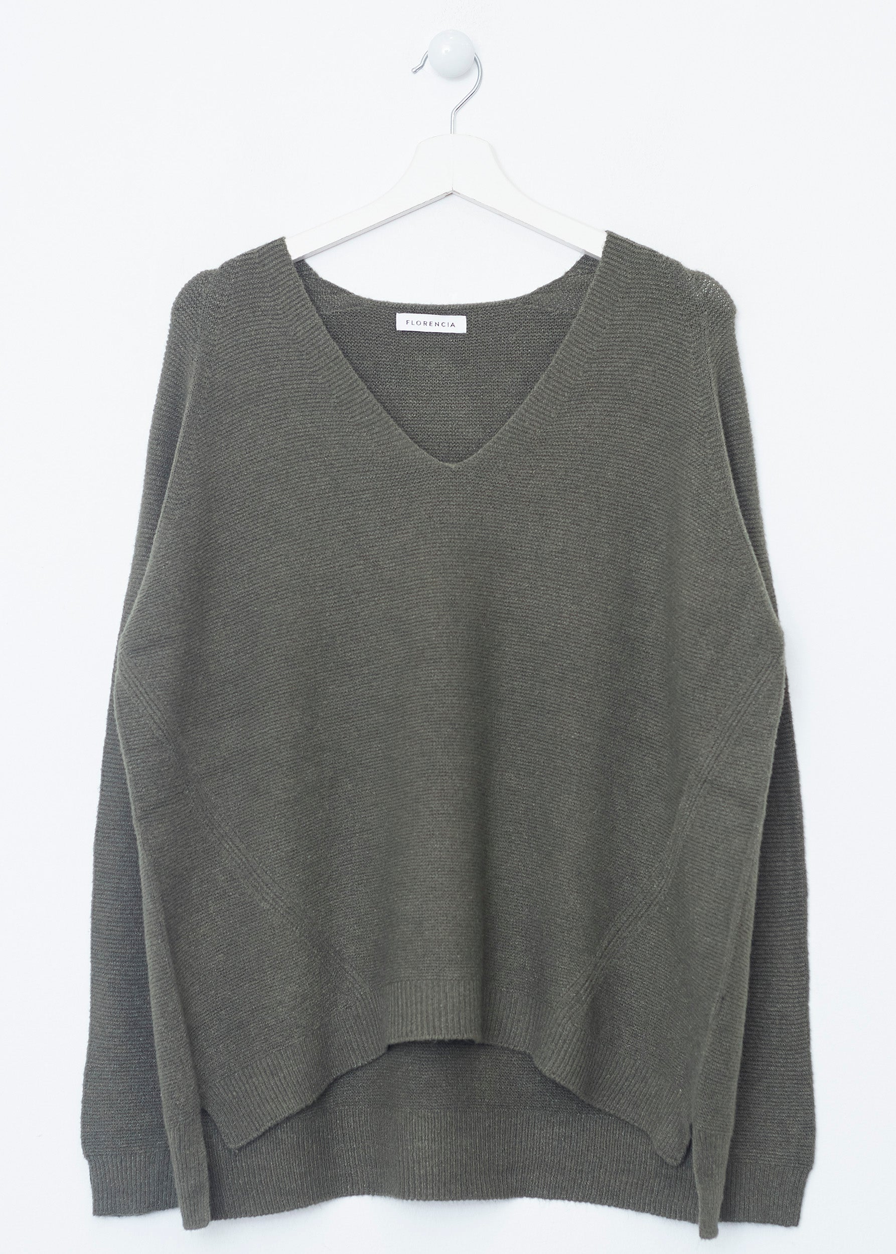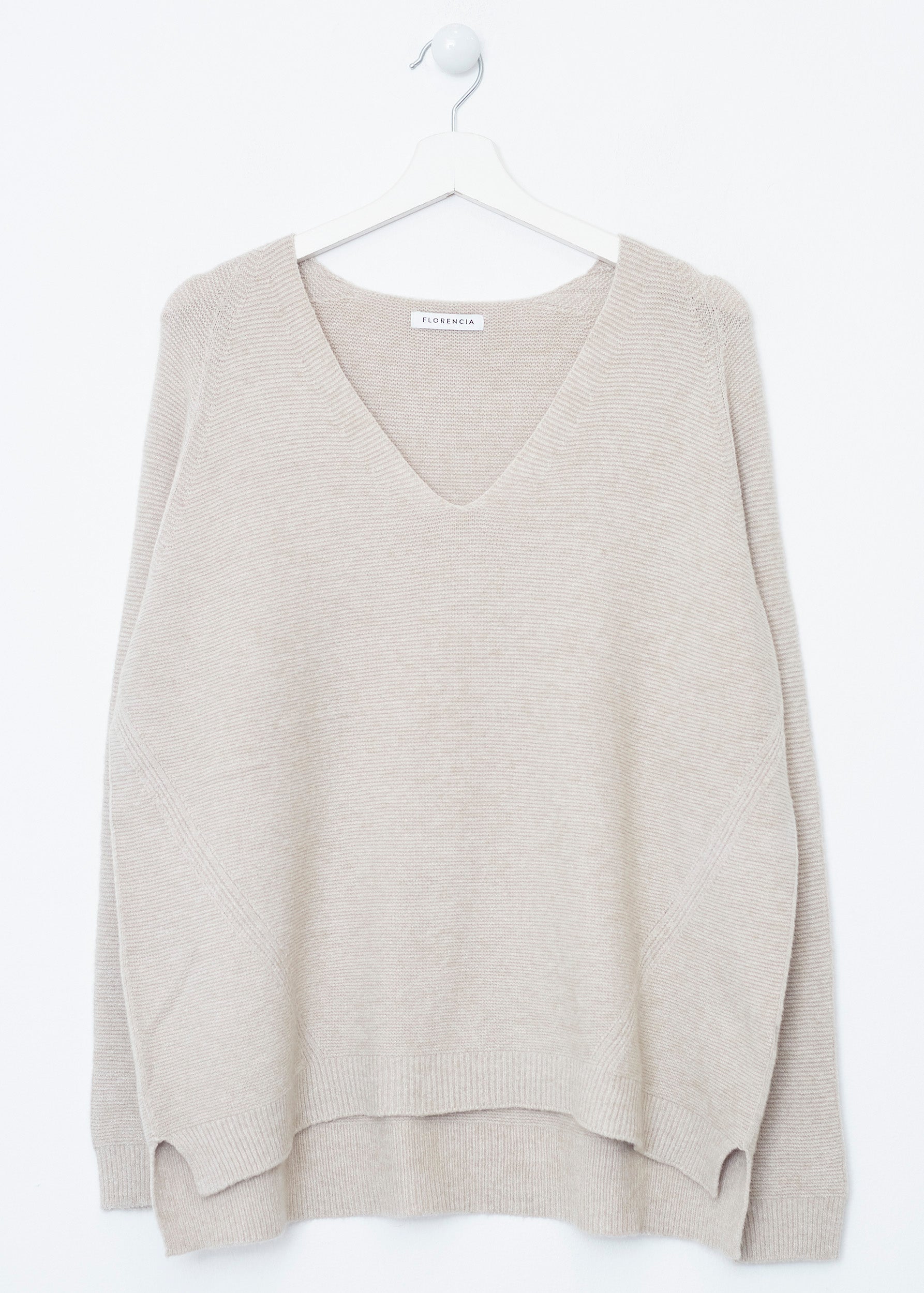 Jersey sin costuras y cuello punta. Acabados en rib. Detalle de aberturas laterales.