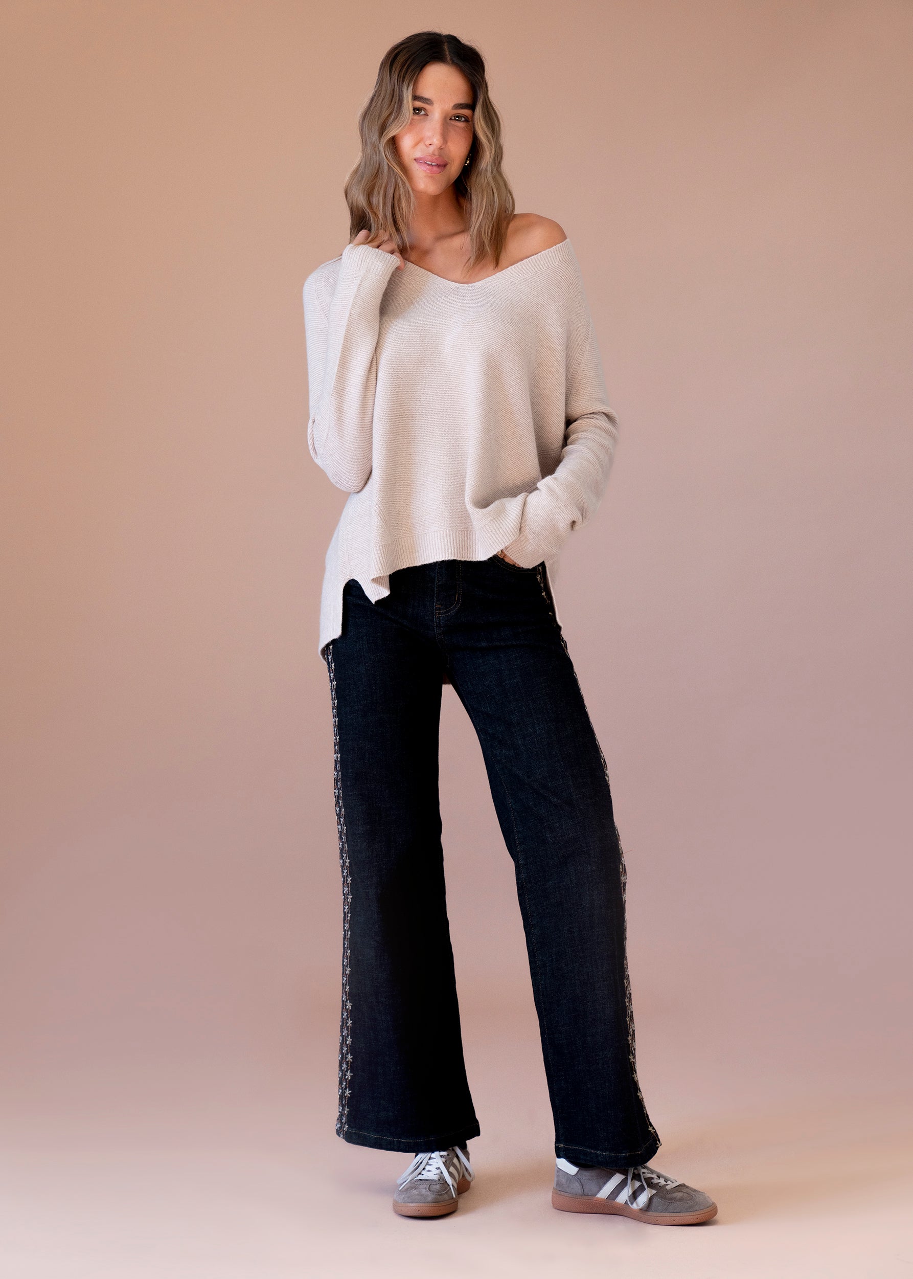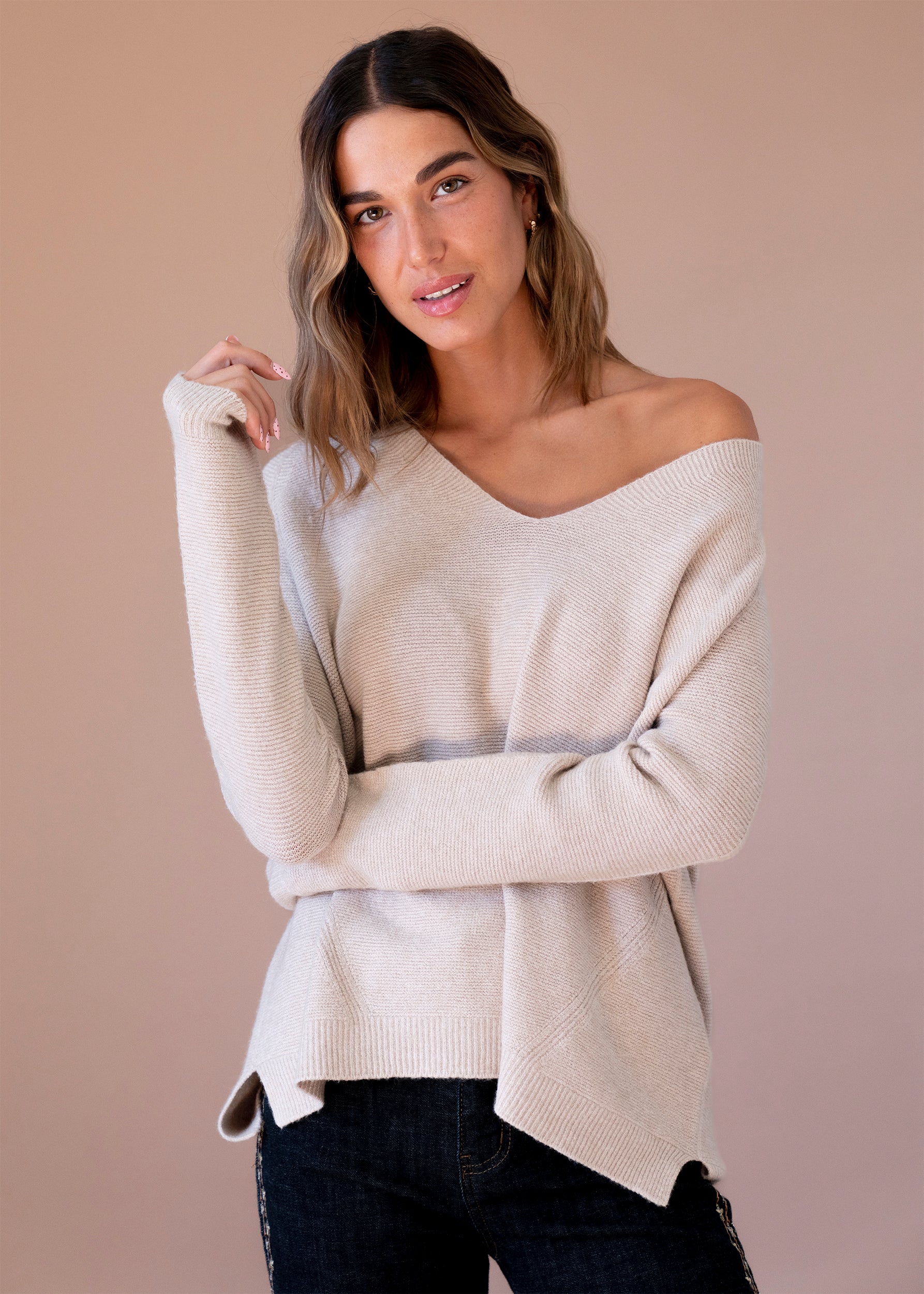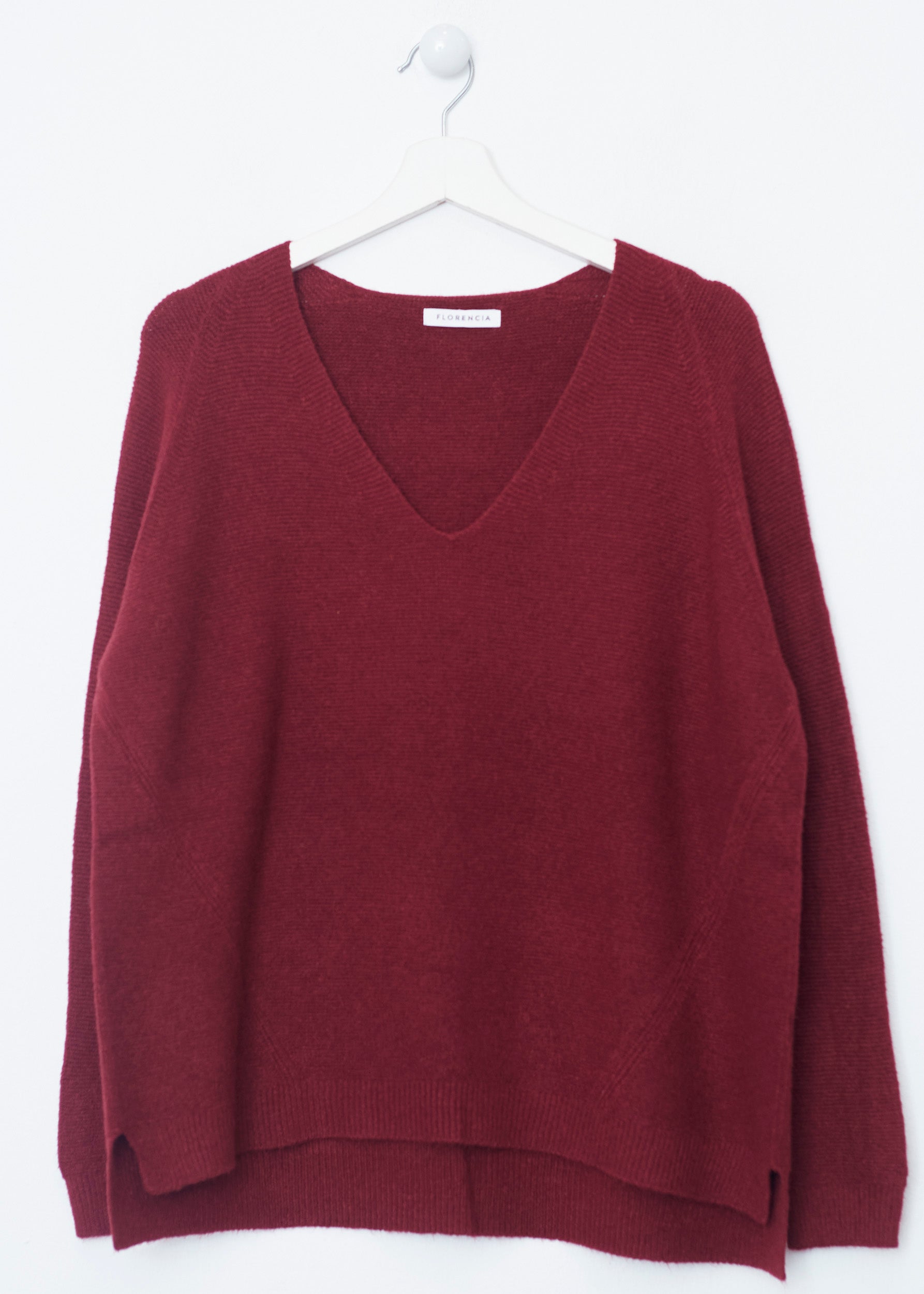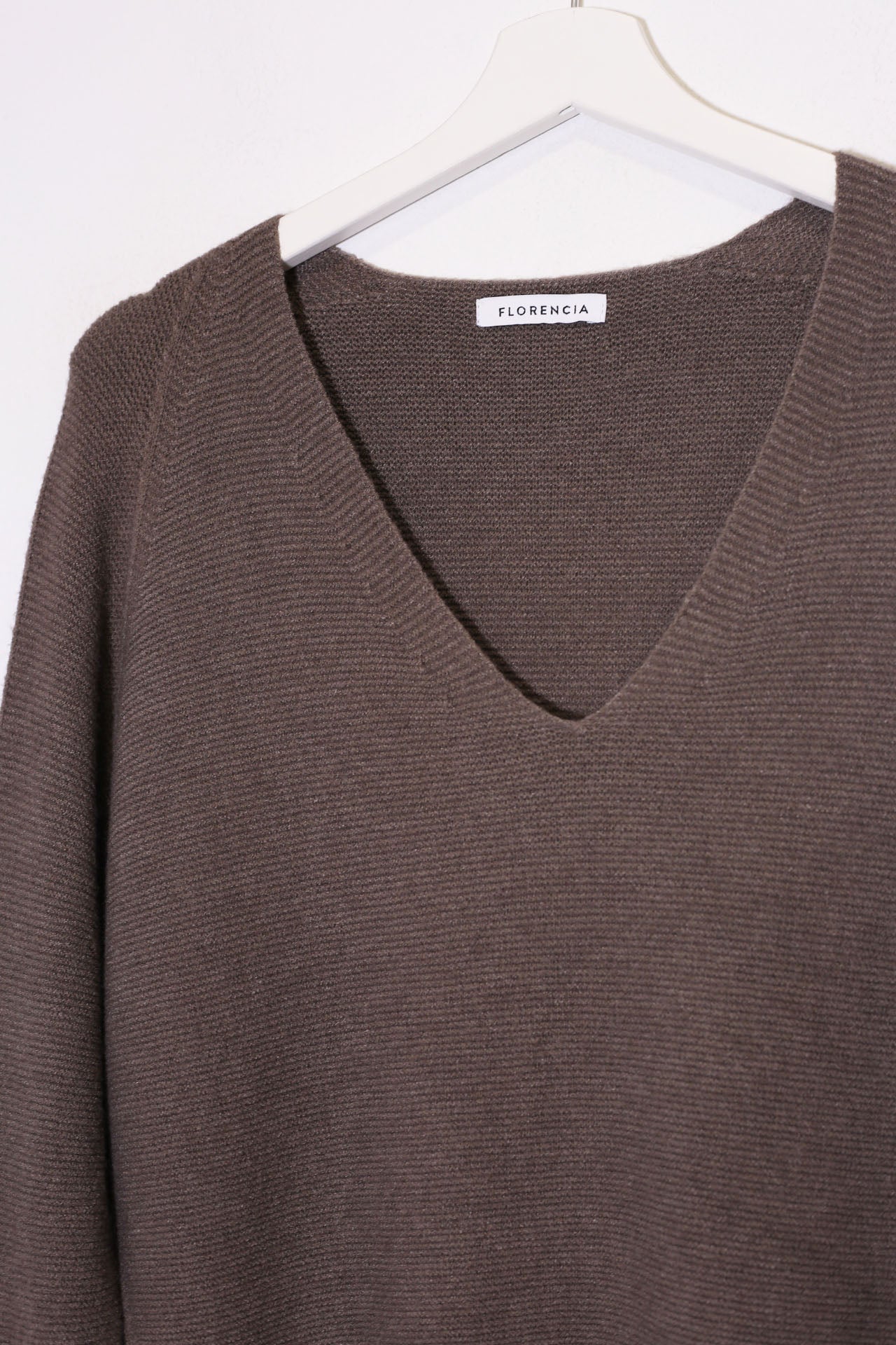 Jersey sin costuras y cuello punta. Acabados en rib. Detalle de aberturas laterales.