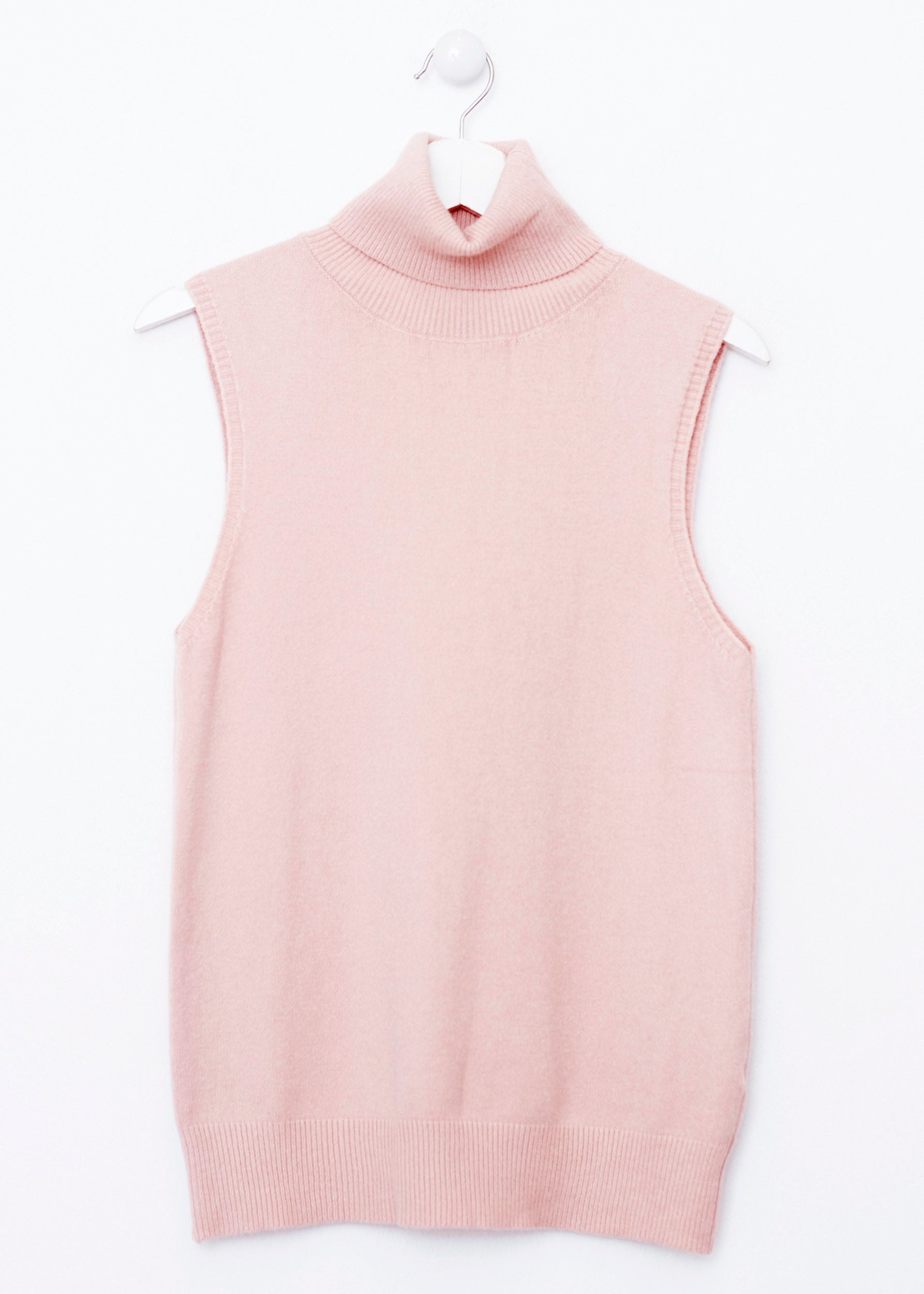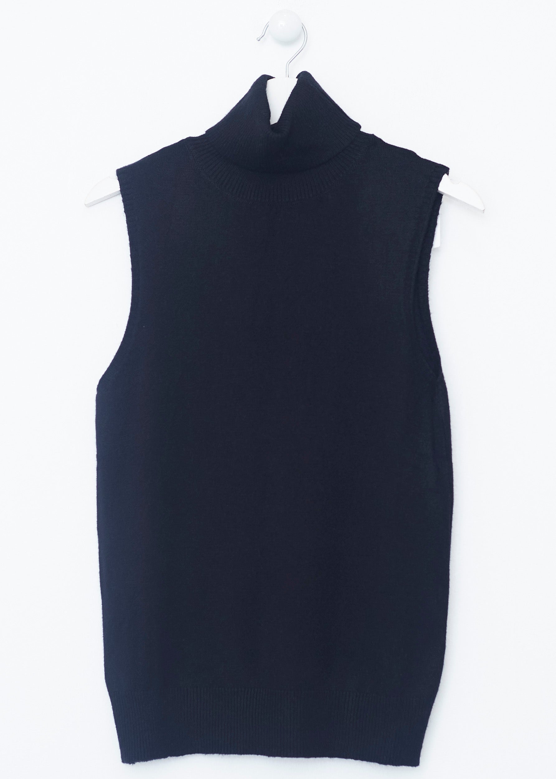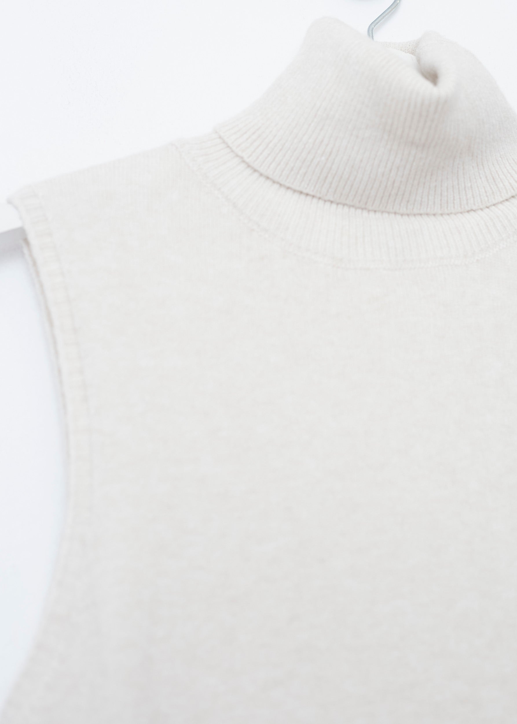 Jersey sin mangas con cuello alto. Acabados en rib.