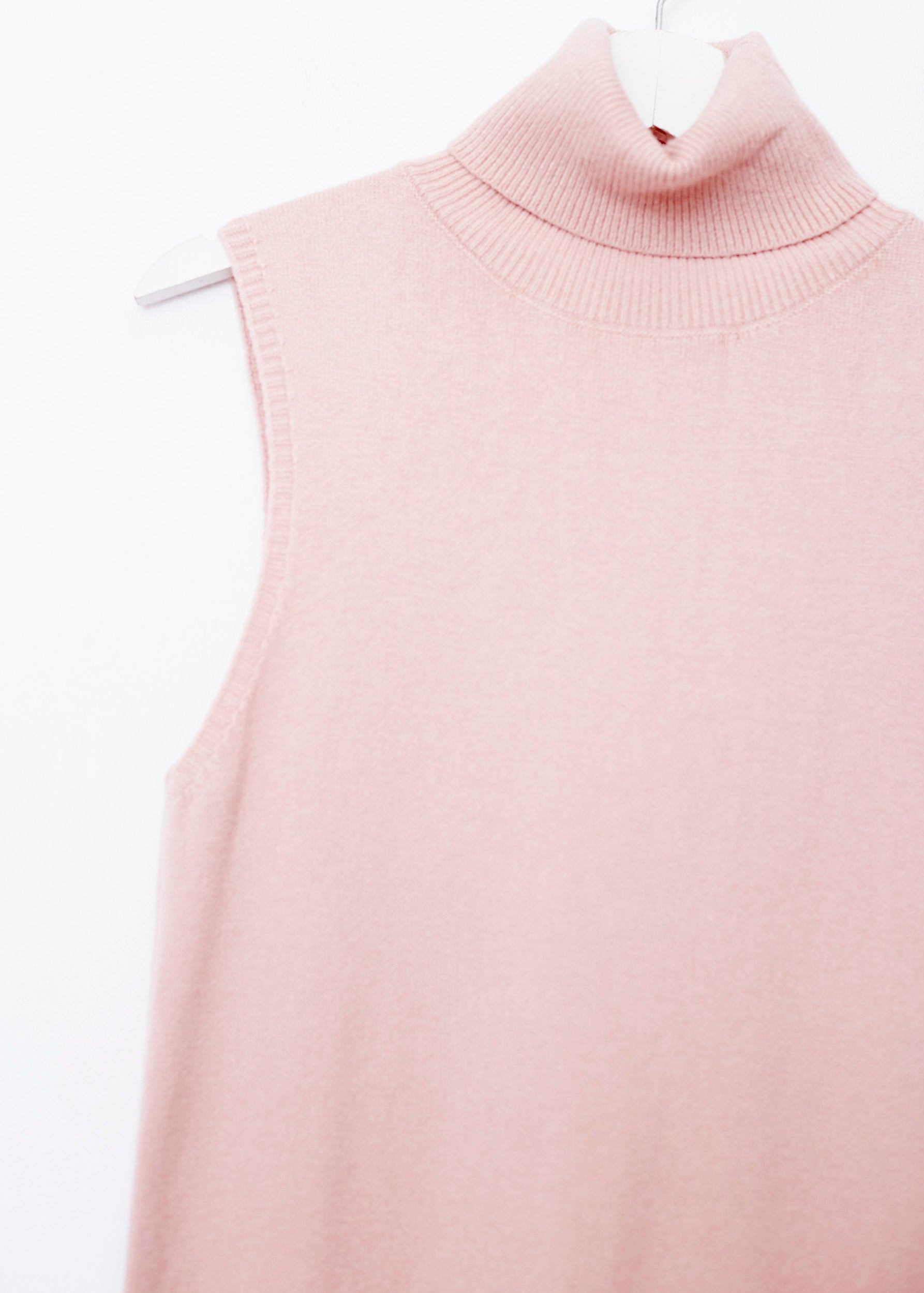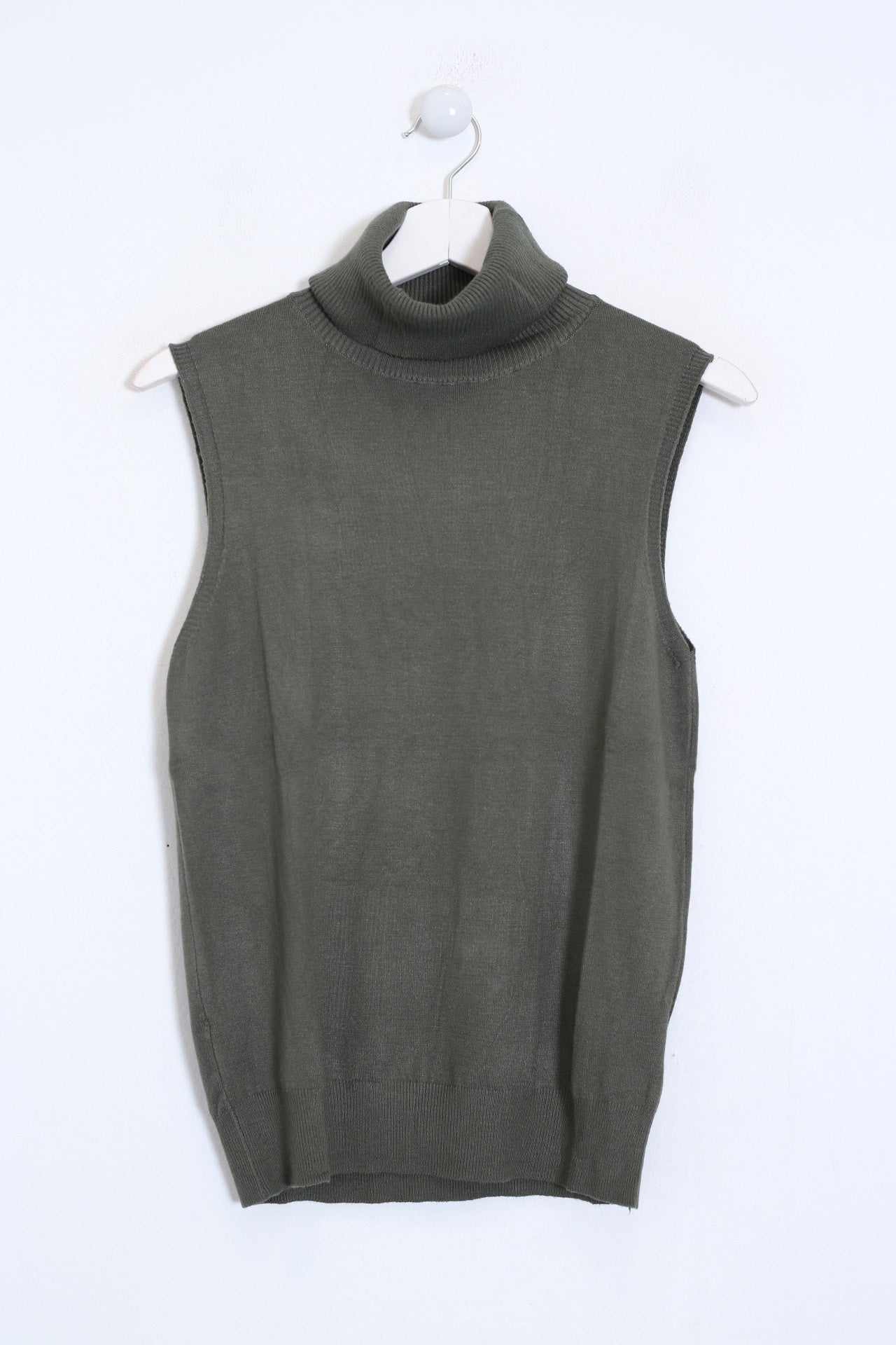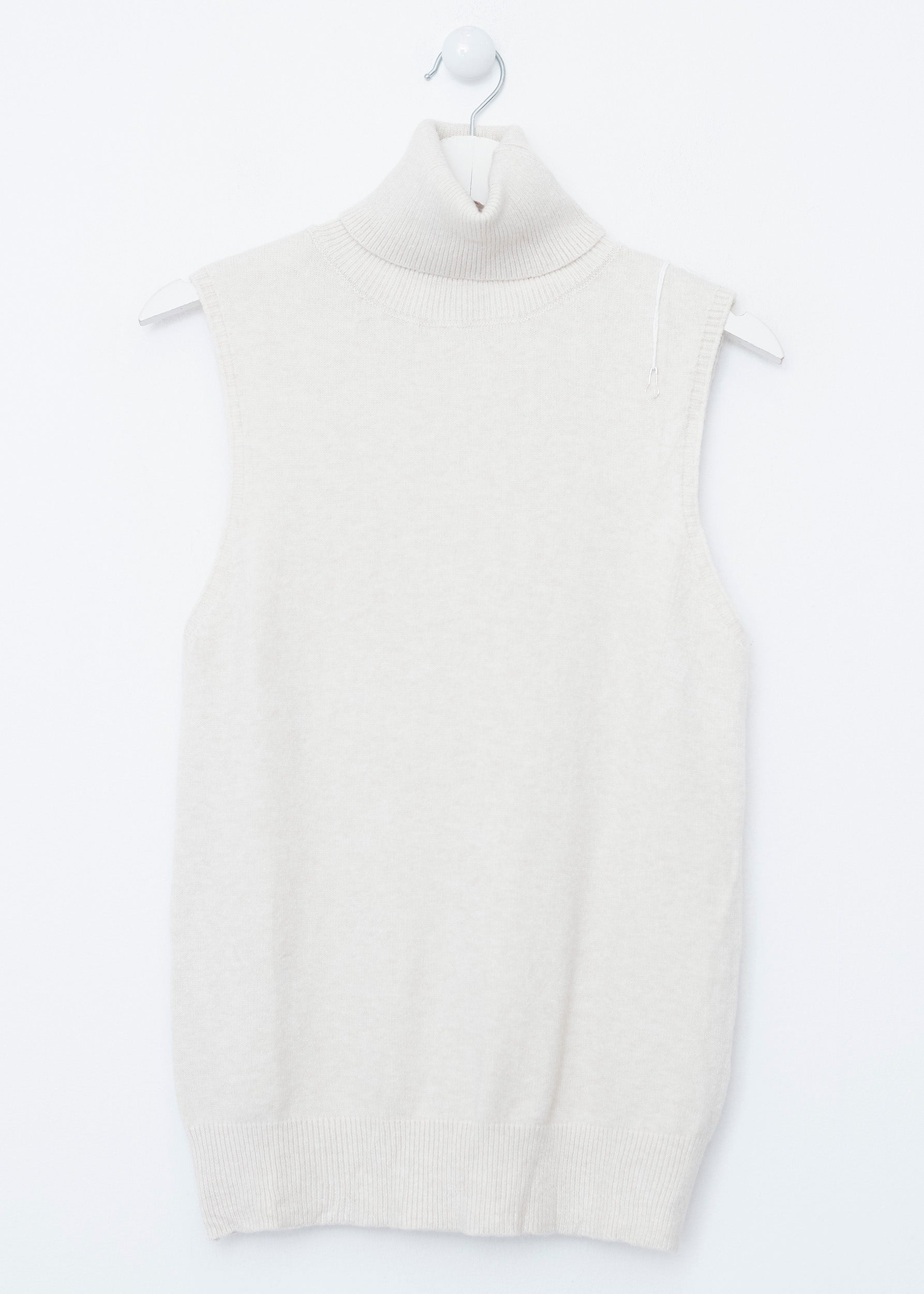 Jersey sin mangas con cuello alto. Acabados en rib.