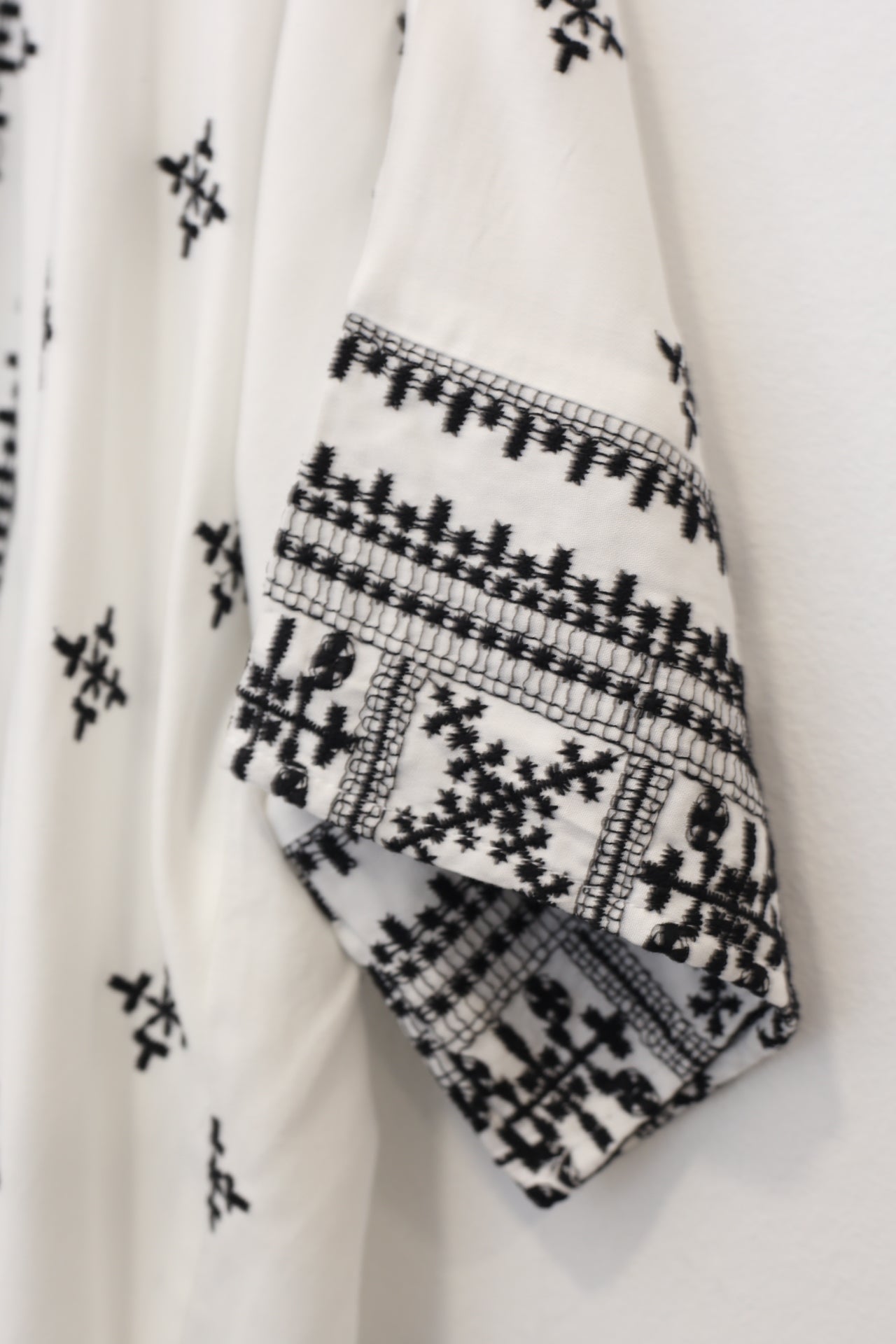 Kimono con escote recto y manga larga. Corte recto y amplio. Detalle de bordados.