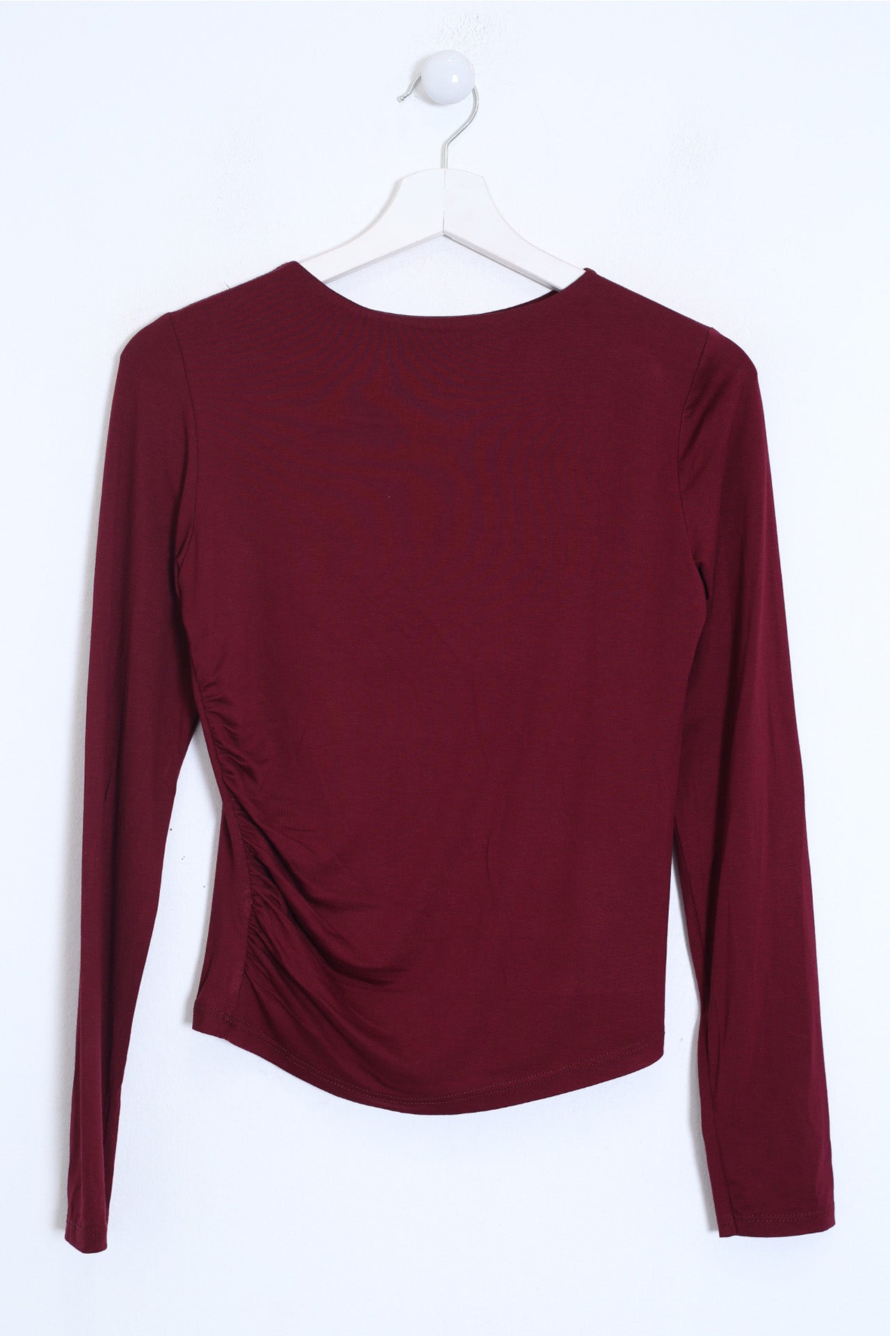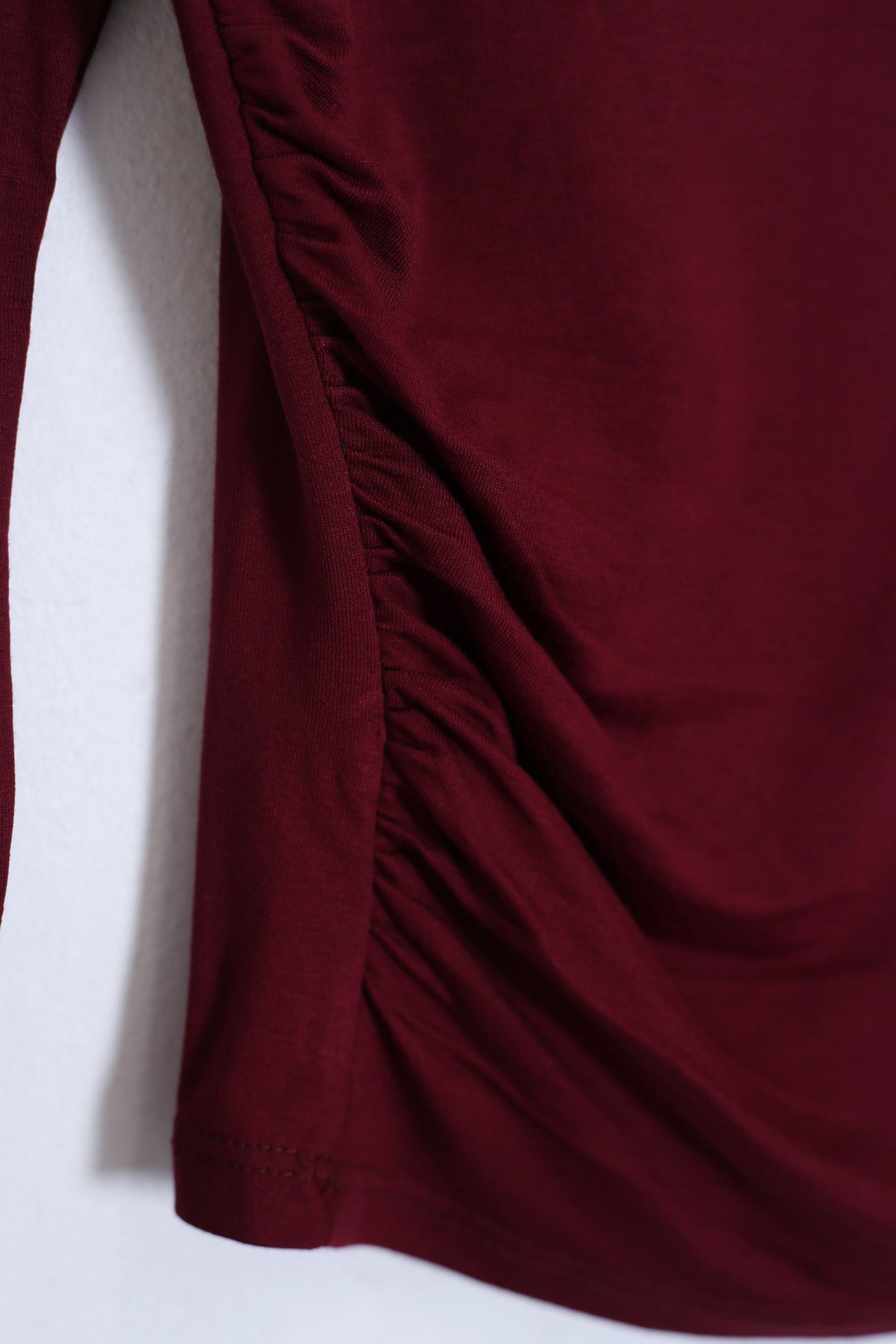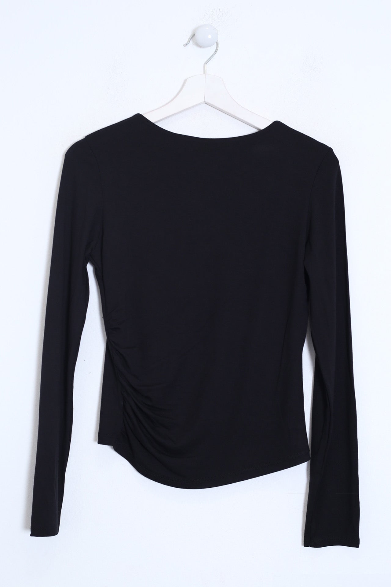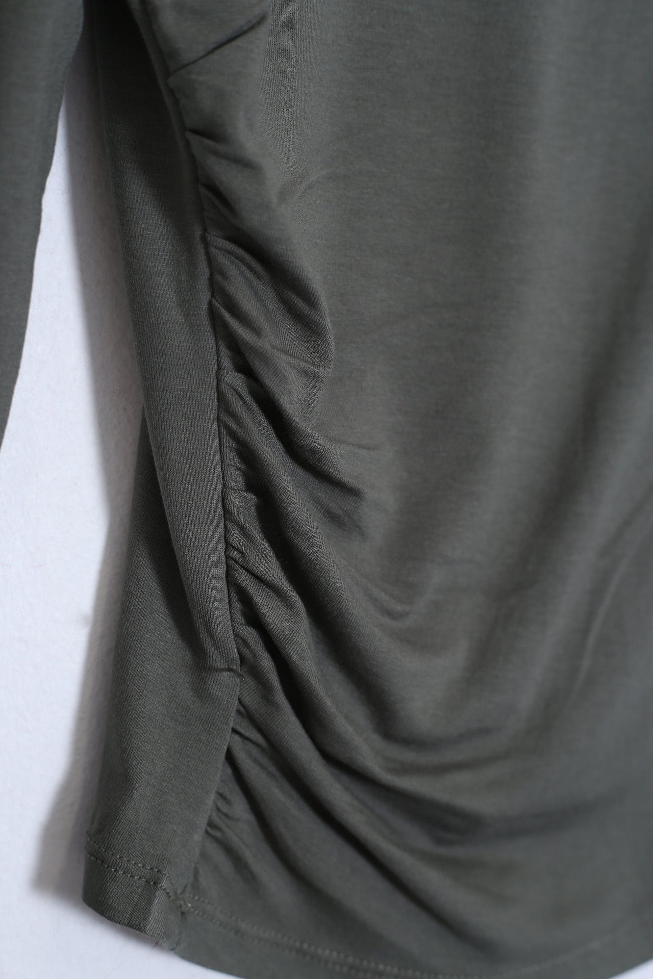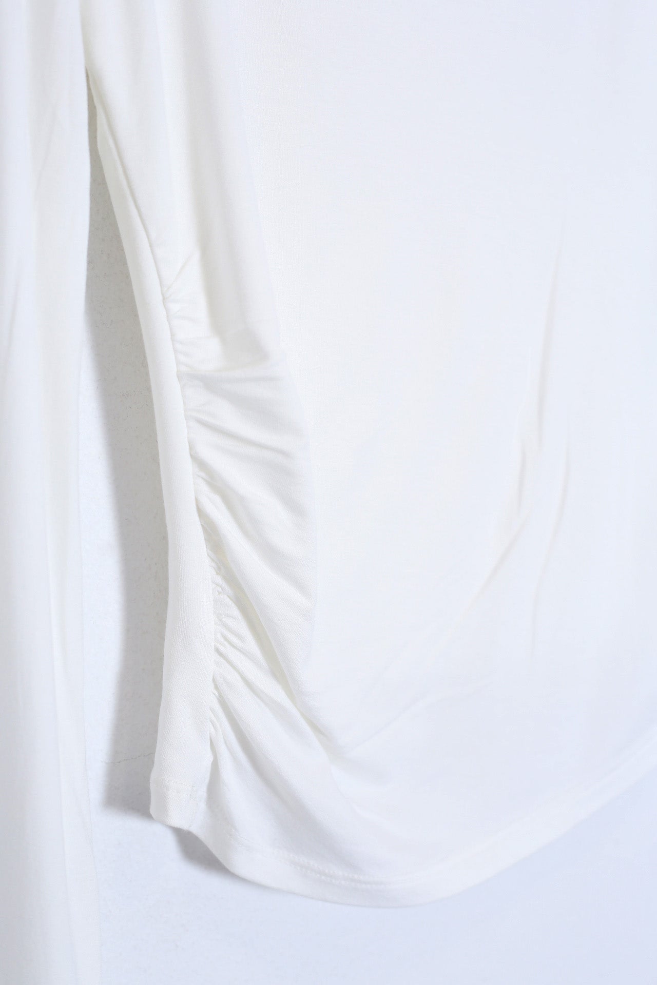 Camiseta de cuello redondo y manga larga. Detalle drapeado en lateral. Tejido elástico.