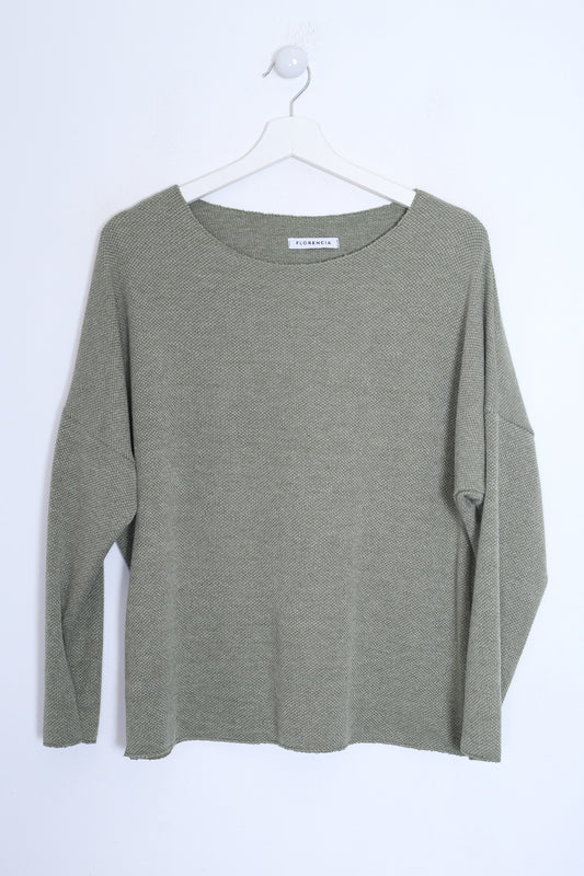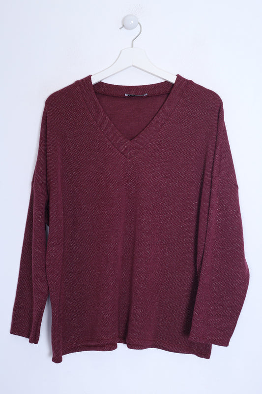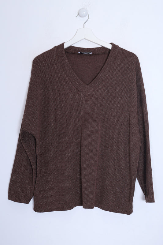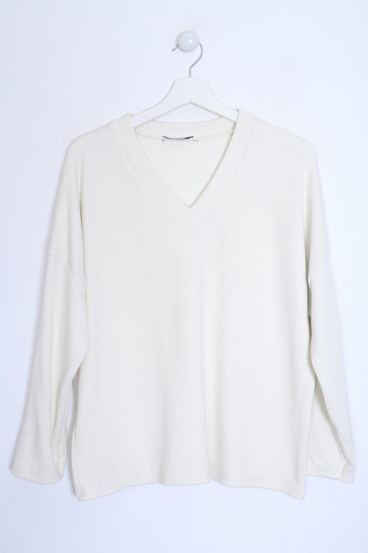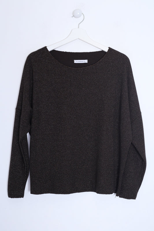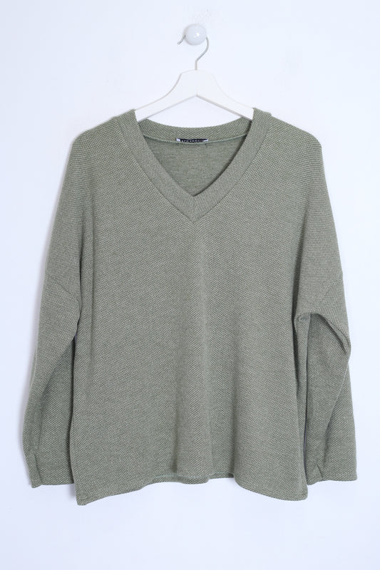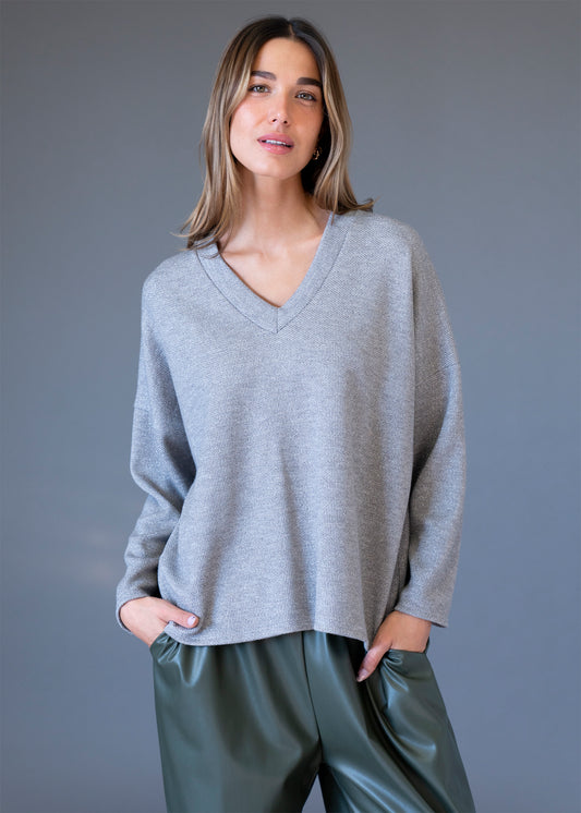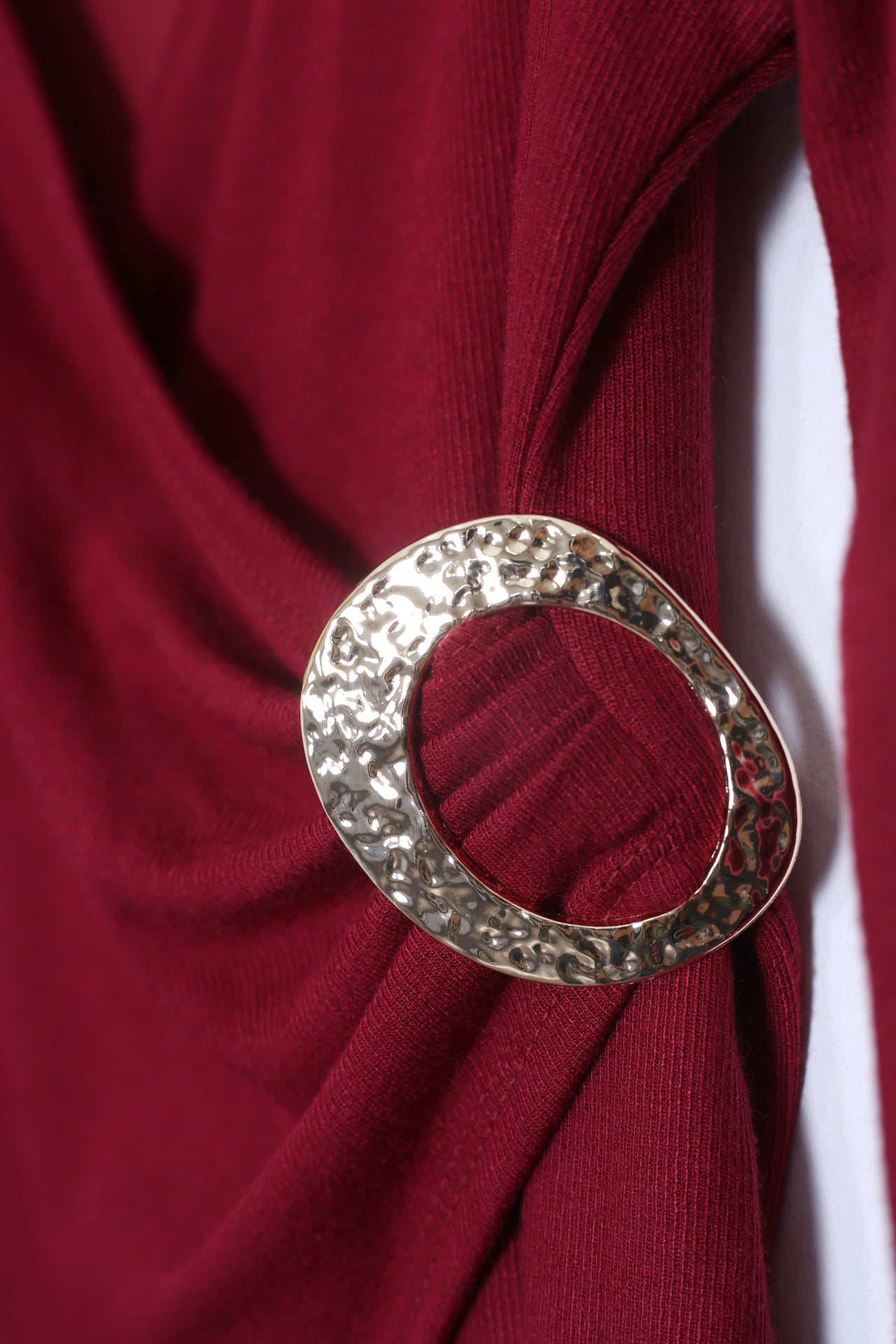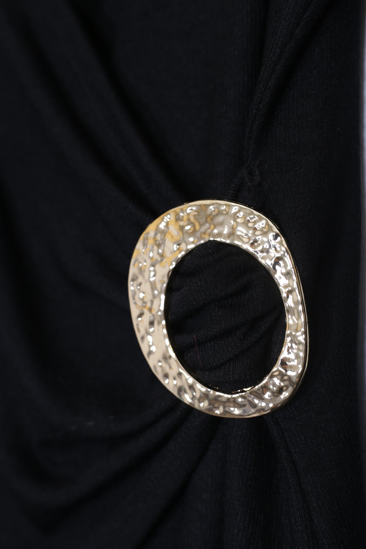 Camiseta con escote en punta cruzado y detalle de hebilla ovalada texturada. Manga larga. Bajo asimétrico acabado en punta en delantero.